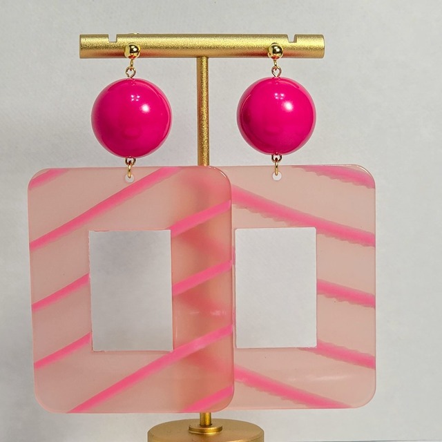 ⟬大ぶりのスクエアレトロフープ(ビビットピンク×ピンク)ピアス&イヤリング ⟭ 特大の6cmのピンクのラインが施されたスクエアフープが目を引く大ぶりデザインのピアス&イヤリング! 前回sold outになったピンクパープルの色違いVer.です! アクリル玉は20mmサイズの大玉ですが、 スクエアフープもアクリル素材なので見た目以上に軽く、 誰もが目を引く、個性的でアクセントになってくれるアクセサリーです! イヤリングで個性的なアクセサリーをお求めの方はピッタリ!  ̄ ̄ ̄ ̄ ̄ ̄ ̄ ̄ ̄ ̄ ̄ ̄ ̄ ̄ ̄ ̄ ̄ ̄ ̄ ̄ ̄ ̄ ▶ピアス/イヤリングに変更可能です! (各購入オプションよりご選択下さい) 【ピアス】金具変更 【イヤリング】金具変更  ̄ ̄ ̄ ̄ ̄ ̄ ̄ ̄ ̄ ̄ ̄ ̄ ̄ ̄ ̄ ̄ ̄ ̄ ̄ ̄ ̄ ̄ ▶金属アレルギーの方でも安心してご使用いただけるように、樹脂・チタン・サージカルステンレス・サージカルステンレス(24Kメッキ)・ニッケルフリーのピアス/イヤリング金具をご用意しています! ▶イヤリング金具には 無料でシリコンカバーをお付けいたします。  ̄ ̄ ̄ ̄ ̄ ̄ ̄ ̄ ̄ ̄ ̄ ̄ ̄ ̄ ̄ ̄ ̄ ̄ ̄ ̄ ̄ ̄ ◯サイズ:8㎝ ◯素材:真鍮/アクリル/レジン ご不明点がありましたらお気軽にお問い合わせください! ■配送方法 ・発送はクリックポストとなります。 ・追跡がついておりますので安心です。 ・ご自宅のポストに届きます。 ・土日も配送可能です。 ・概ね発送日の翌日から翌々日にお届けします。 ※ご注文数が増えております関係で、制作・発送まで1週間ほどお時間をいただいております。 急ぎの方は、備考欄または購入後のメッセージにてお伝えください。 ■4500円以上で送料無料!⸜★⸝ ■5500円以上でノベルティプレゼント!☆ ぜひ、お迎えください♡ ☞レトロかわいい×レトロポップなアクセサリー ♡┈┈┈┈┈┈┈┈┈┈┈┈┈┈┈┈┈┈┈┈┈┈♡ ■その他の作品はこちらからご覧いただけます ☞https://yotata.base.shop/ ■新作情報はInstagram/Threadsにて発信しています ☞https://www.instagram.com/yotata._.63 ♡┈┈┈┈┈┈┈┈┈┈┈┈┈┈┈┈┈┈┈┈┈┈♡