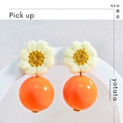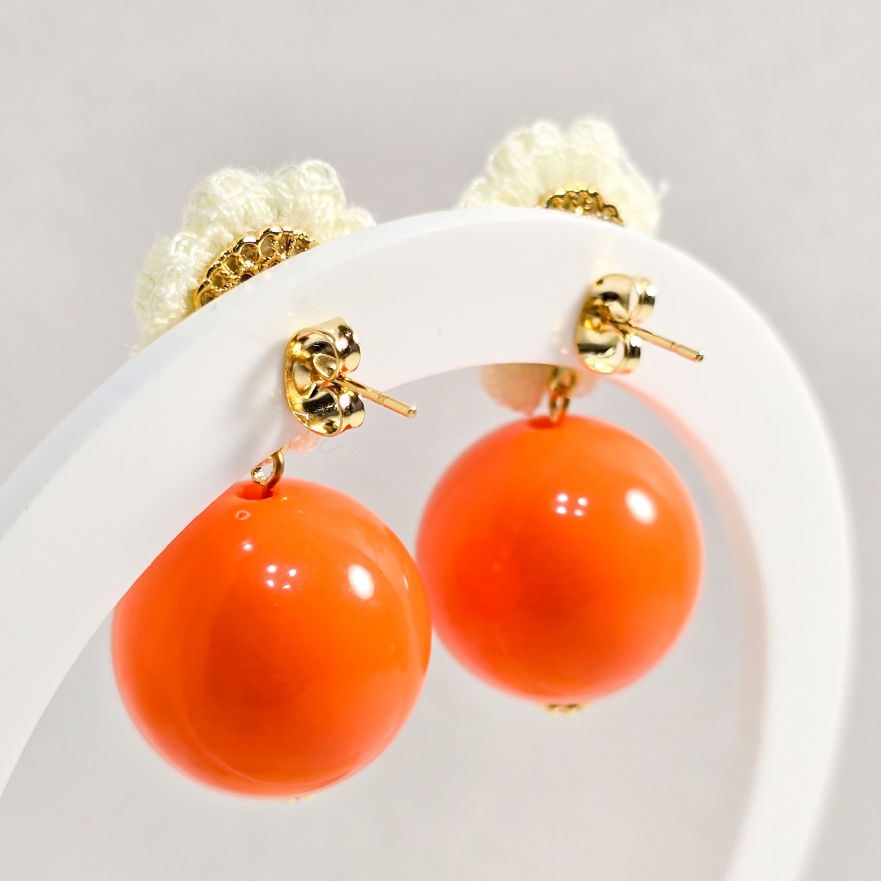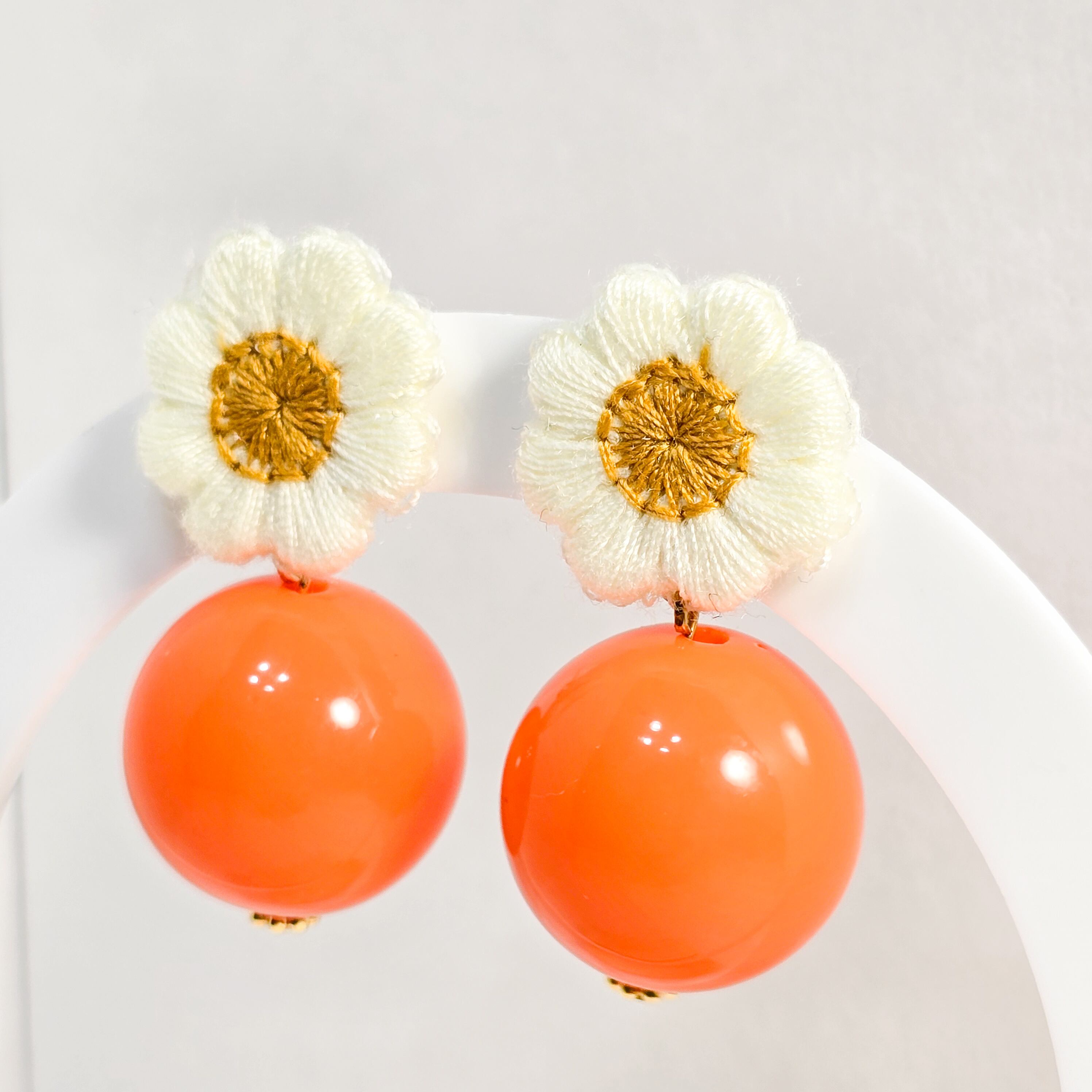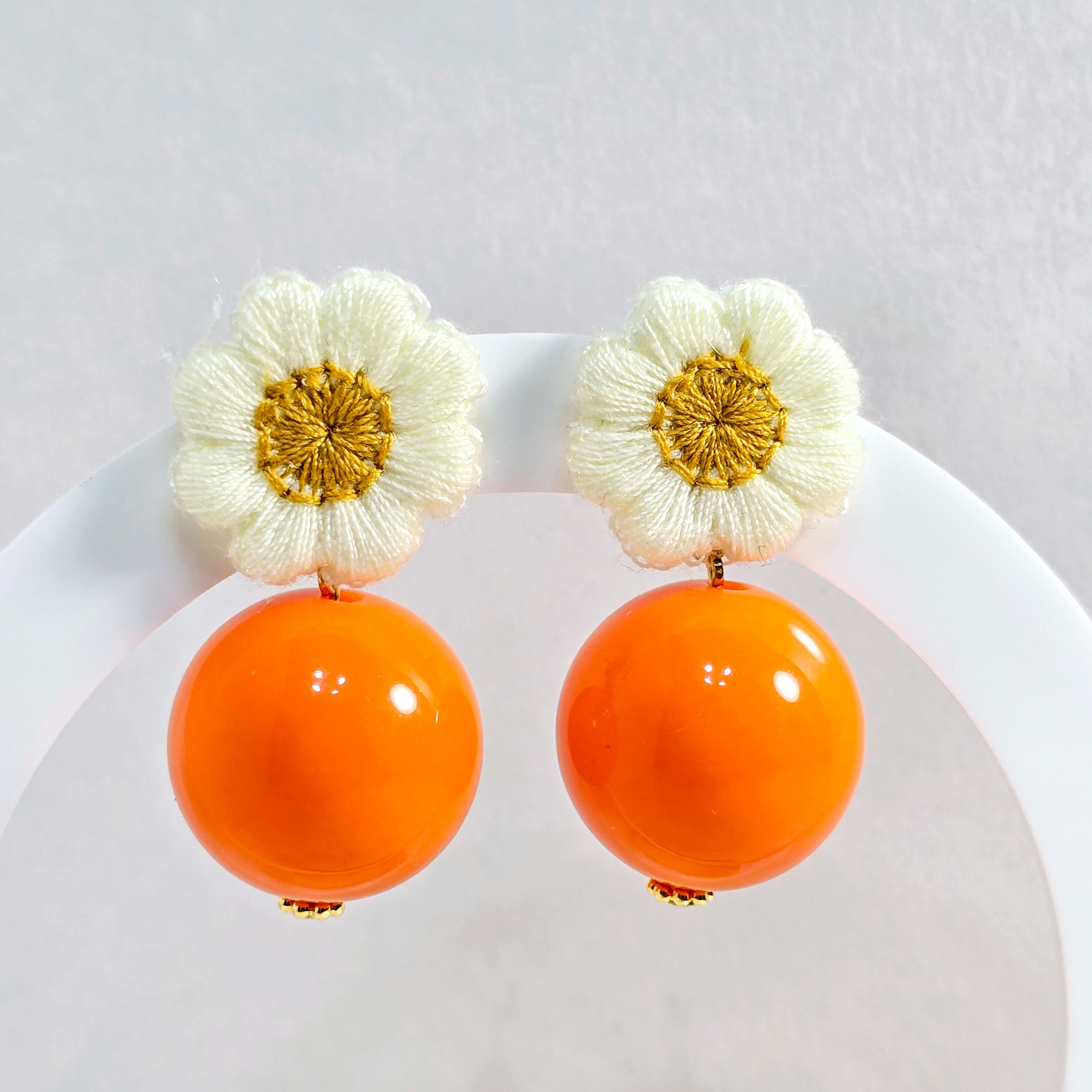 ⟬ 白いお花とオレンジの大ぶりピアス&イヤリング ⟭