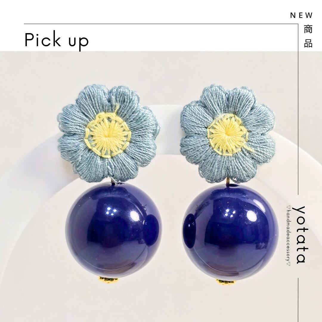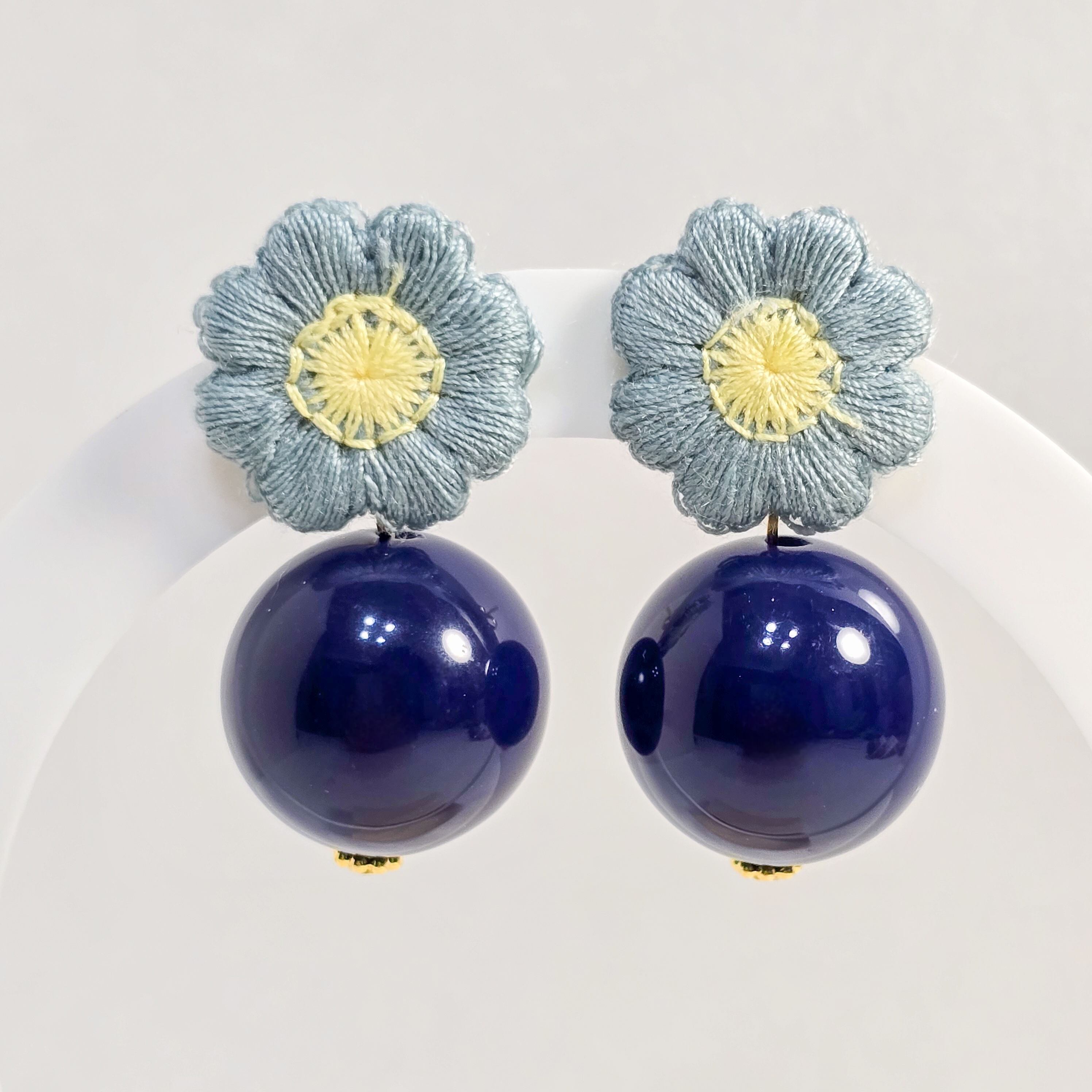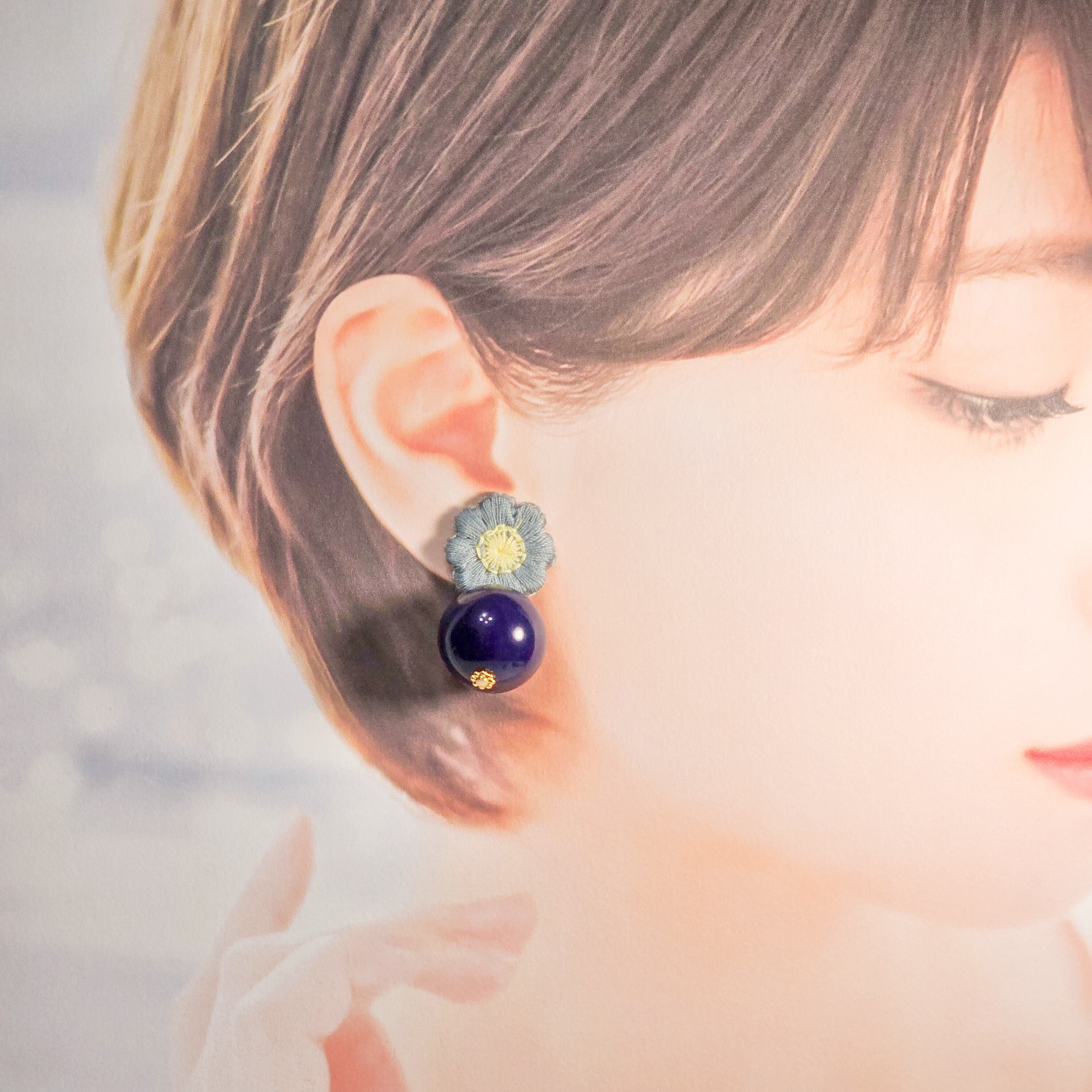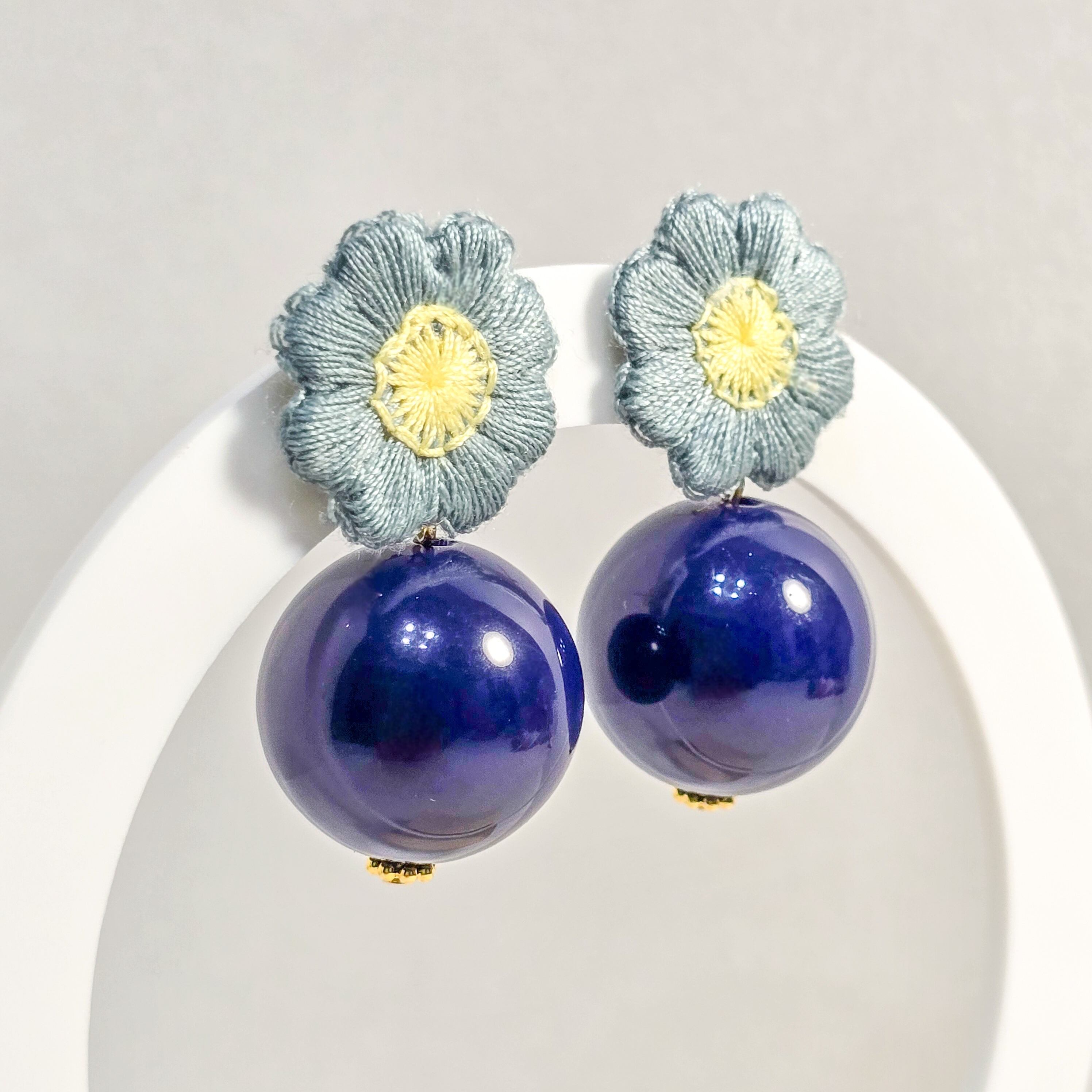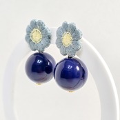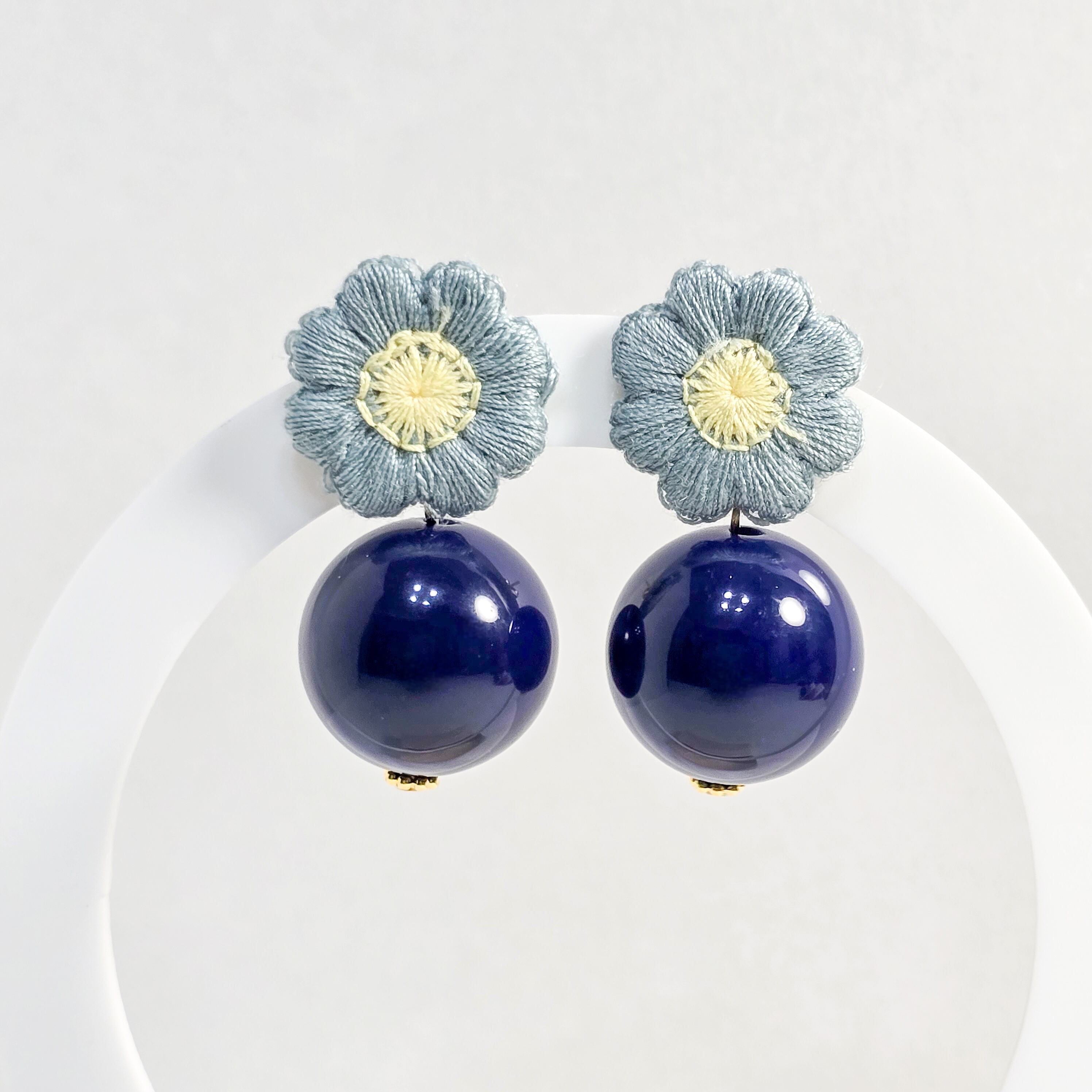 ⟬ 青いお花とネイビーの大ぶりピアス&イヤリング ⟭
