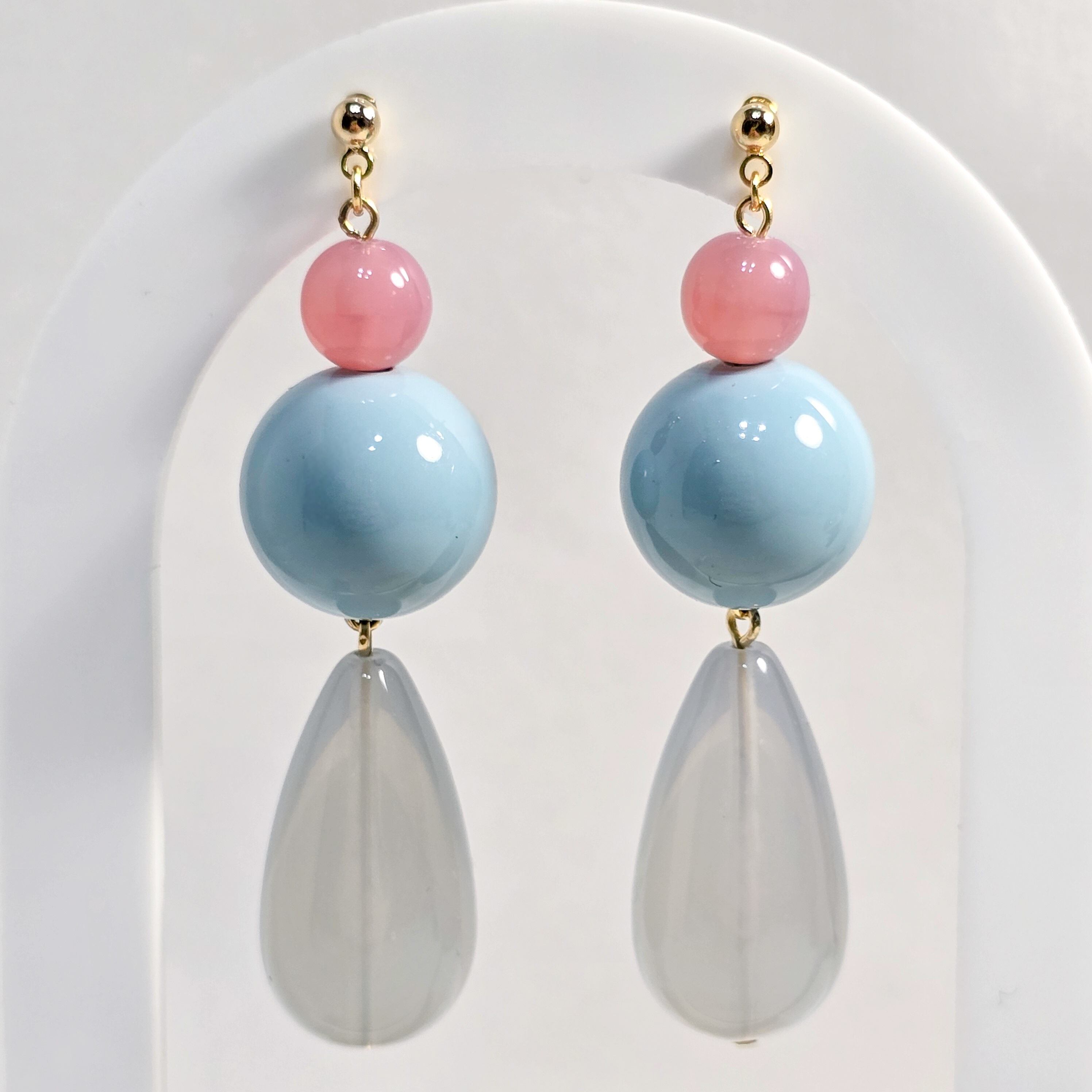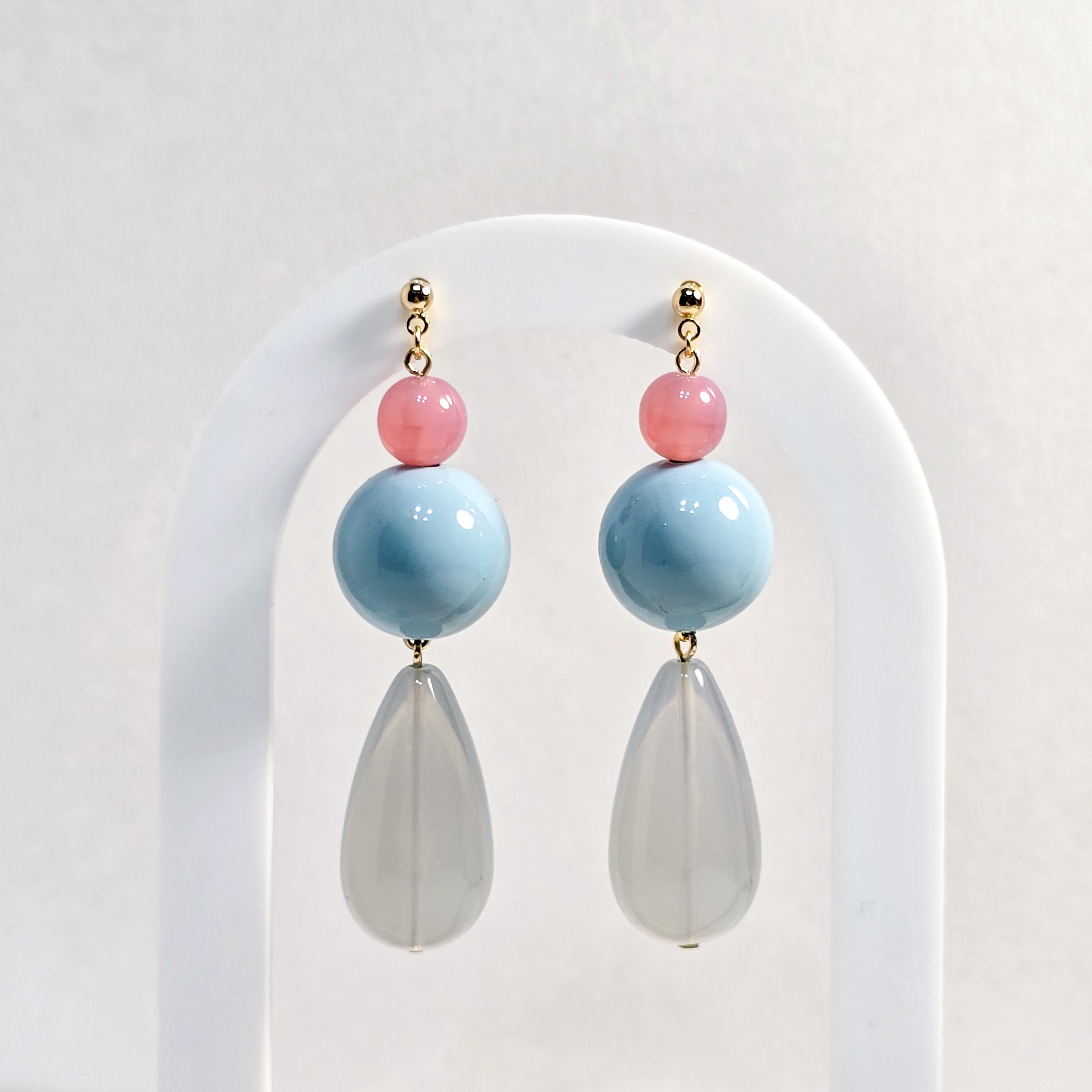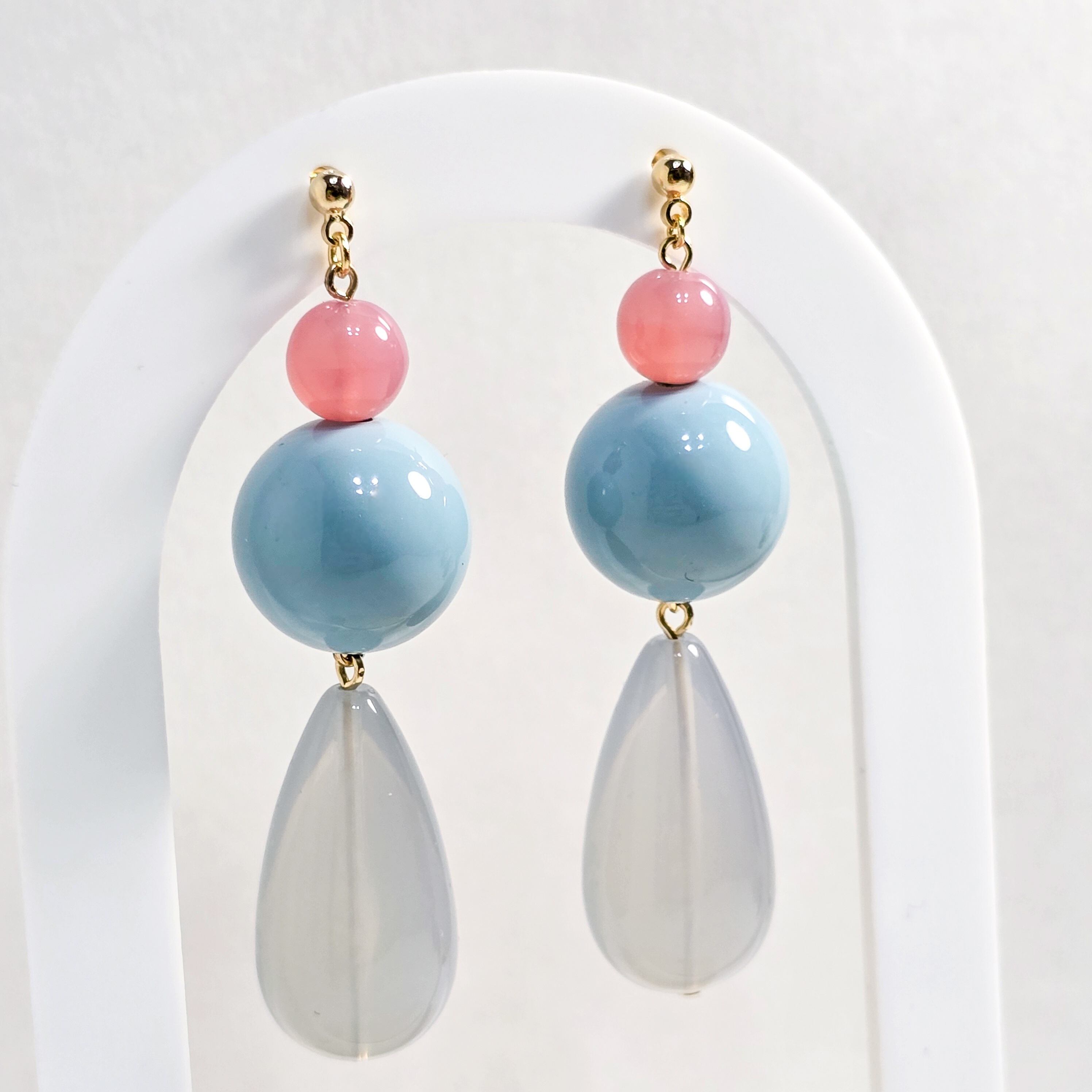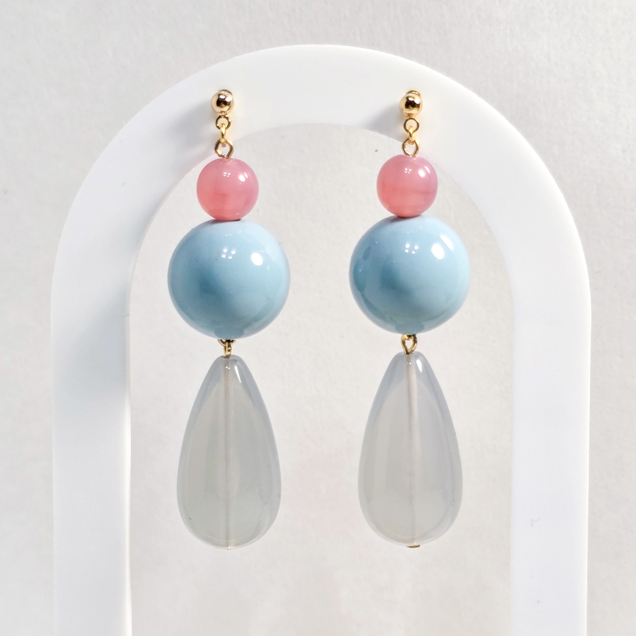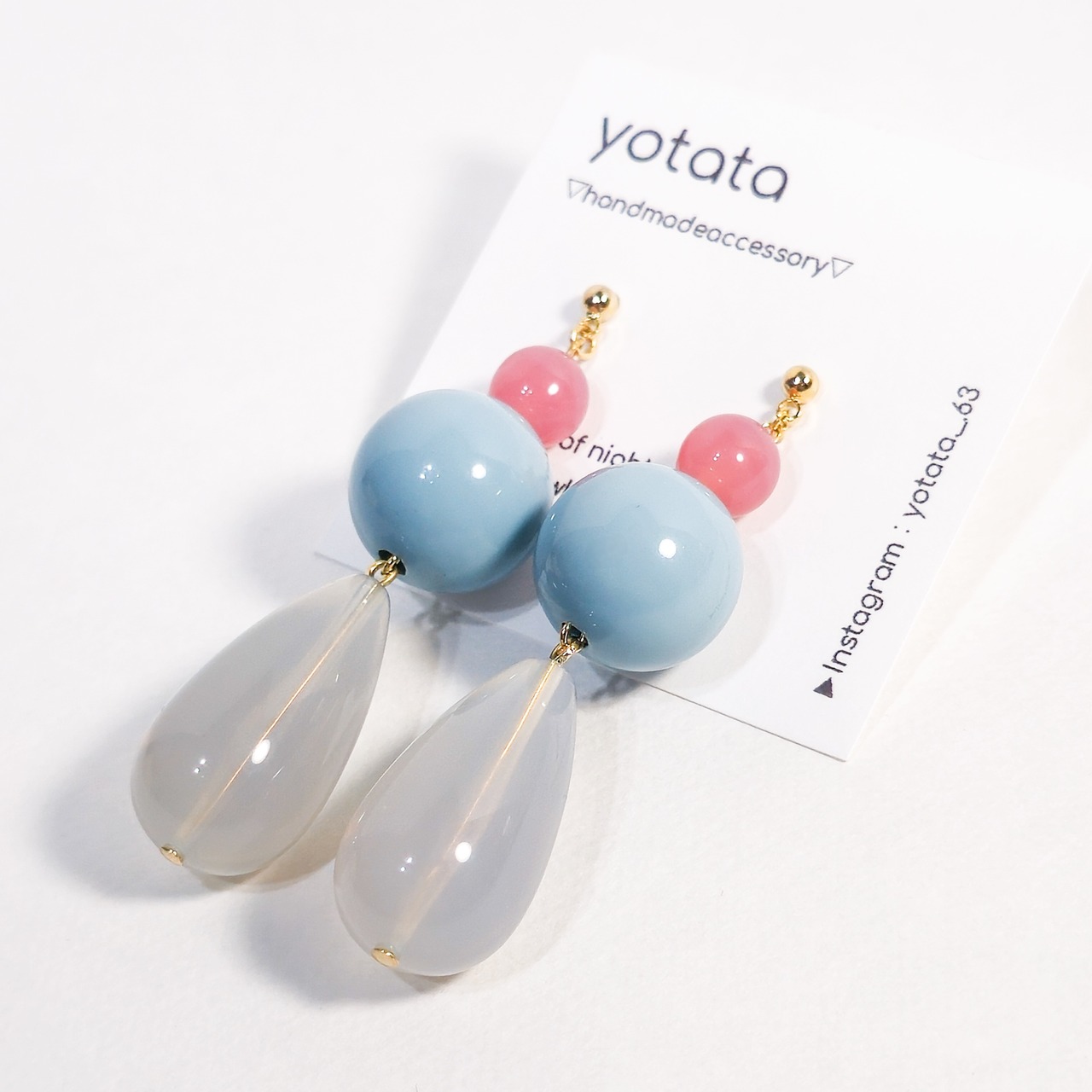 柔らかなピンクとパステルブルーの組み合わせが、耳元を優しく彩るドロップピアス&イヤリングです❁︎