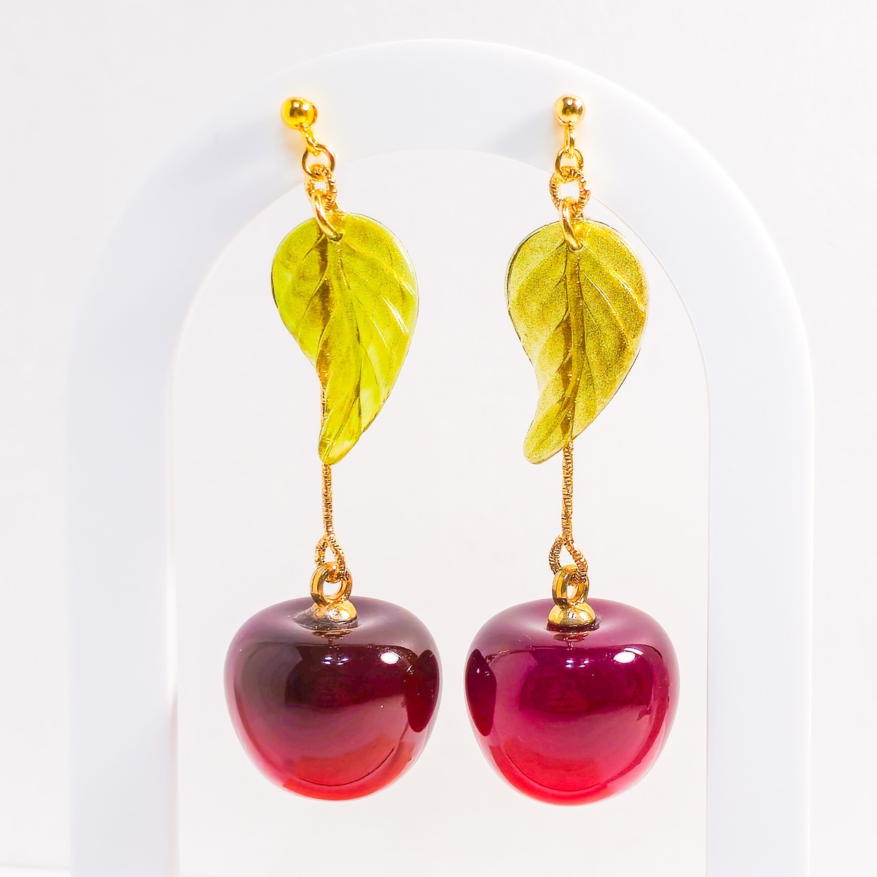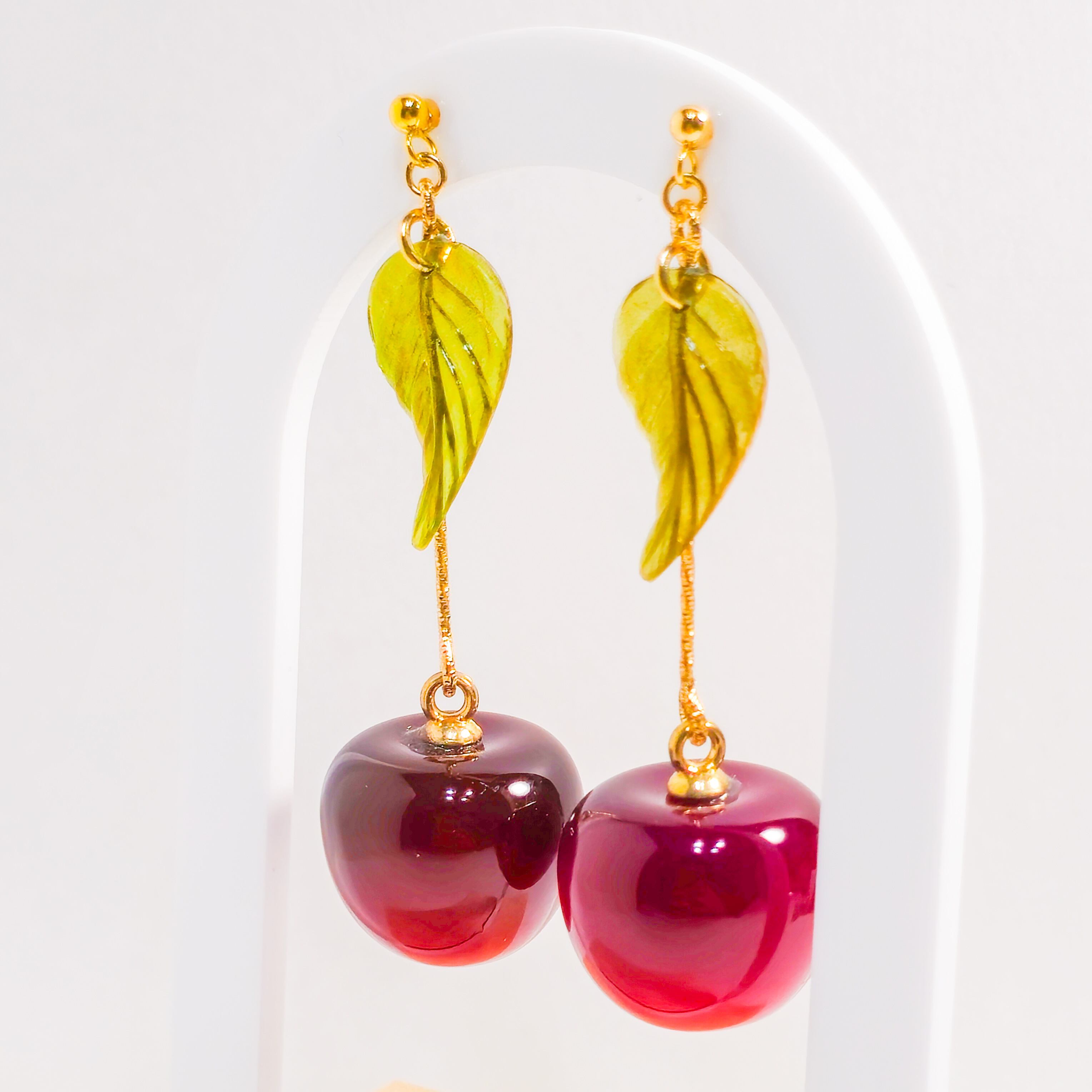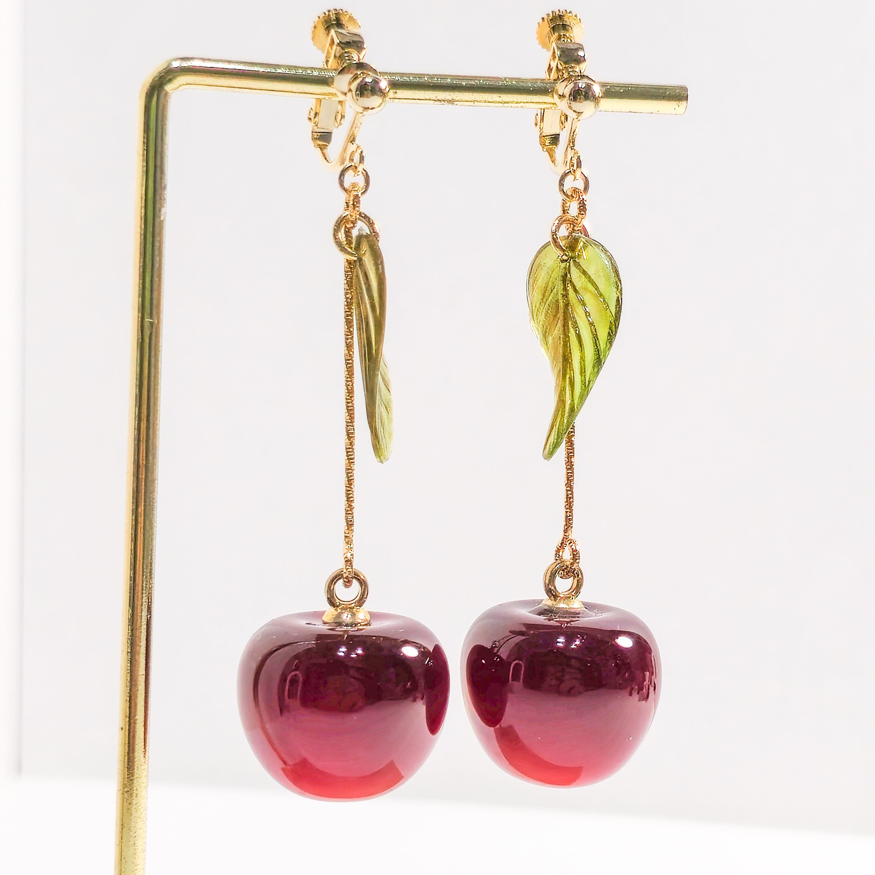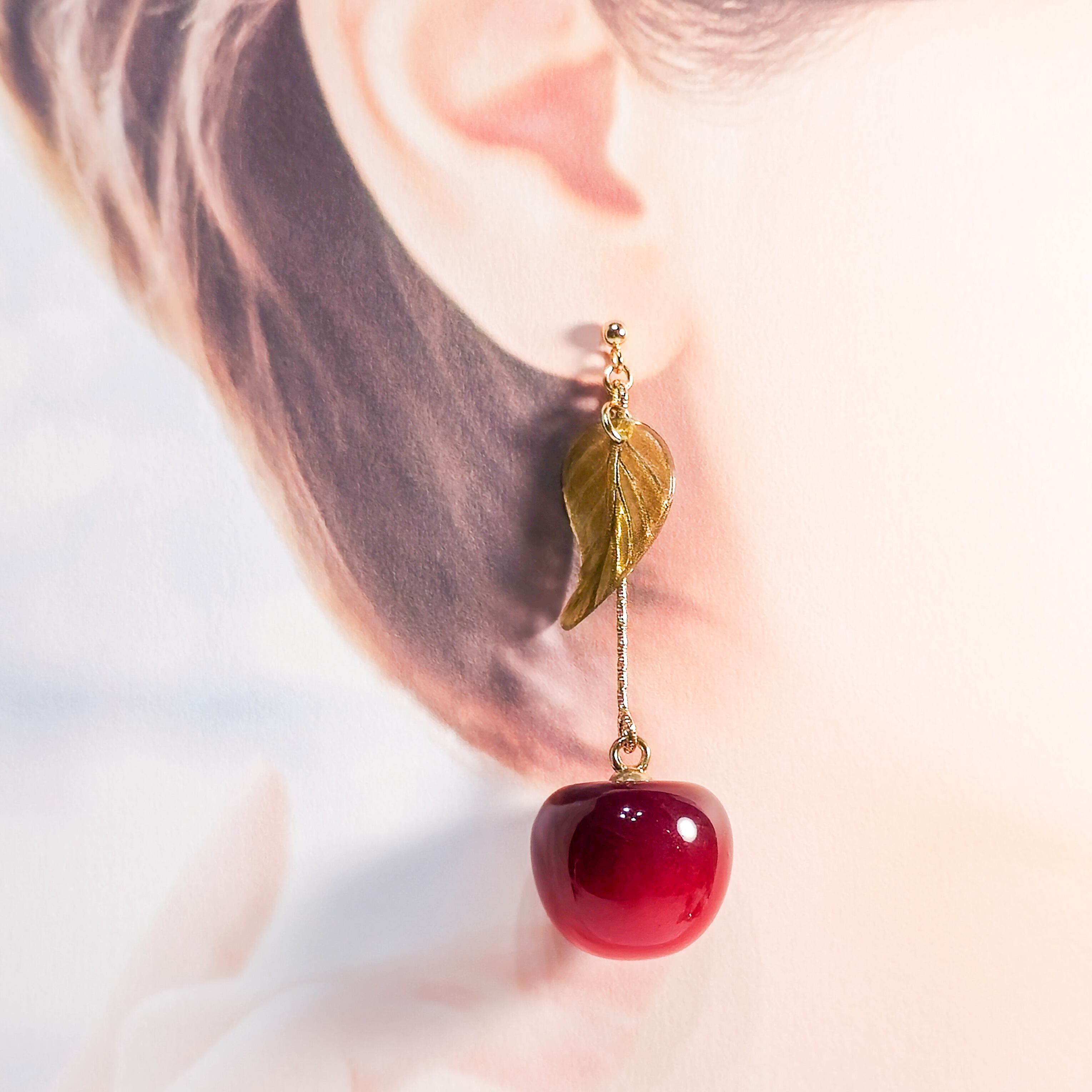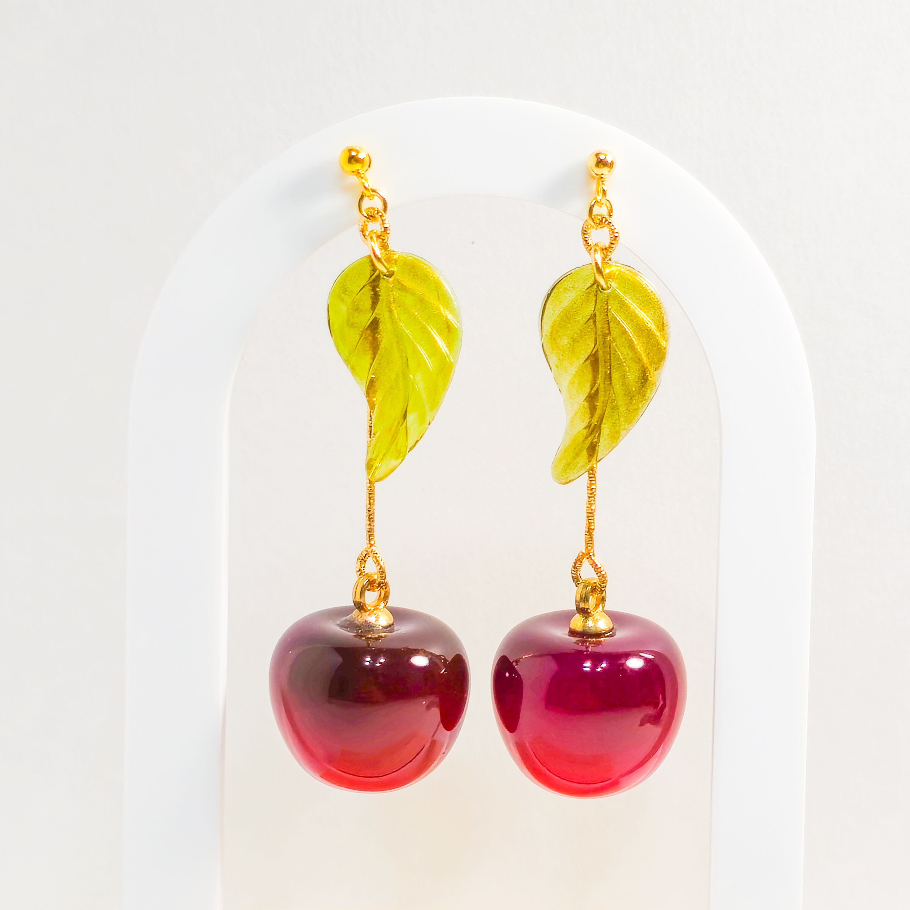 耳元で揺れるさくらんぼのモチーフが、シンプルなスタイルにもアクセントを加え、華やかな存在感を演出します❁︎