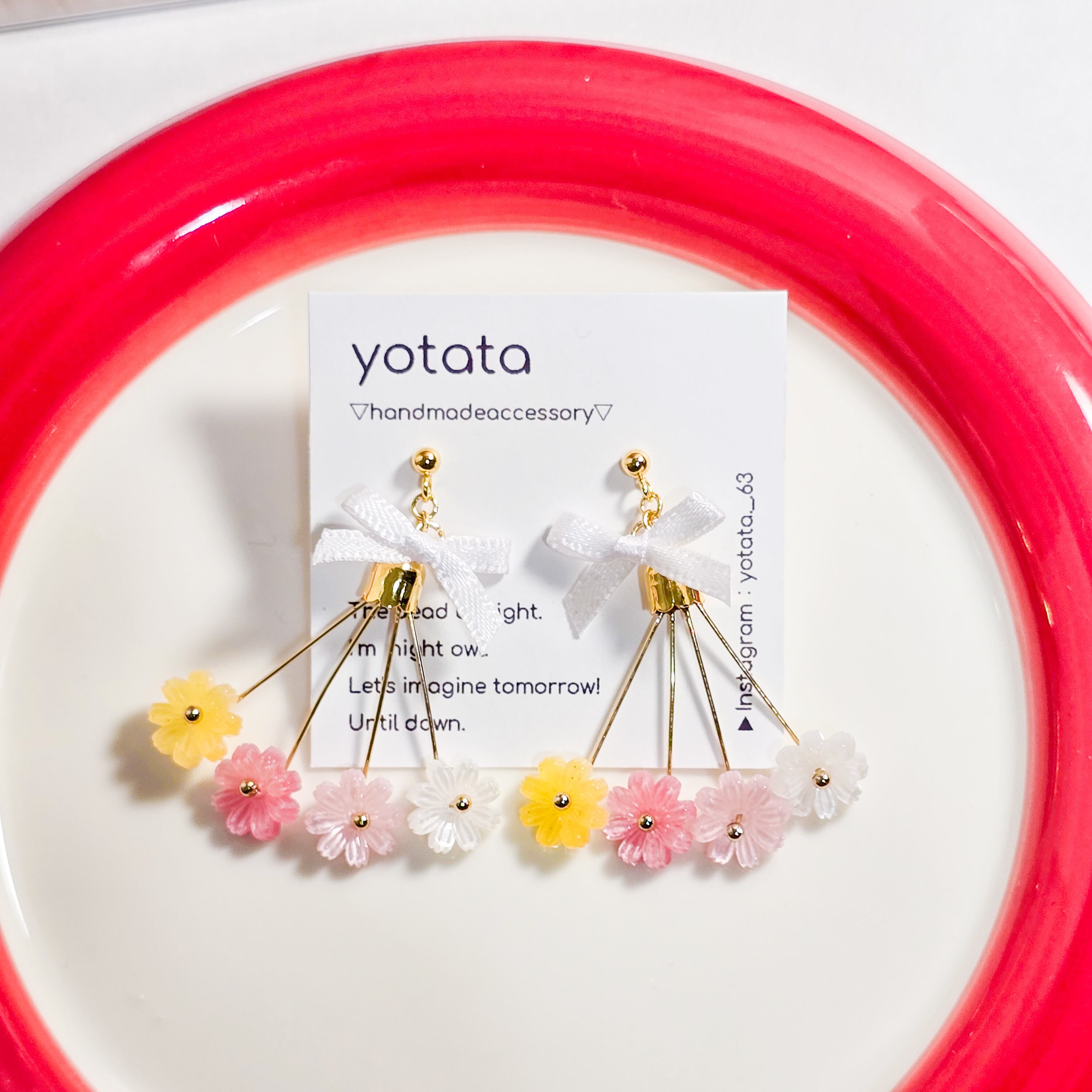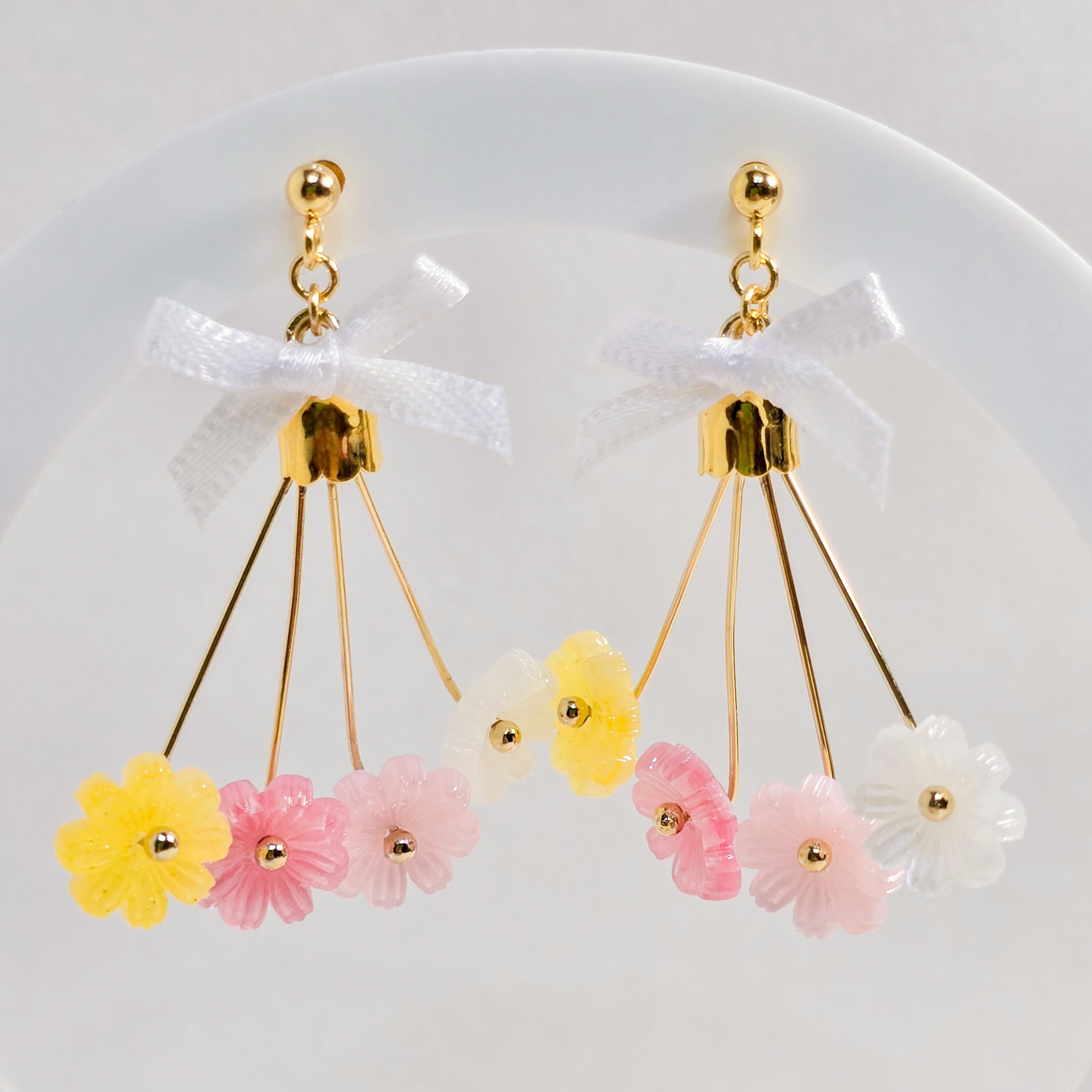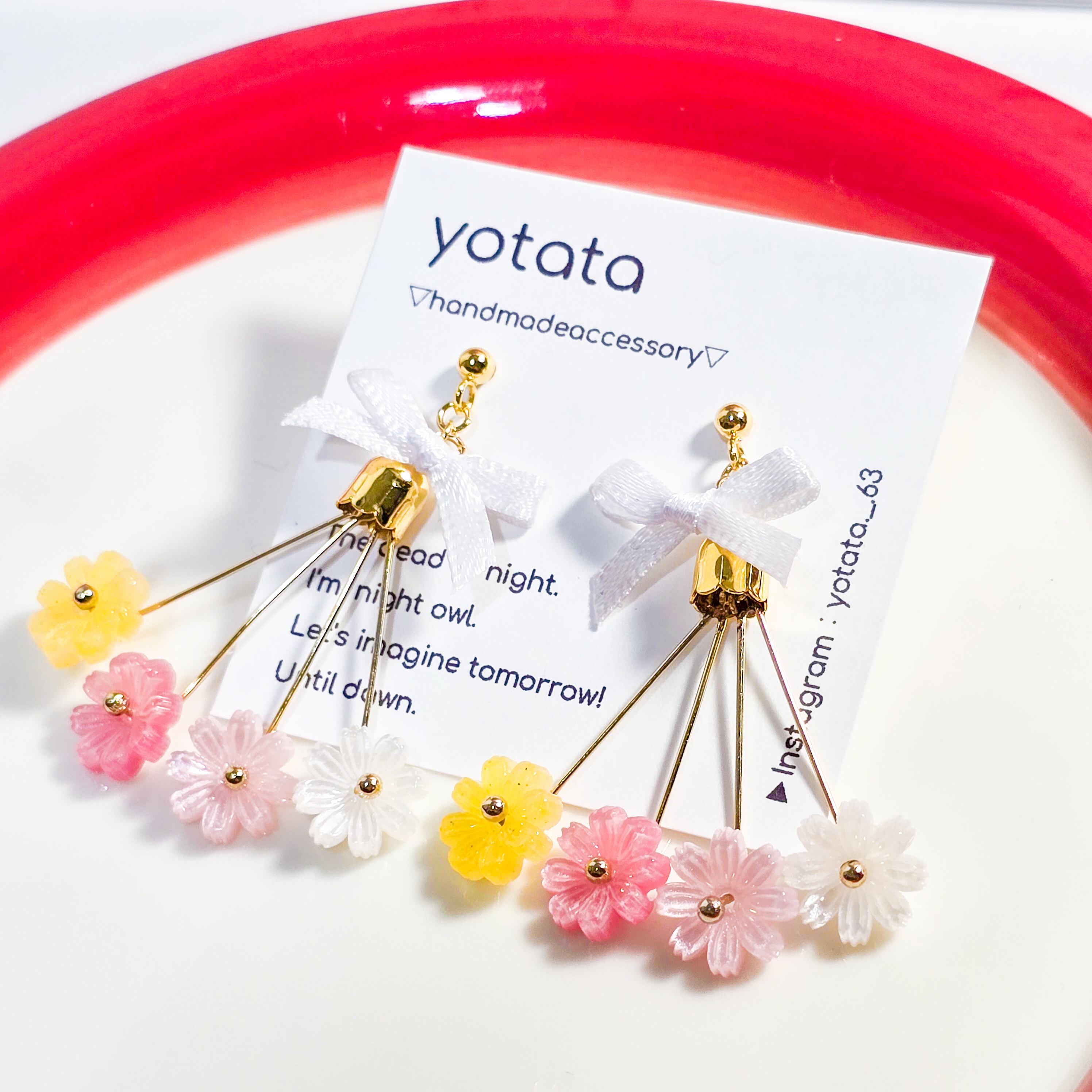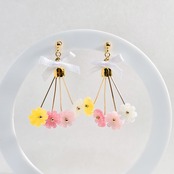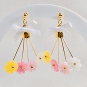 ⟬ ガーベラのリボン付き花束ピアス&イヤリング ⟭