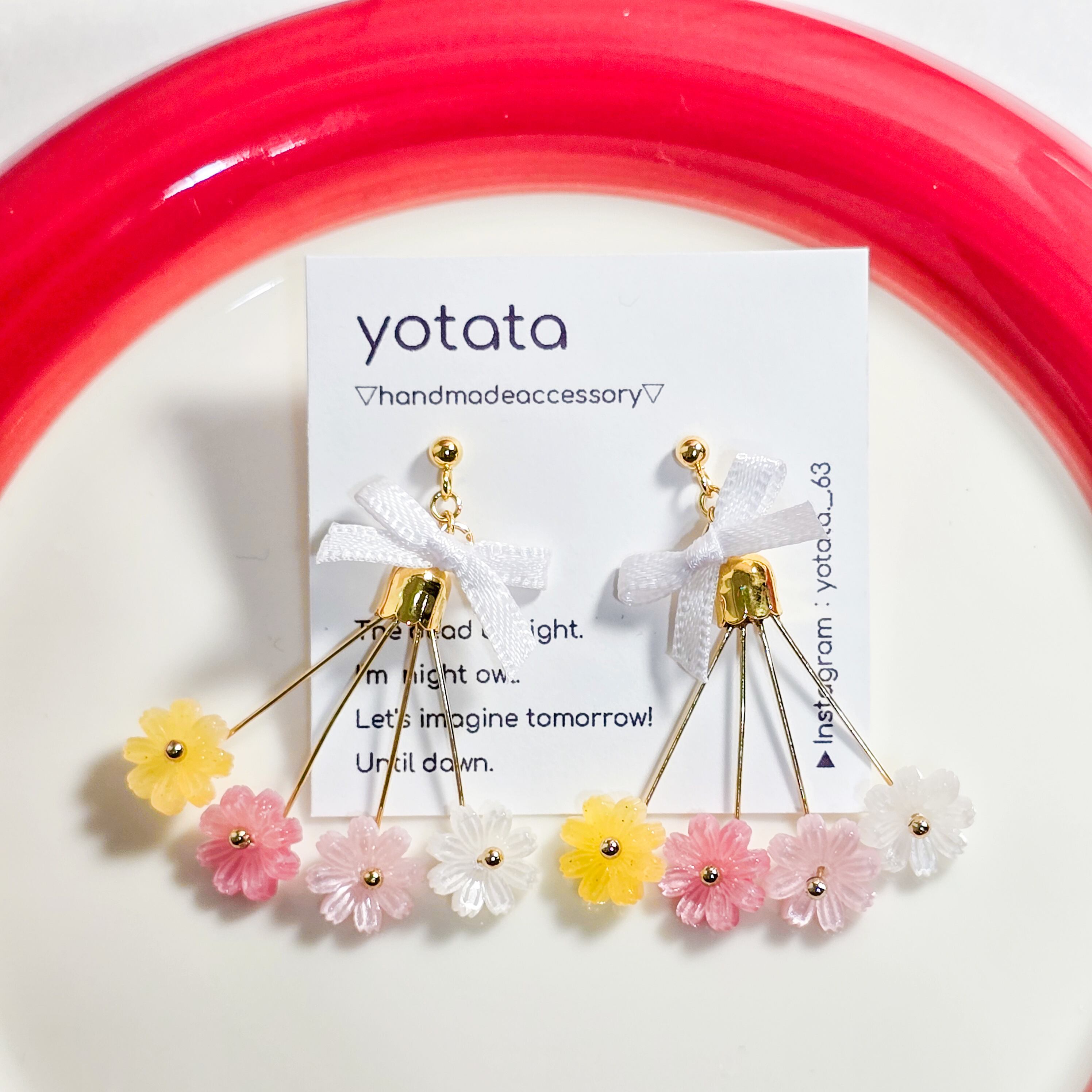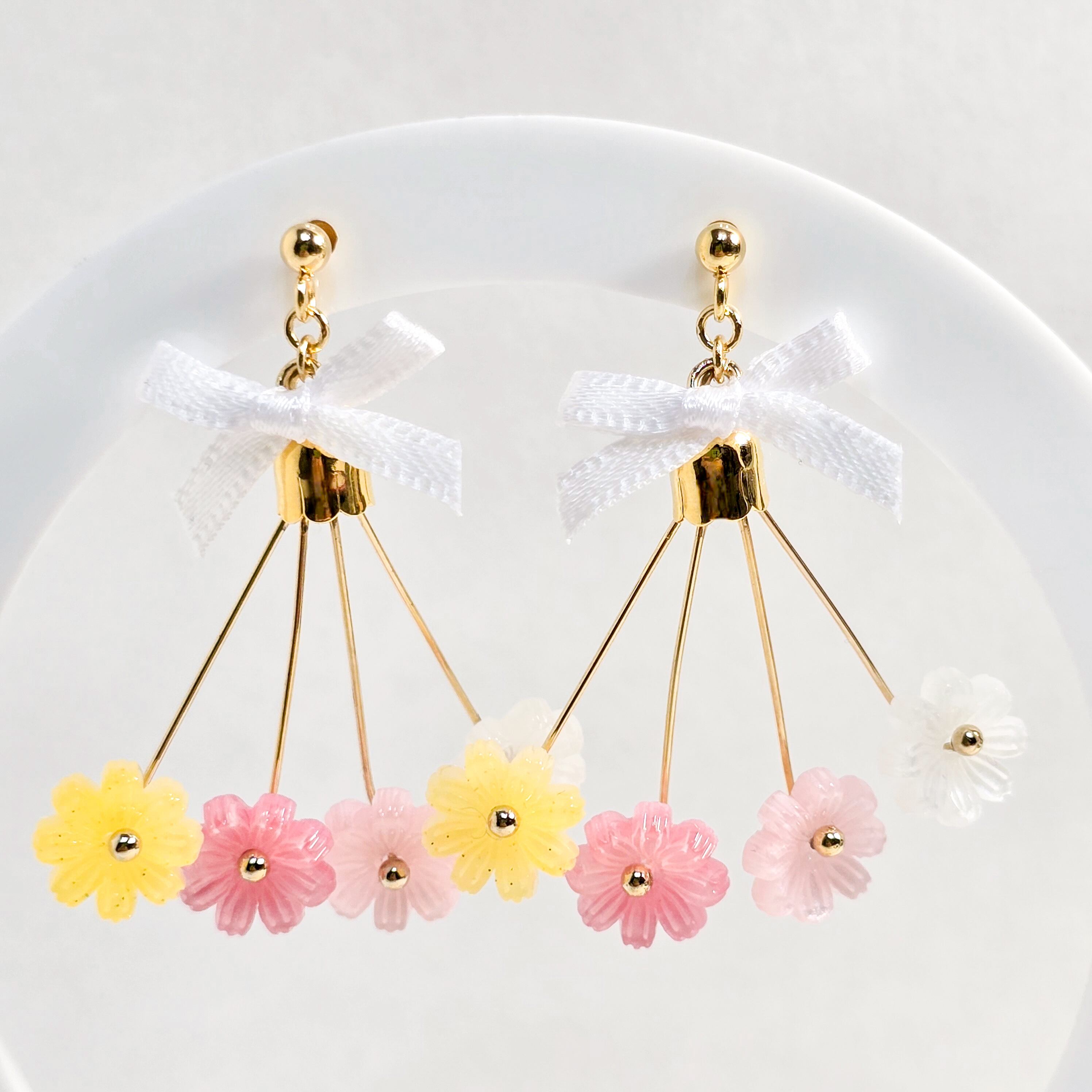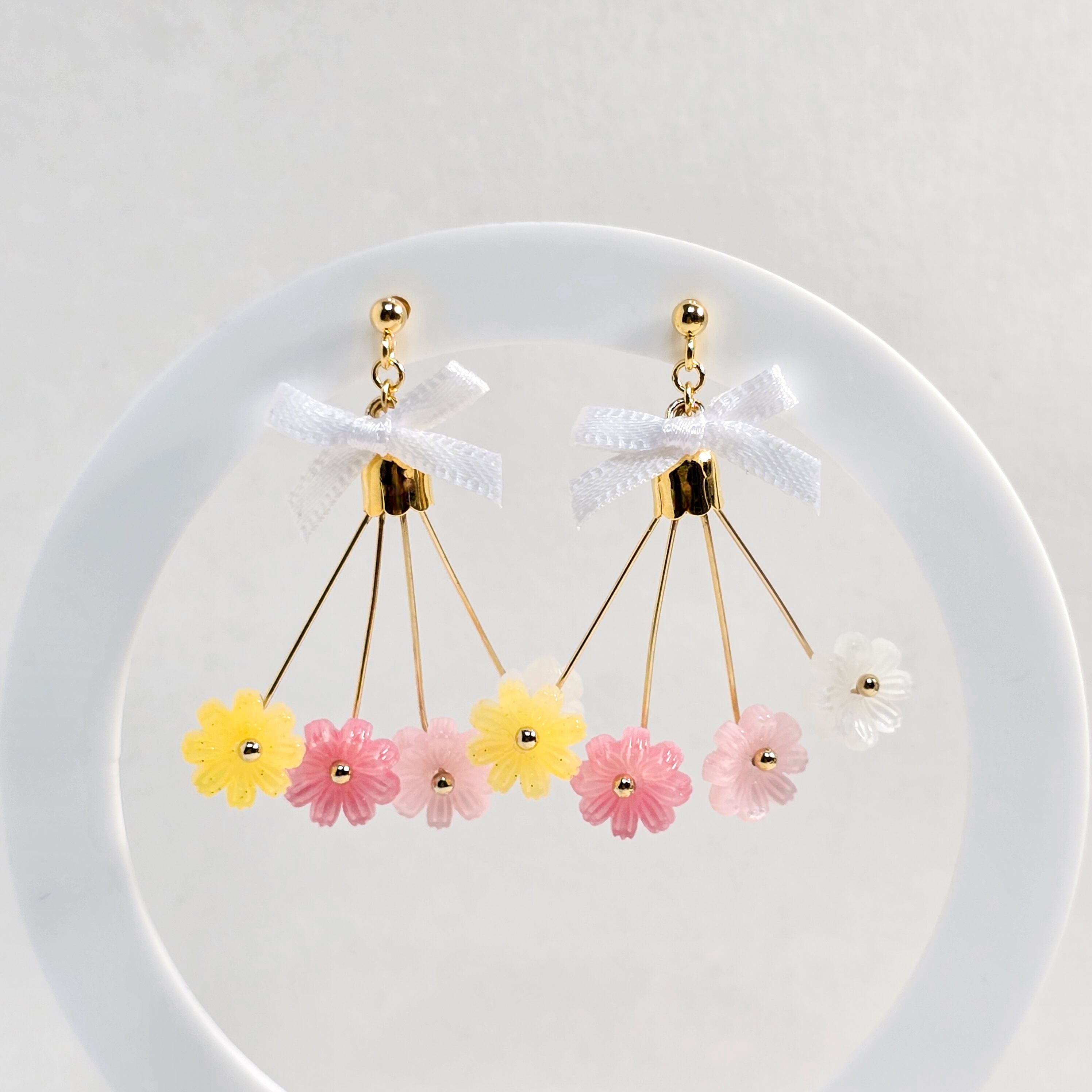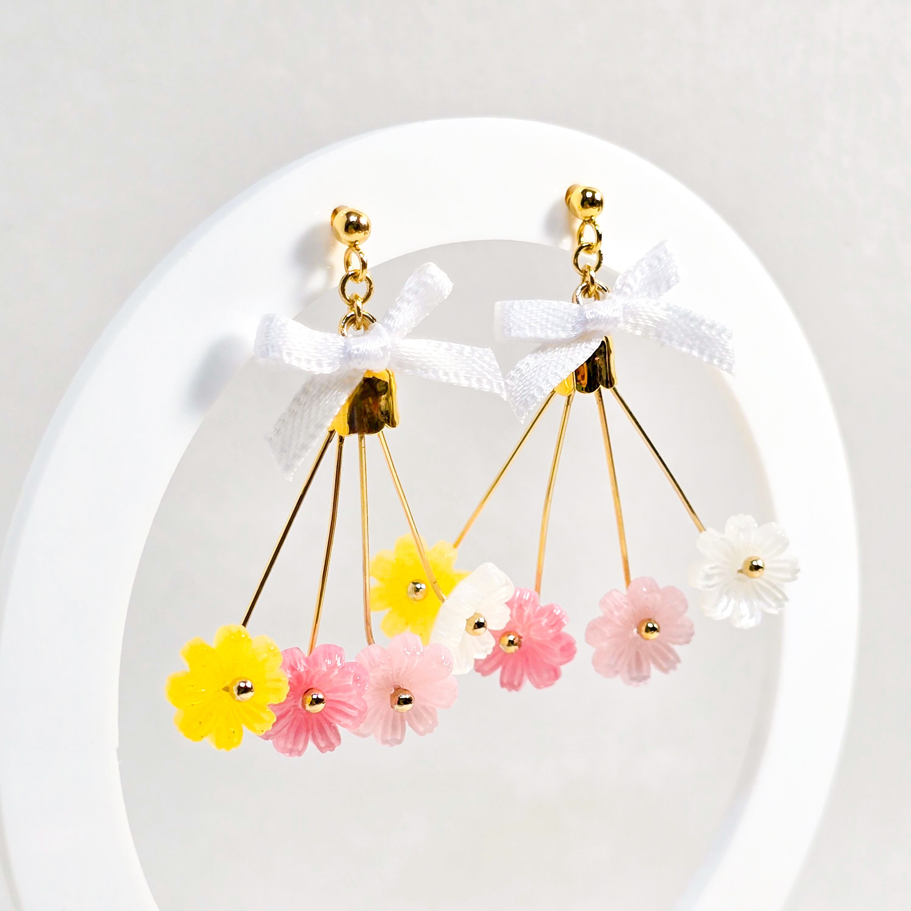 ⟬ ガーベラのリボン付き花束ピアス&イヤリング ⟭