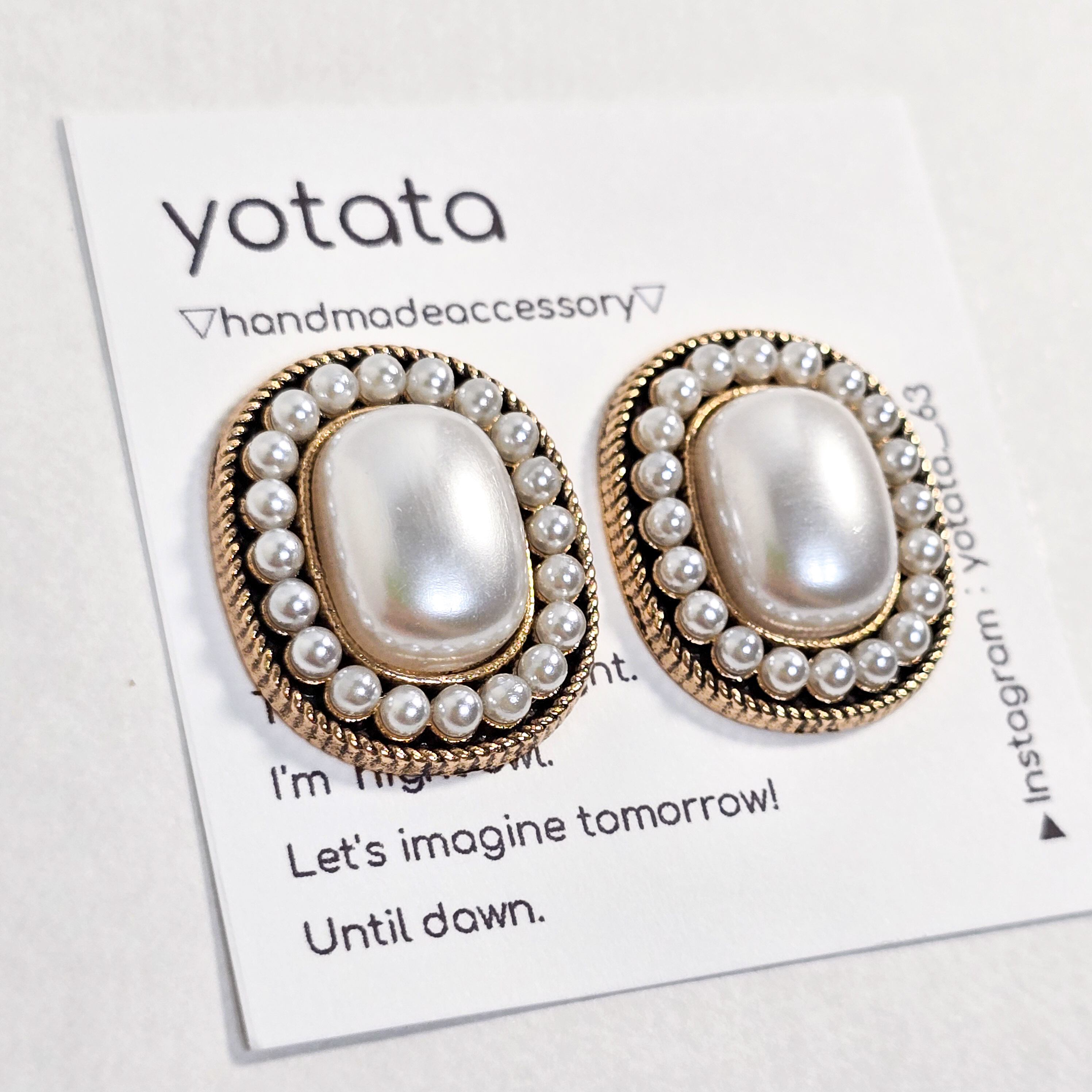洗練されたデザインは、レトロでかわいく耳元で存在感を放ち、パールの輝きが印象的で、どんなコーディネートにもエレガンスをプラスします❁︎