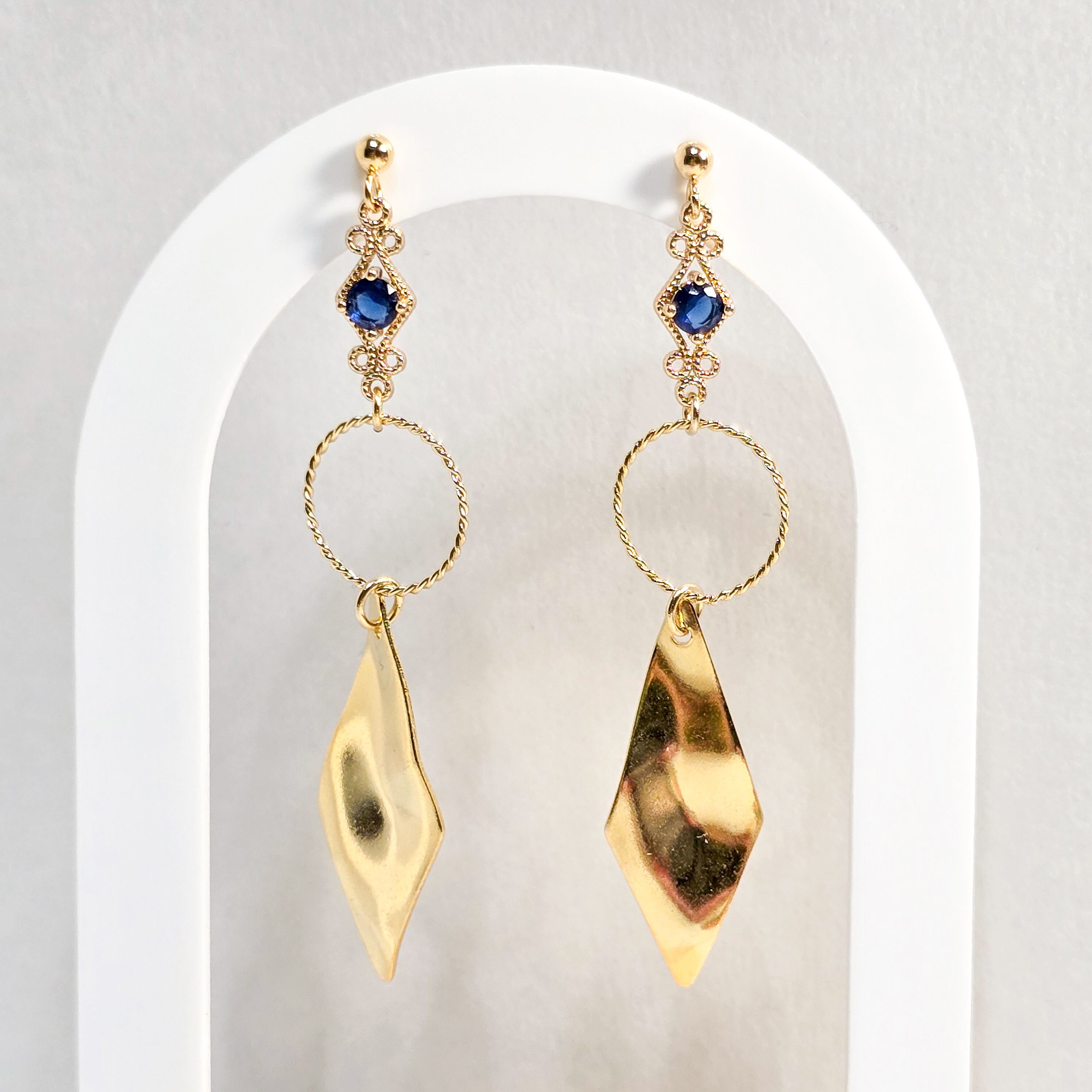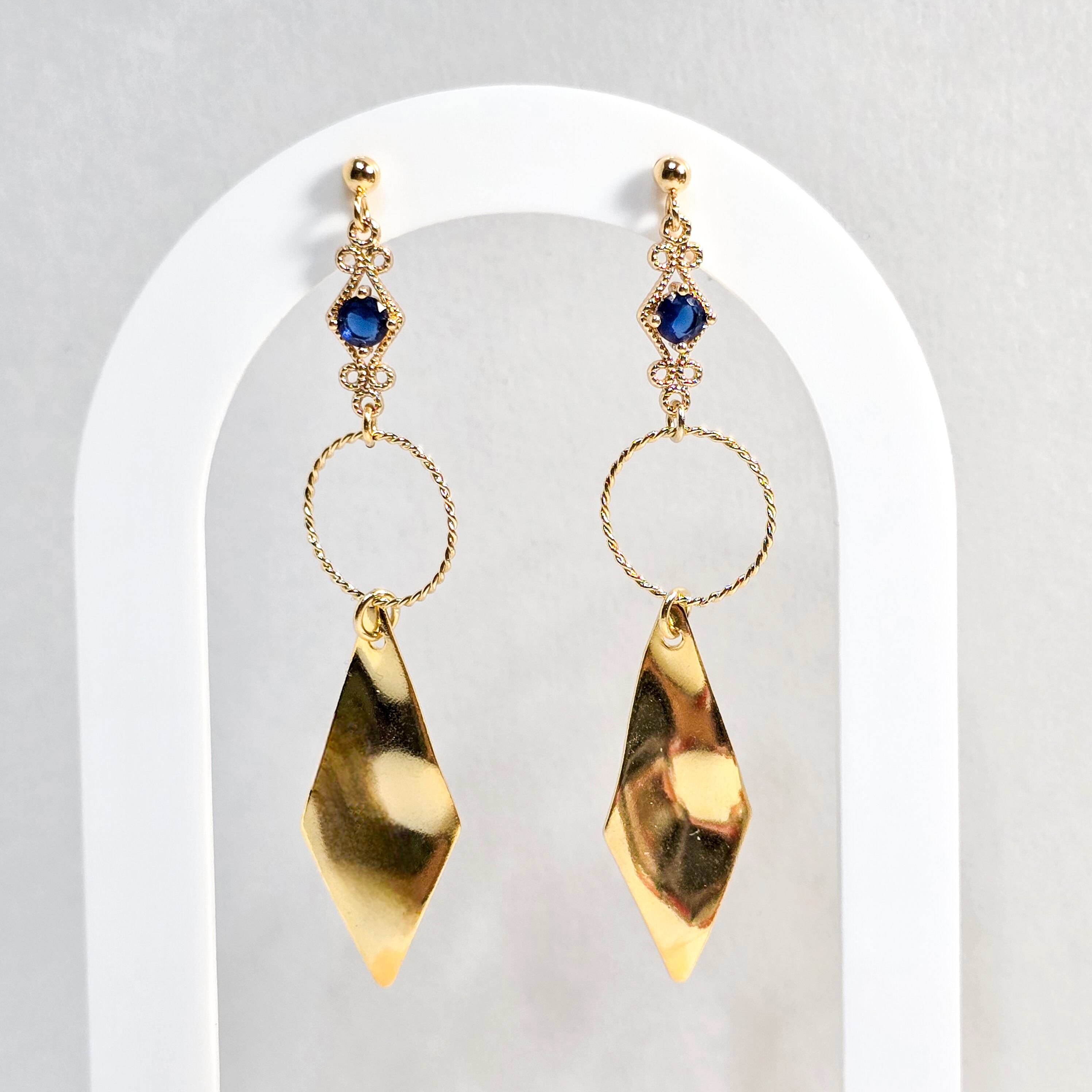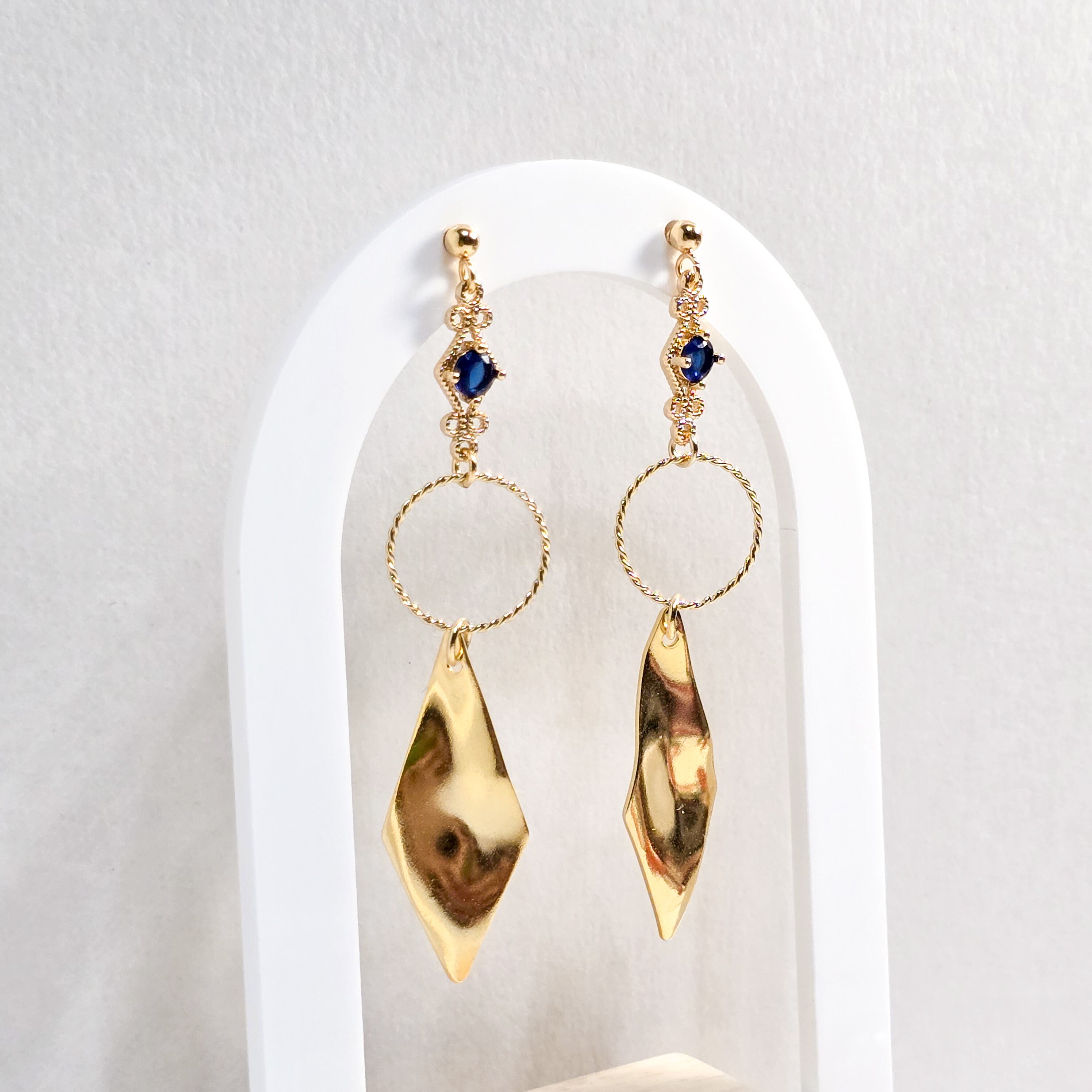 華やかなゴールドとキラキラに輝くロイヤルブルーのキュービックジルコニアが絶妙に組み合わさり、耳元をエレガントに彩ります❁