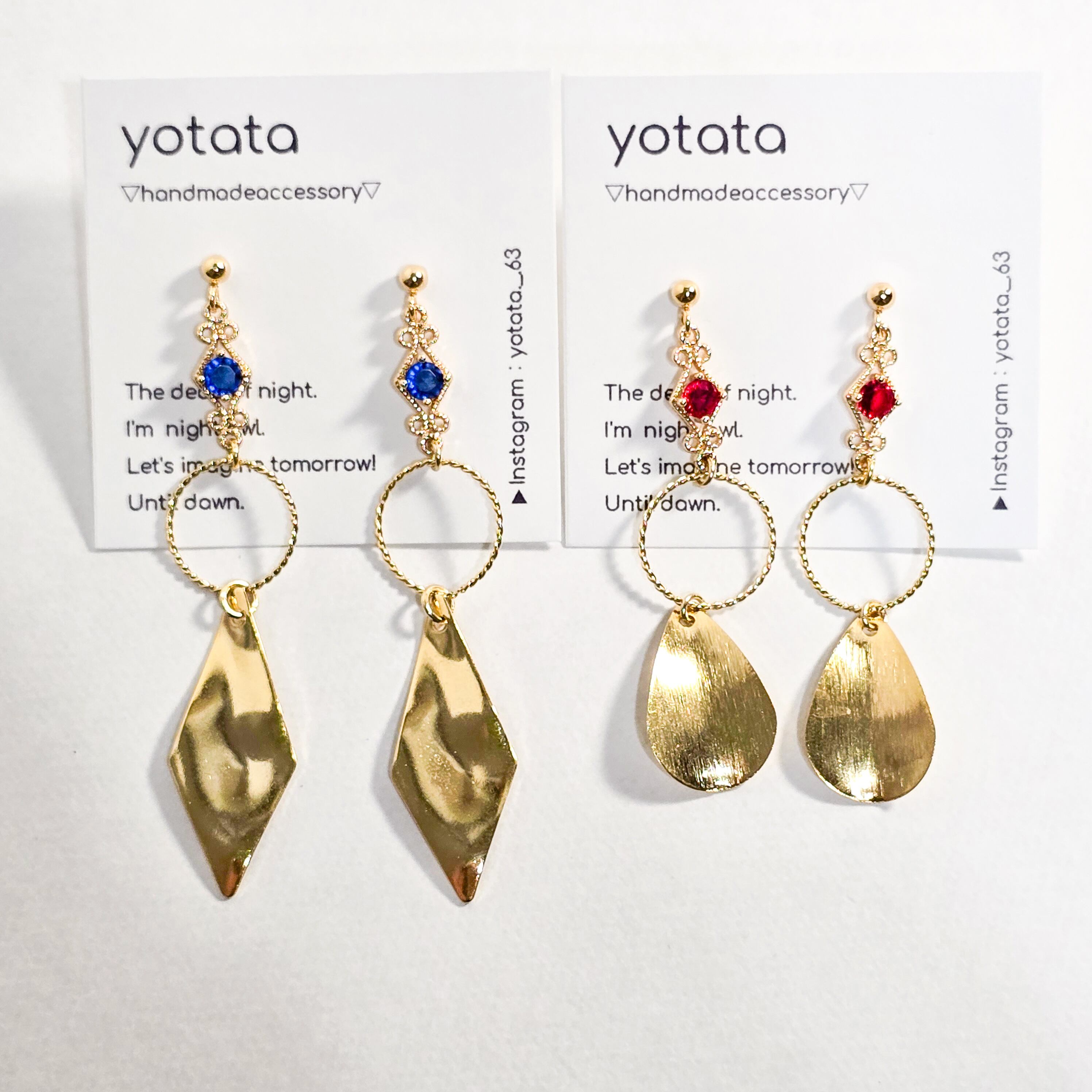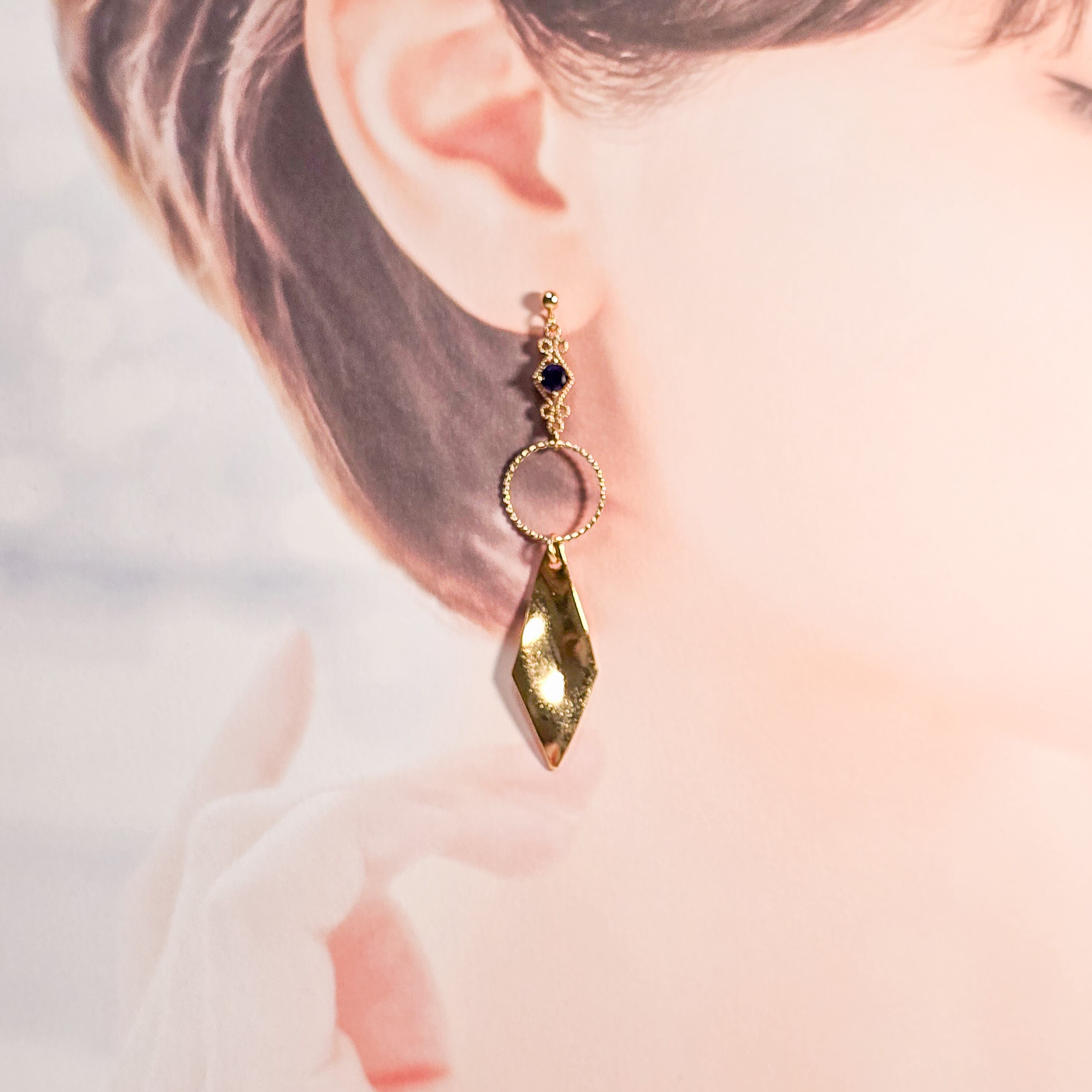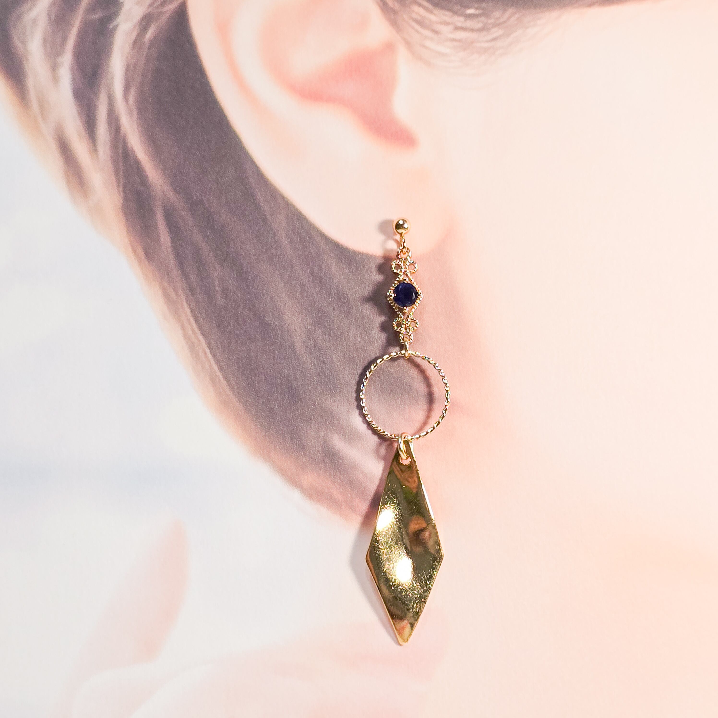 華やかなゴールドとキラキラに輝くロイヤルブルーのキュービックジルコニアが絶妙に組み合わさり、耳元をエレガントに彩ります❁