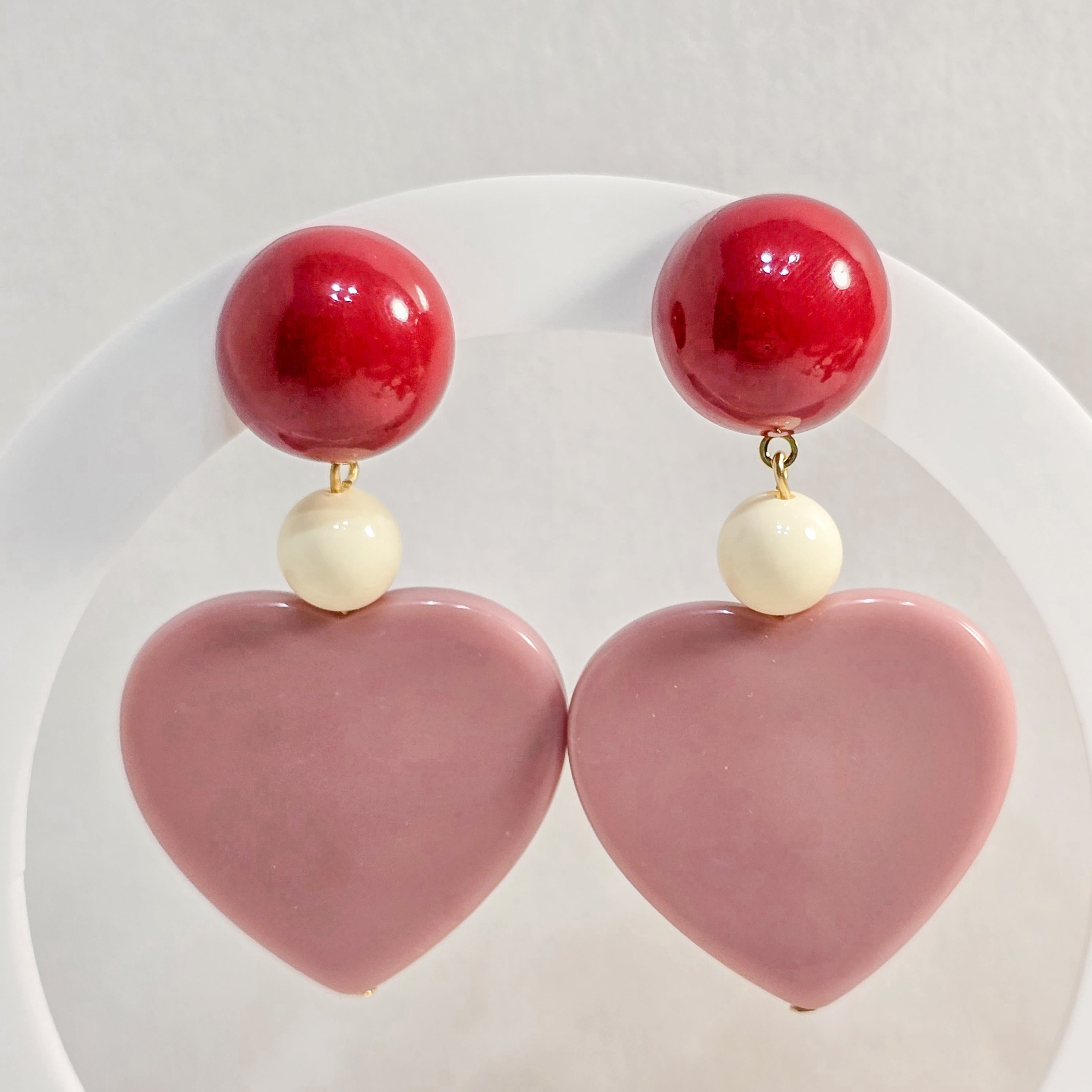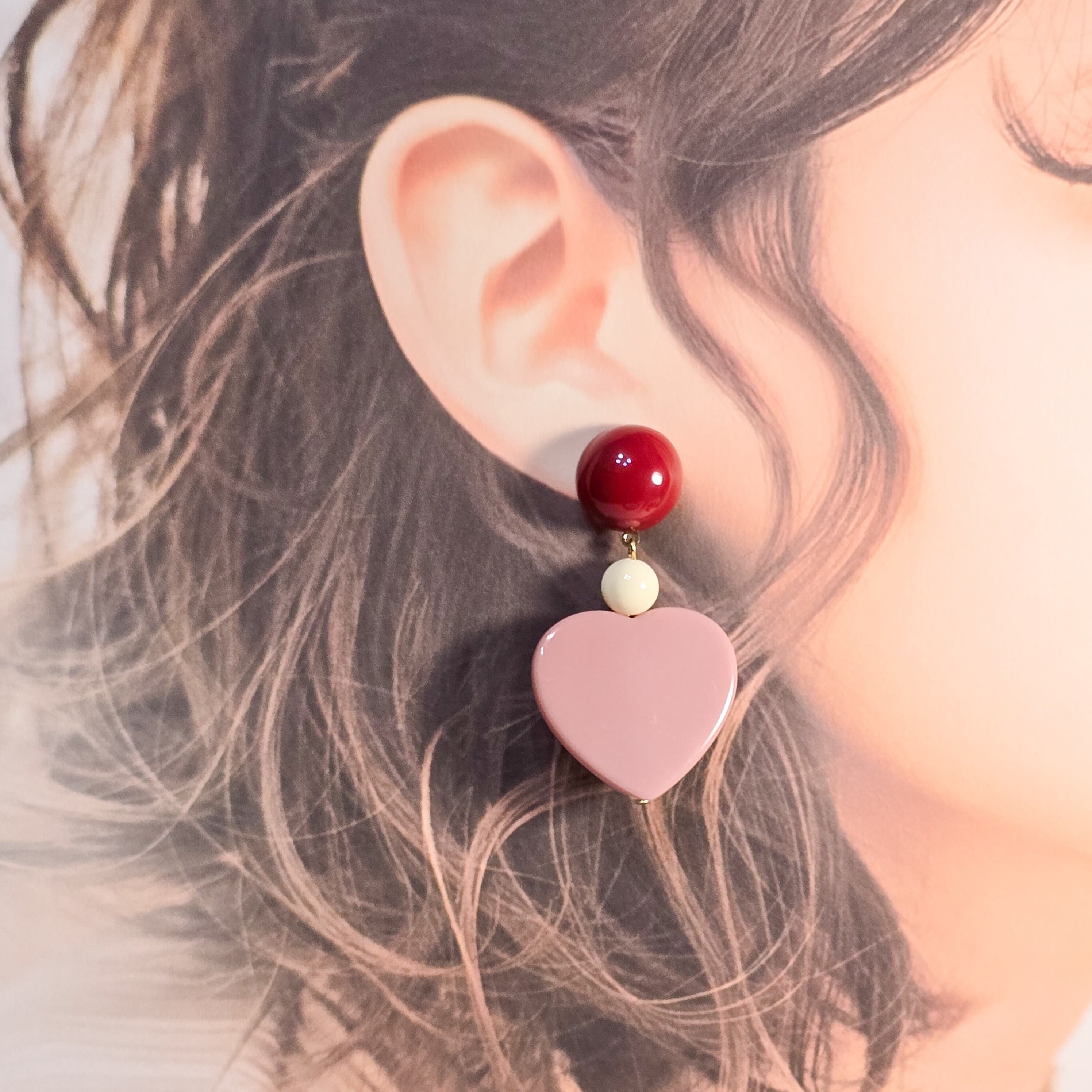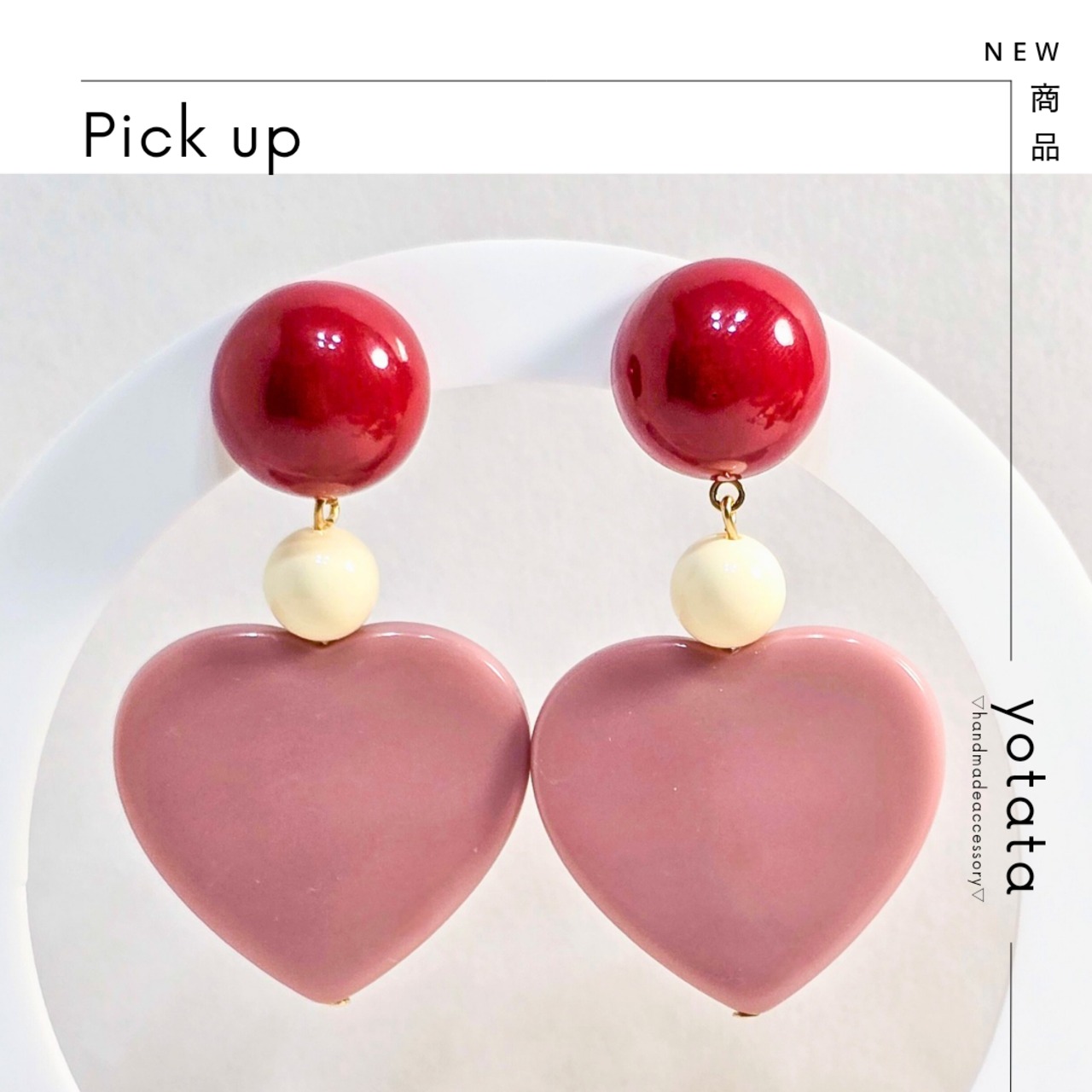 ⟬ レッド×ミルキーピンクの大ぶりハートピアス&イヤリング ⟭