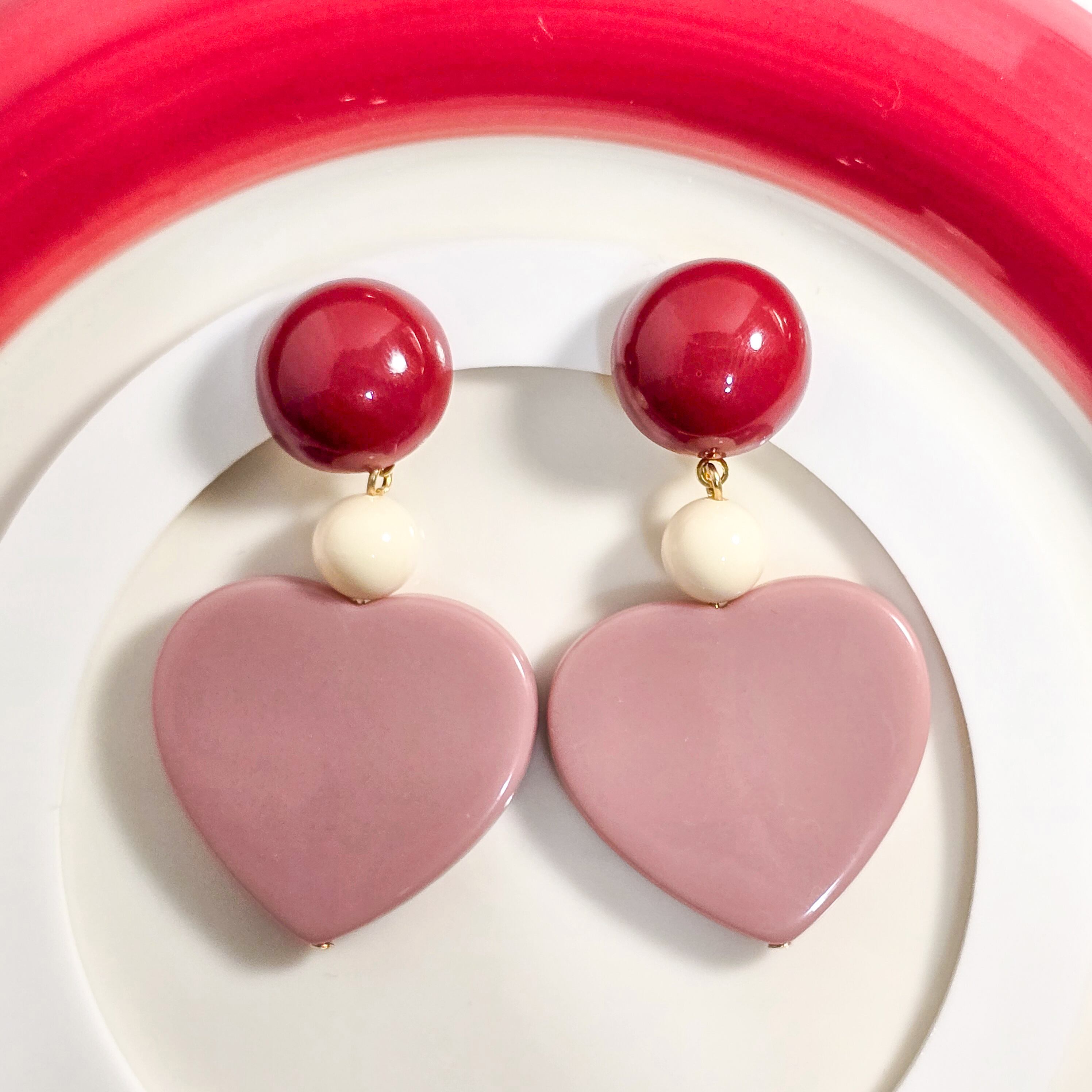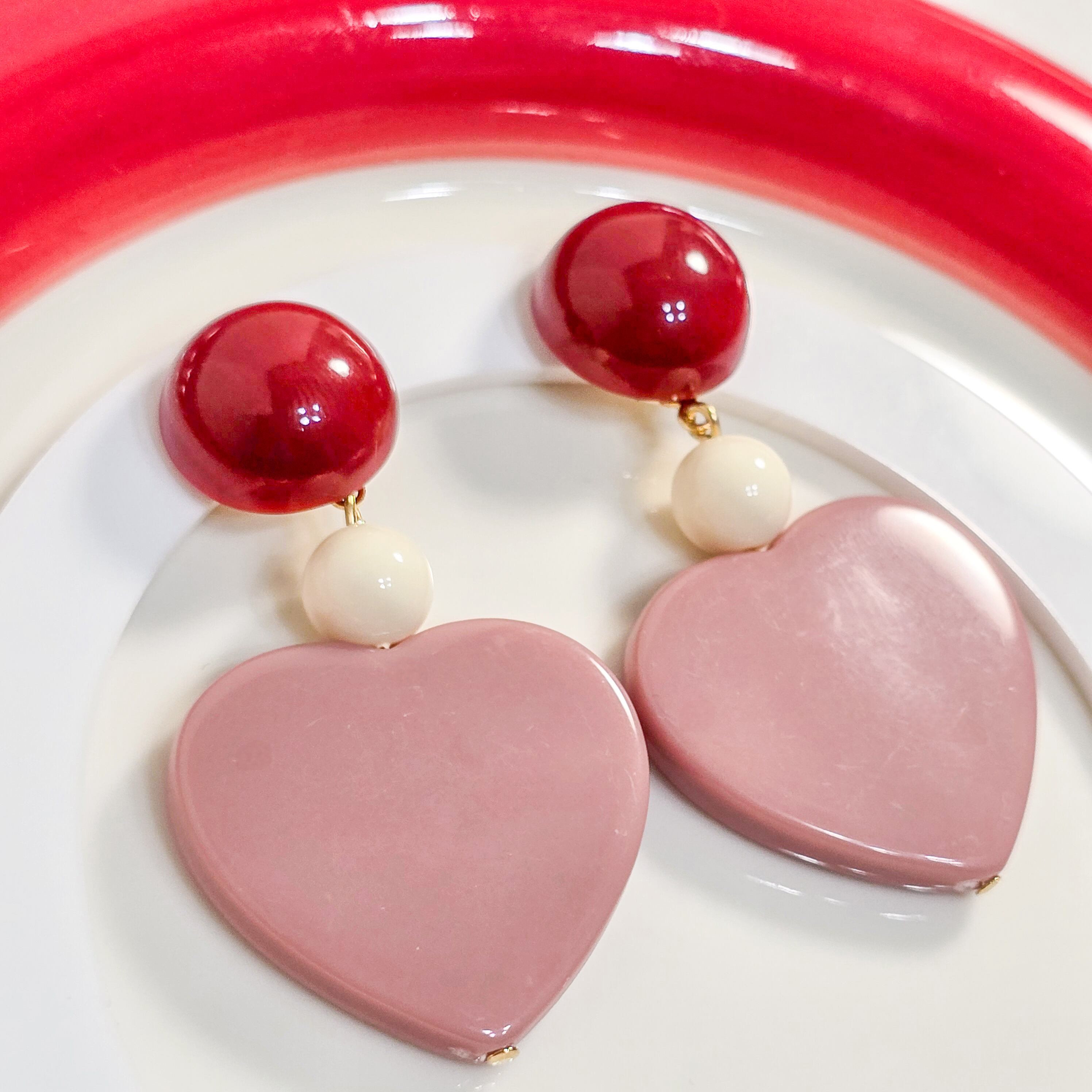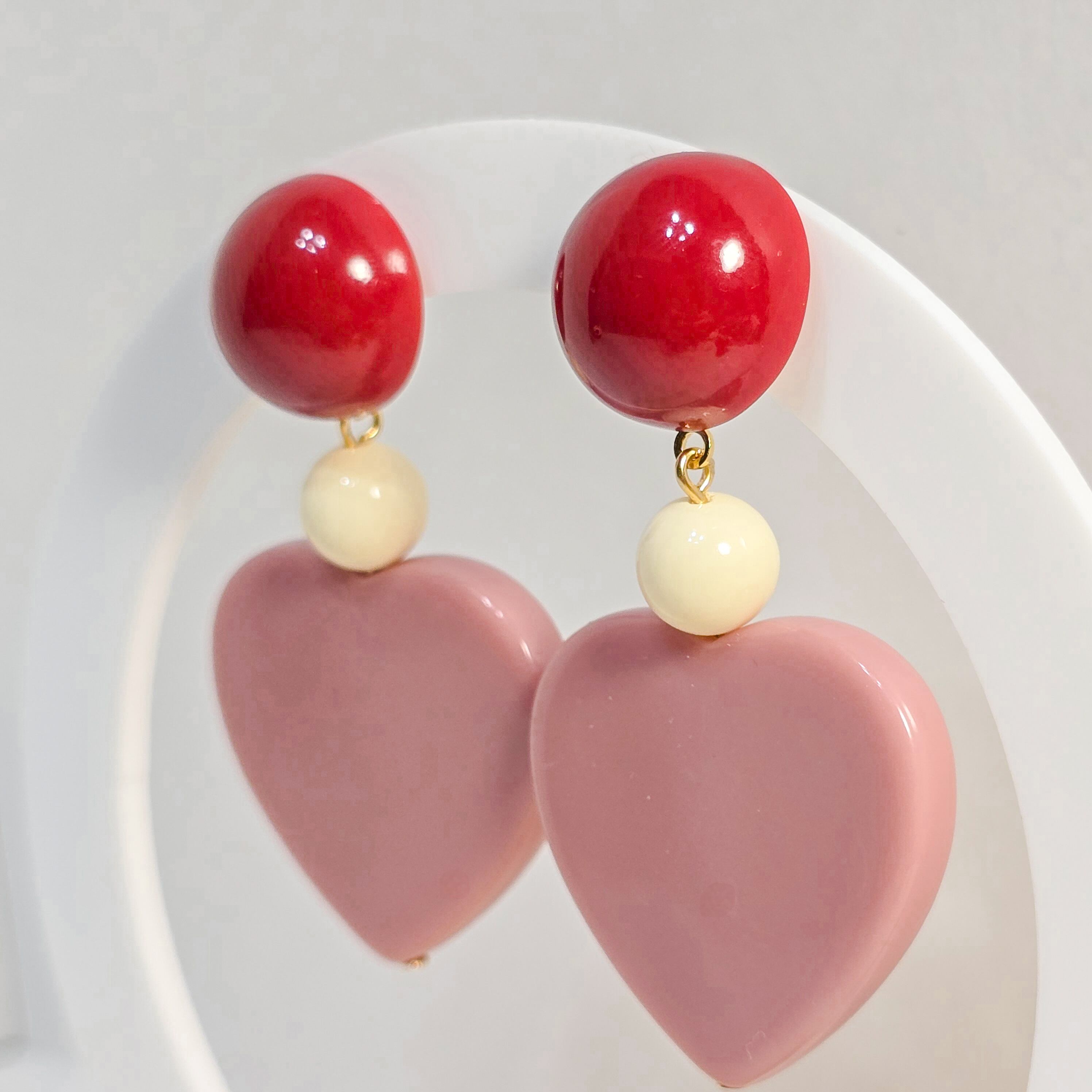 ⟬ レッド×ミルキーピンクの大ぶりハートピアス&イヤリング ⟭
