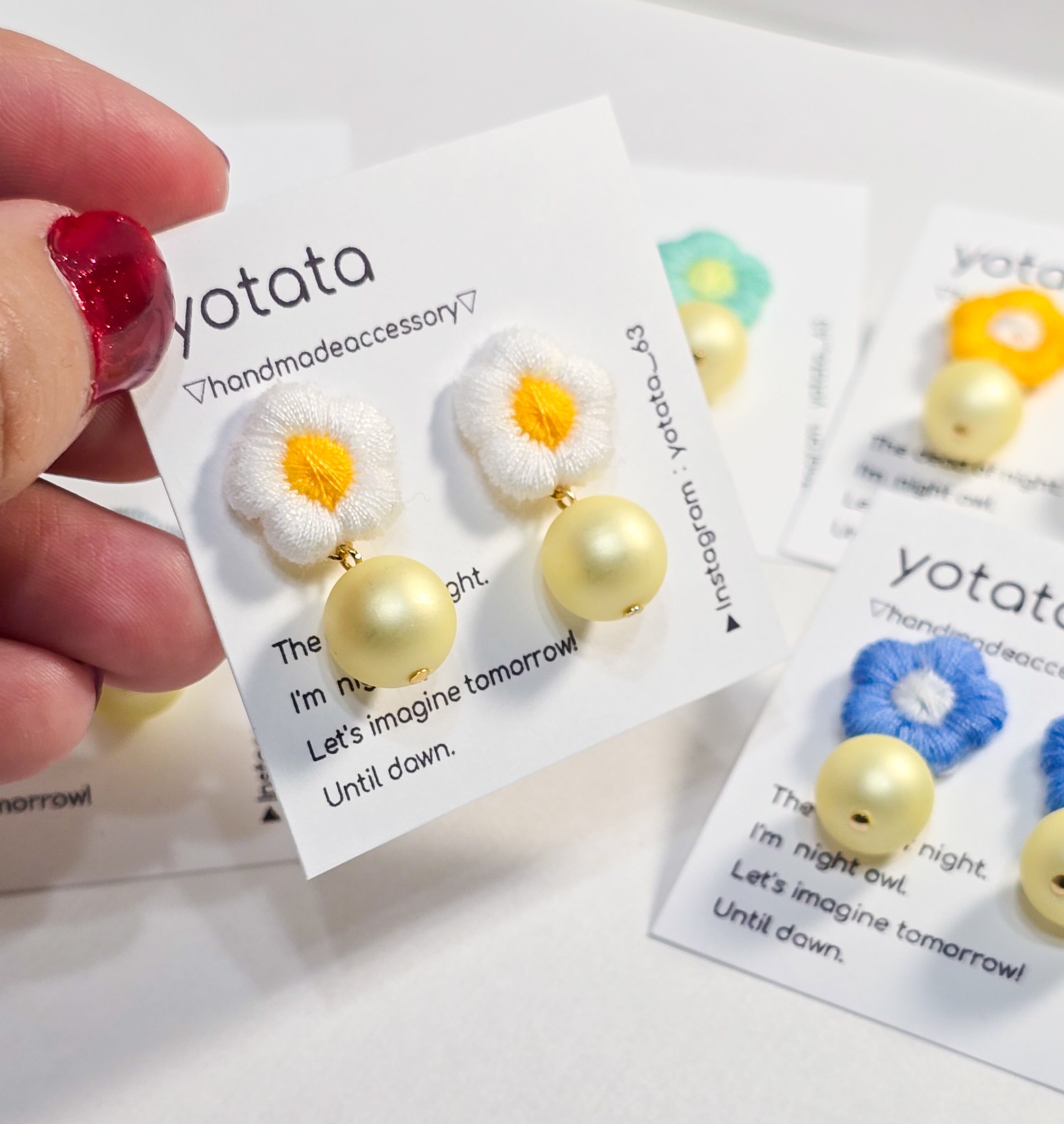 1粒ぷっくり刺繡フラワーにレモンクリームパールを添えました!