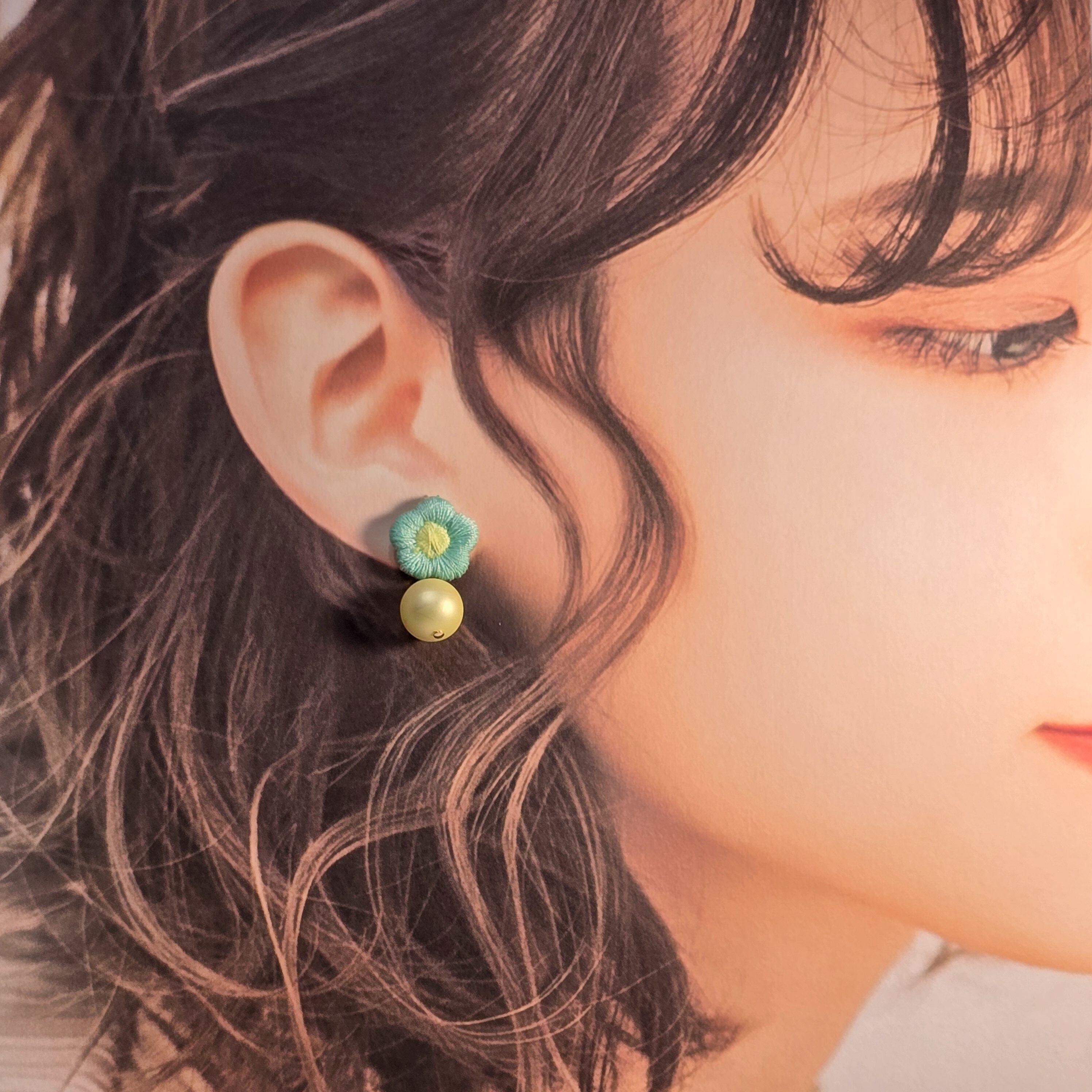 優しい色合いのミントグリーン×イエローの組み合わせが、耳元に華やかさを添えます♡