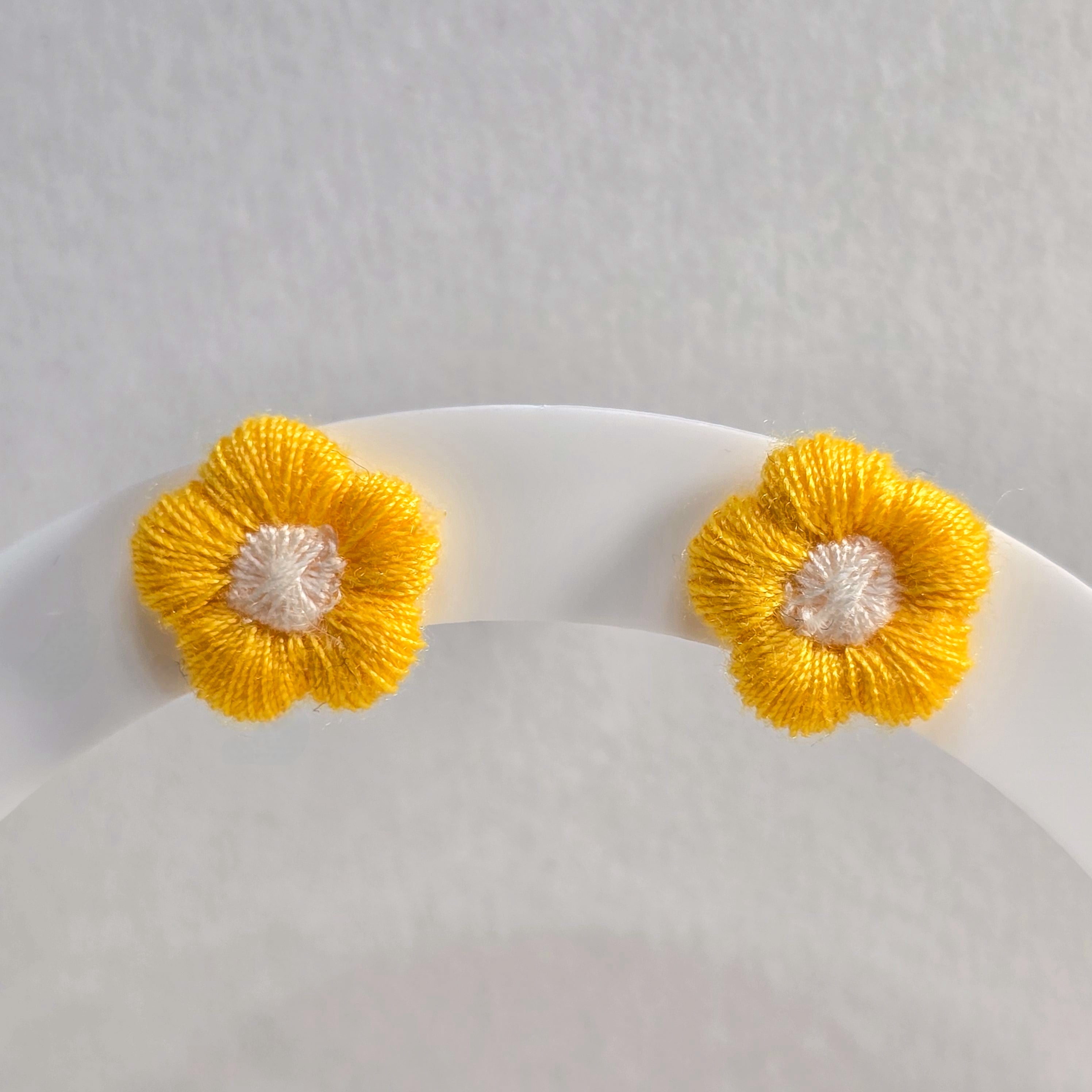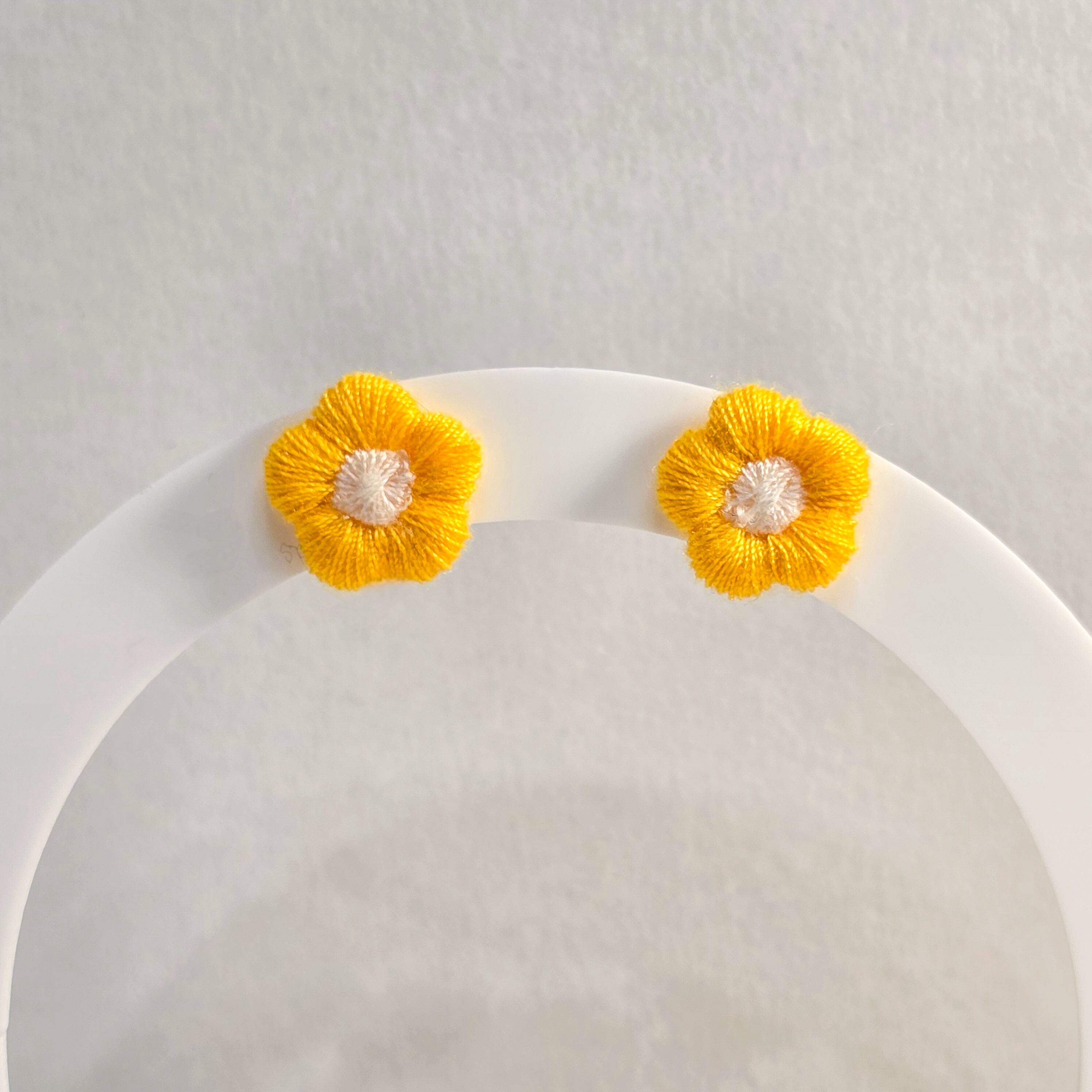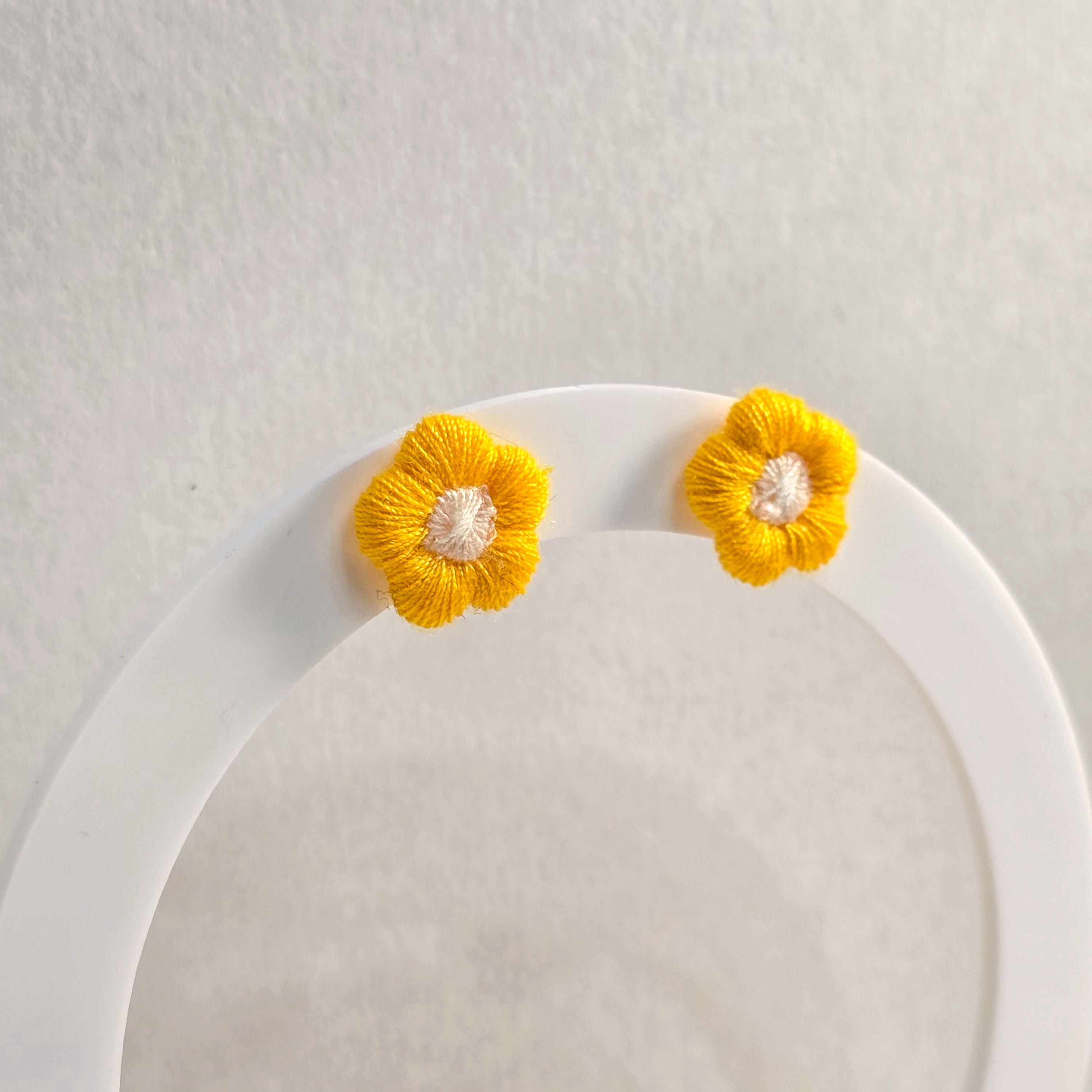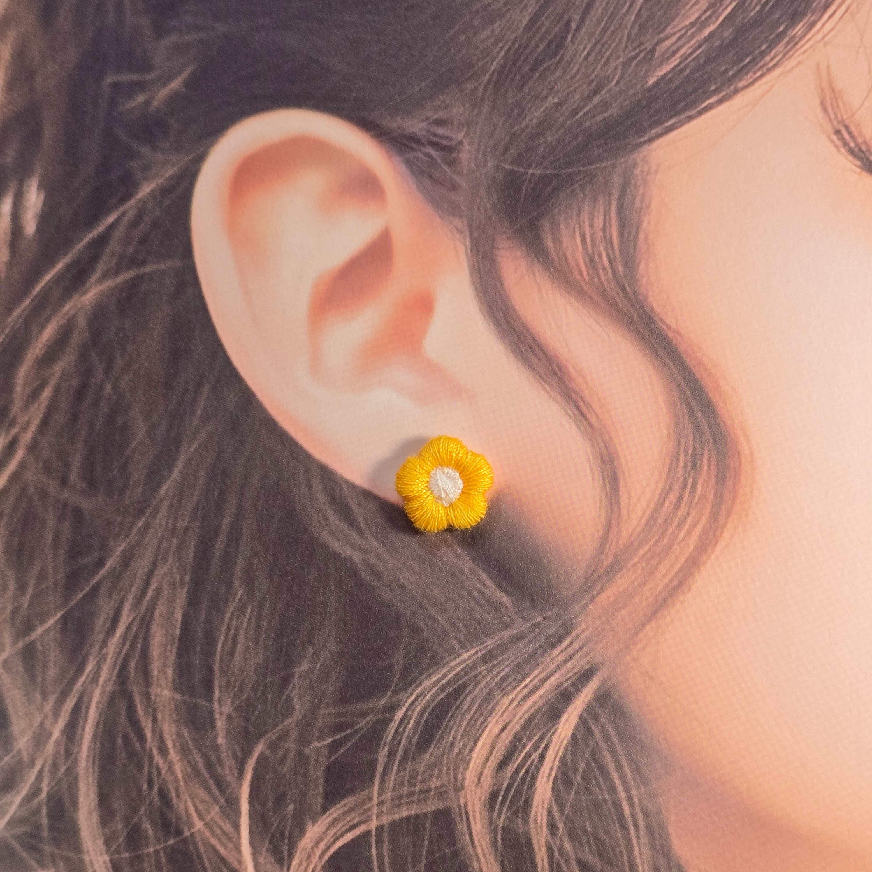 ⟬ 1粒ぷっくり刺繡フラワー(オレンジイエロー×ホワイト)ピアス&イヤリング ⟭