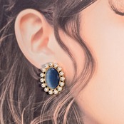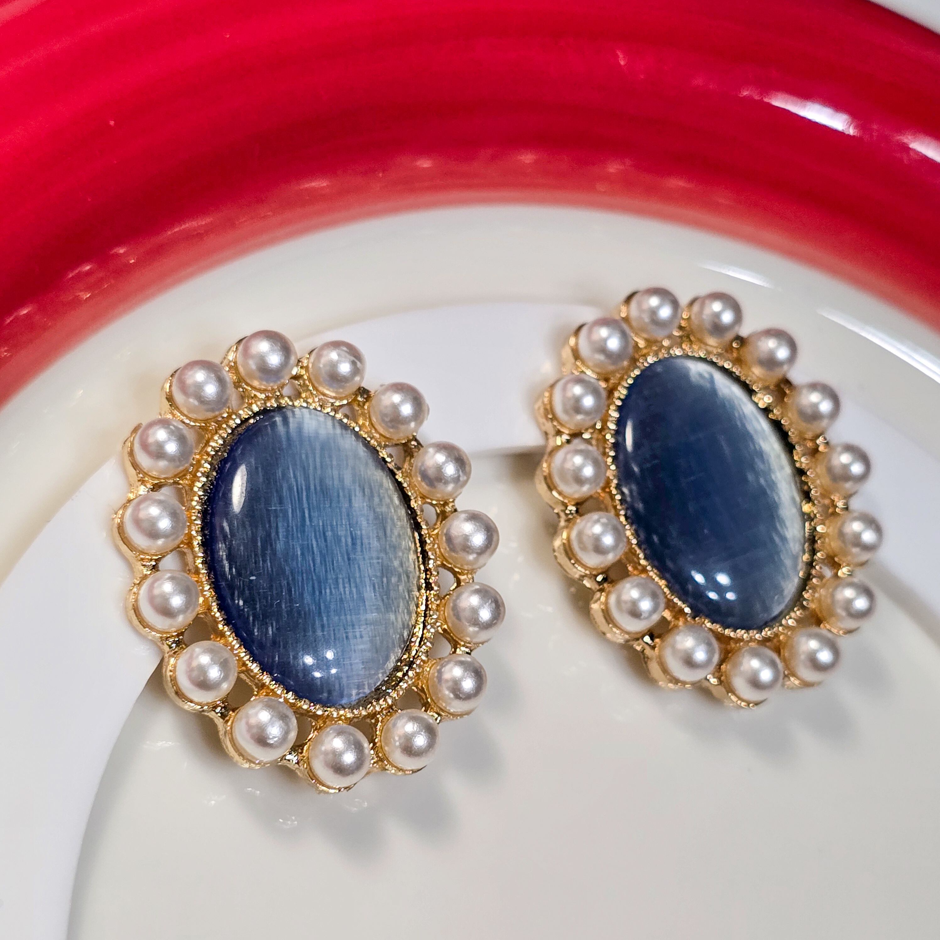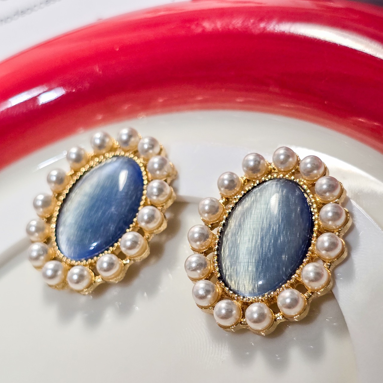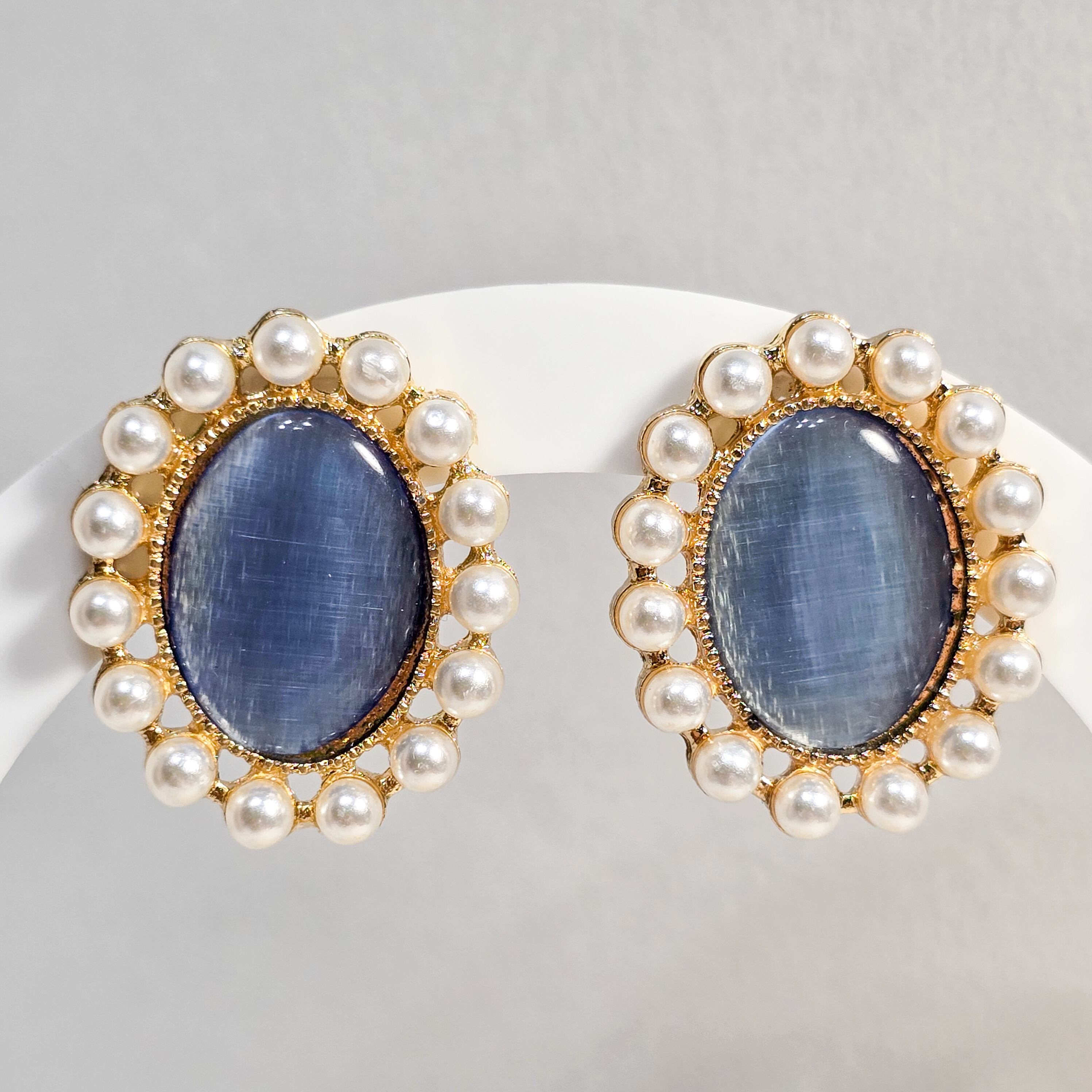 ⟬ キャッツアイ/パール付きカボション(ブルー)ピアス&イヤリング ⟭