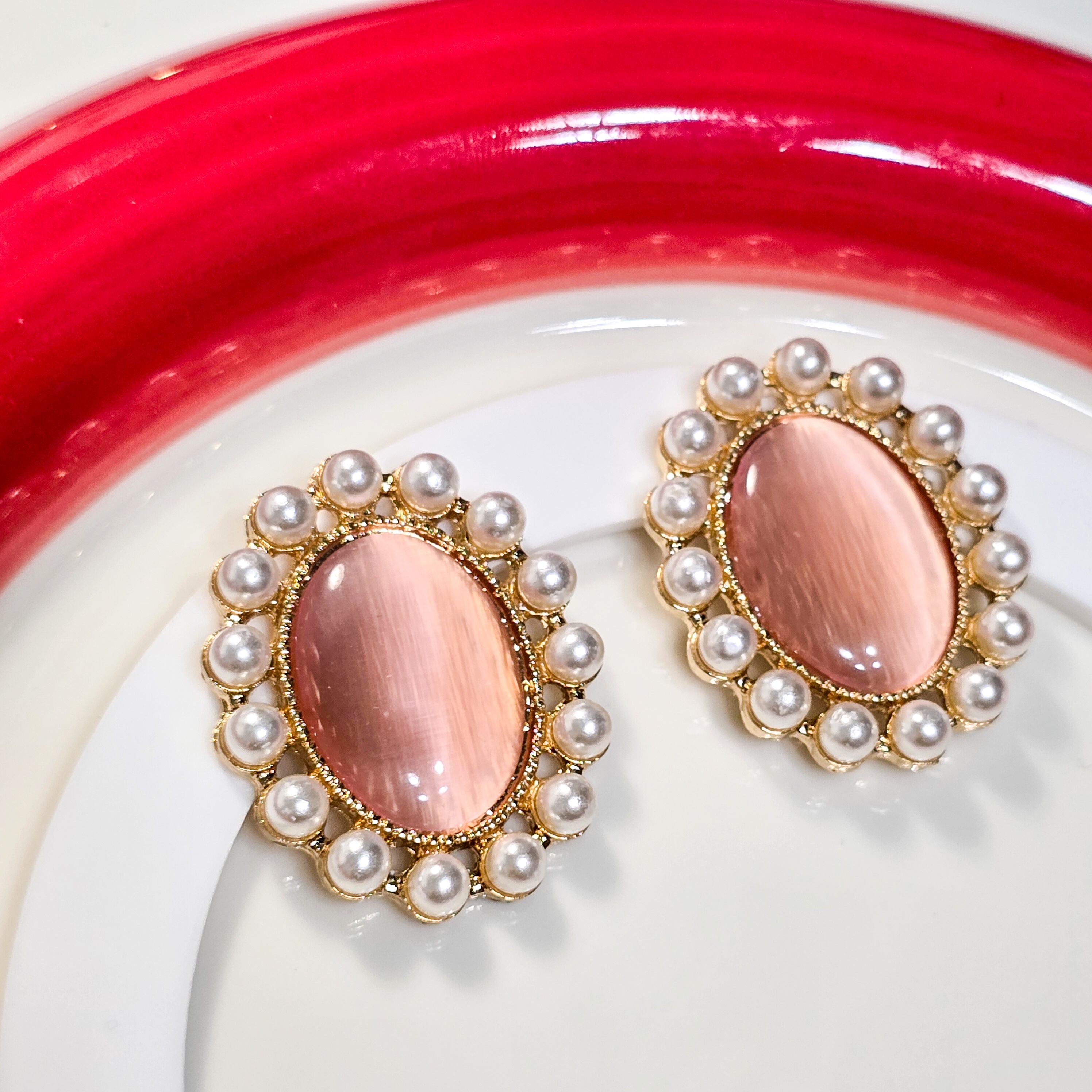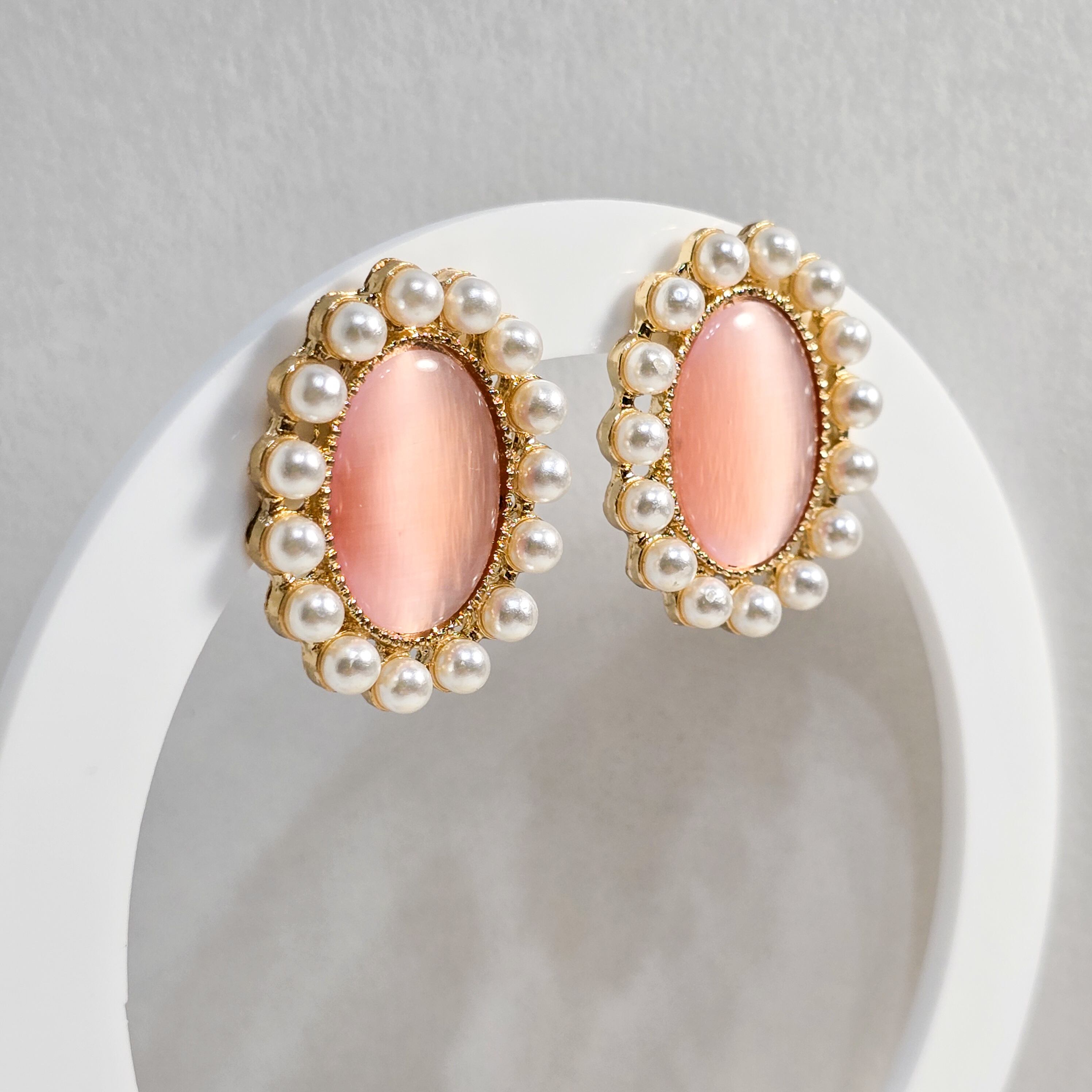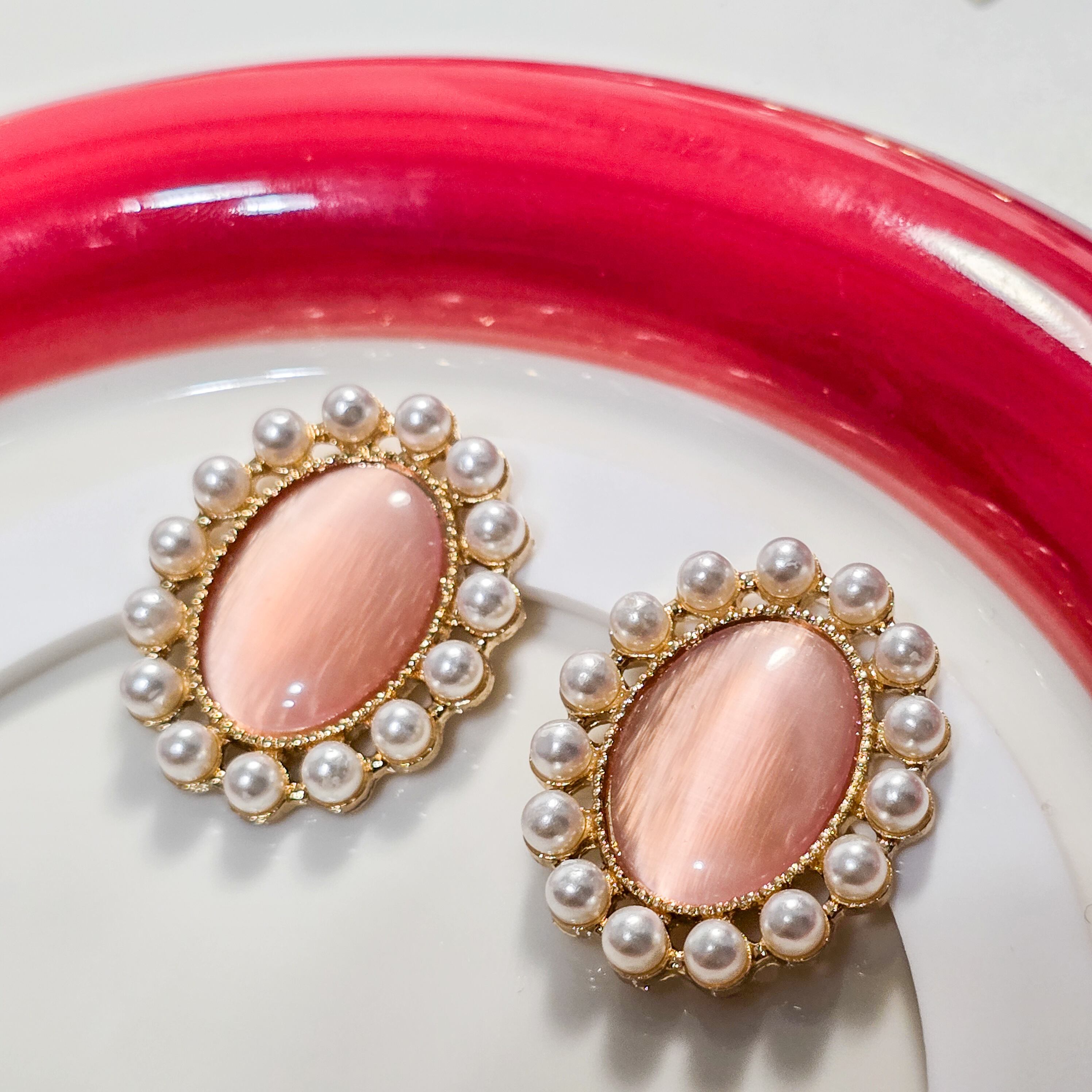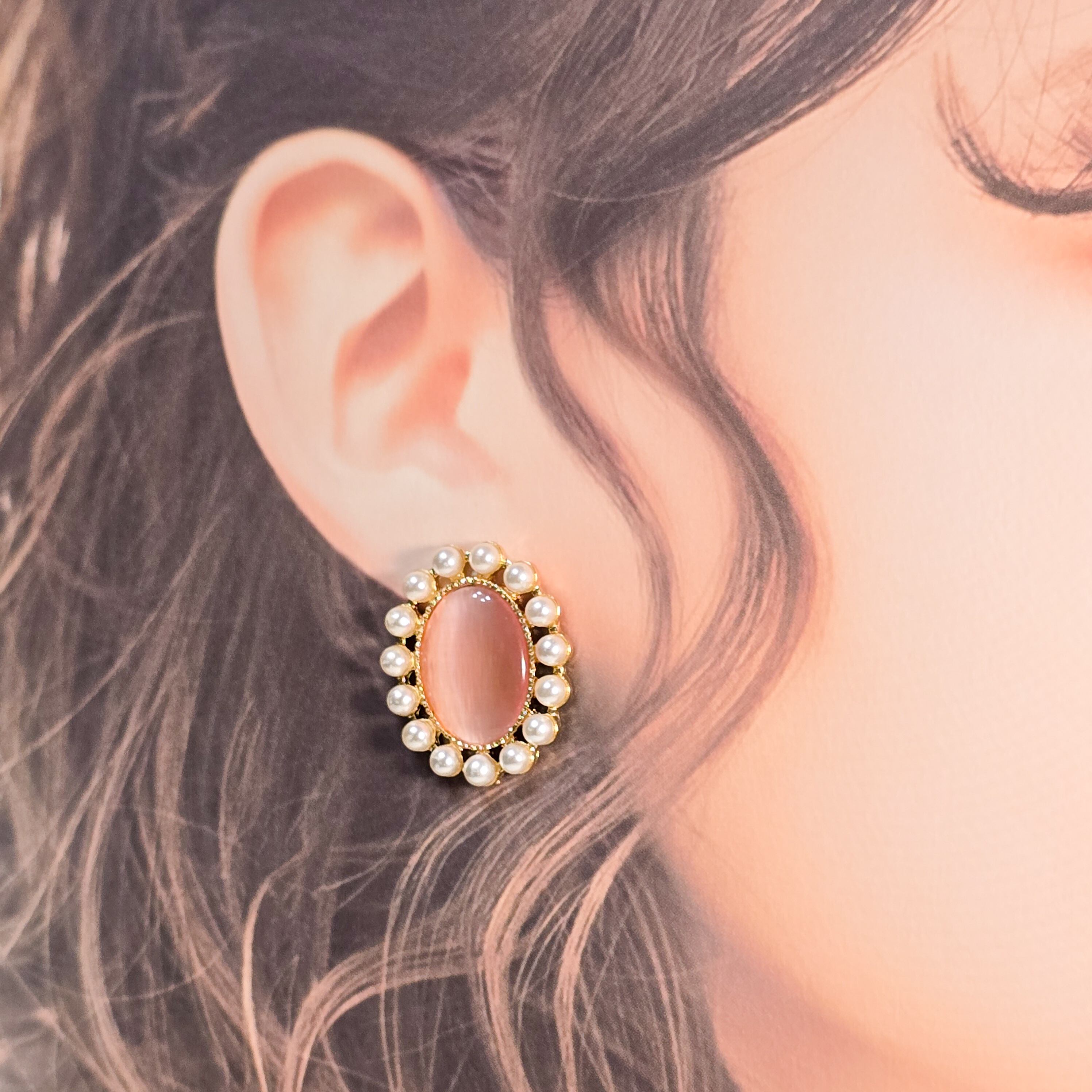 ⟬ キャッツアイ/パール付きカボション(ピンク)ピアス&イヤリング ⟭