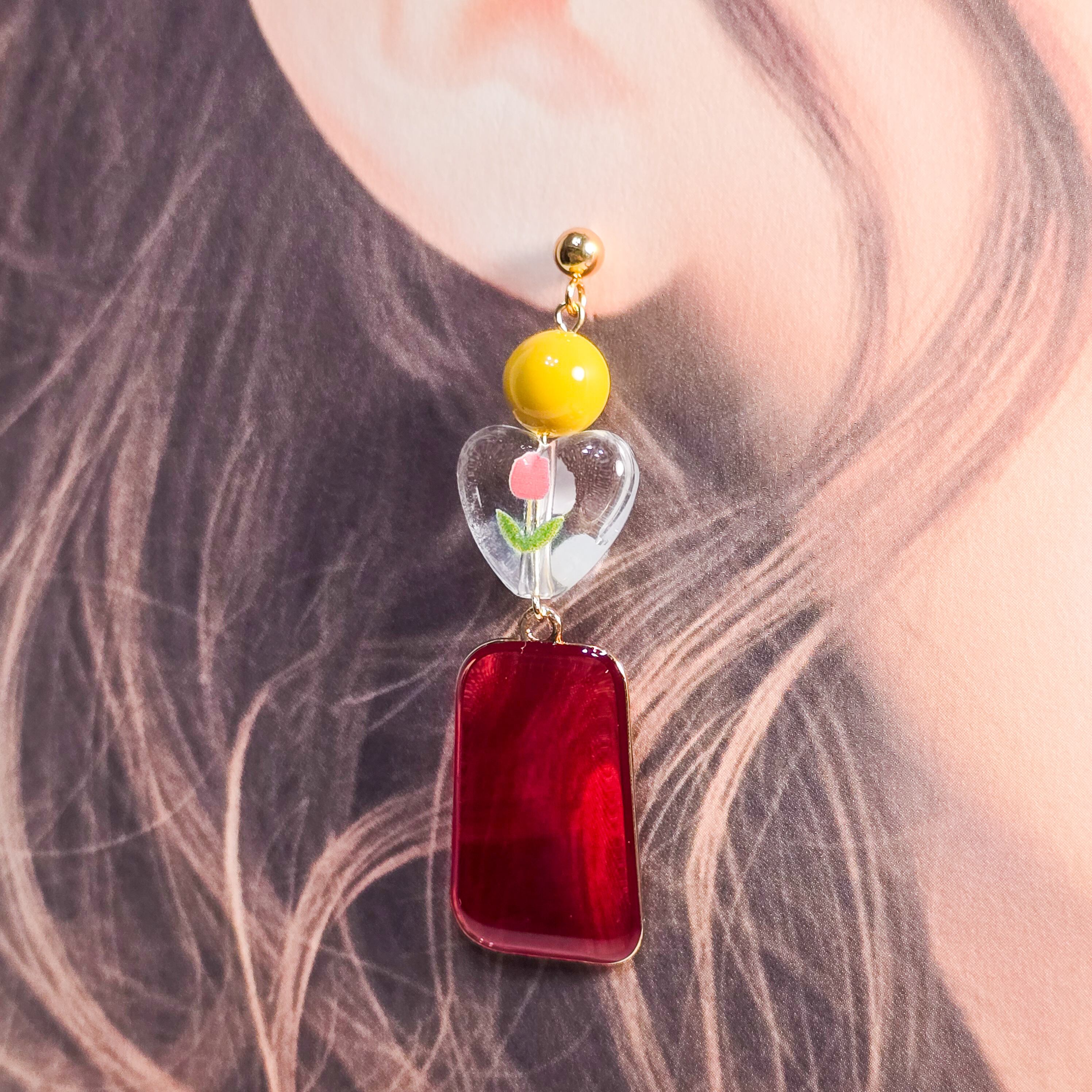 赤いモチーフとチューリップがチャーミングでレトロな雰囲気漂うアクセサリー❁