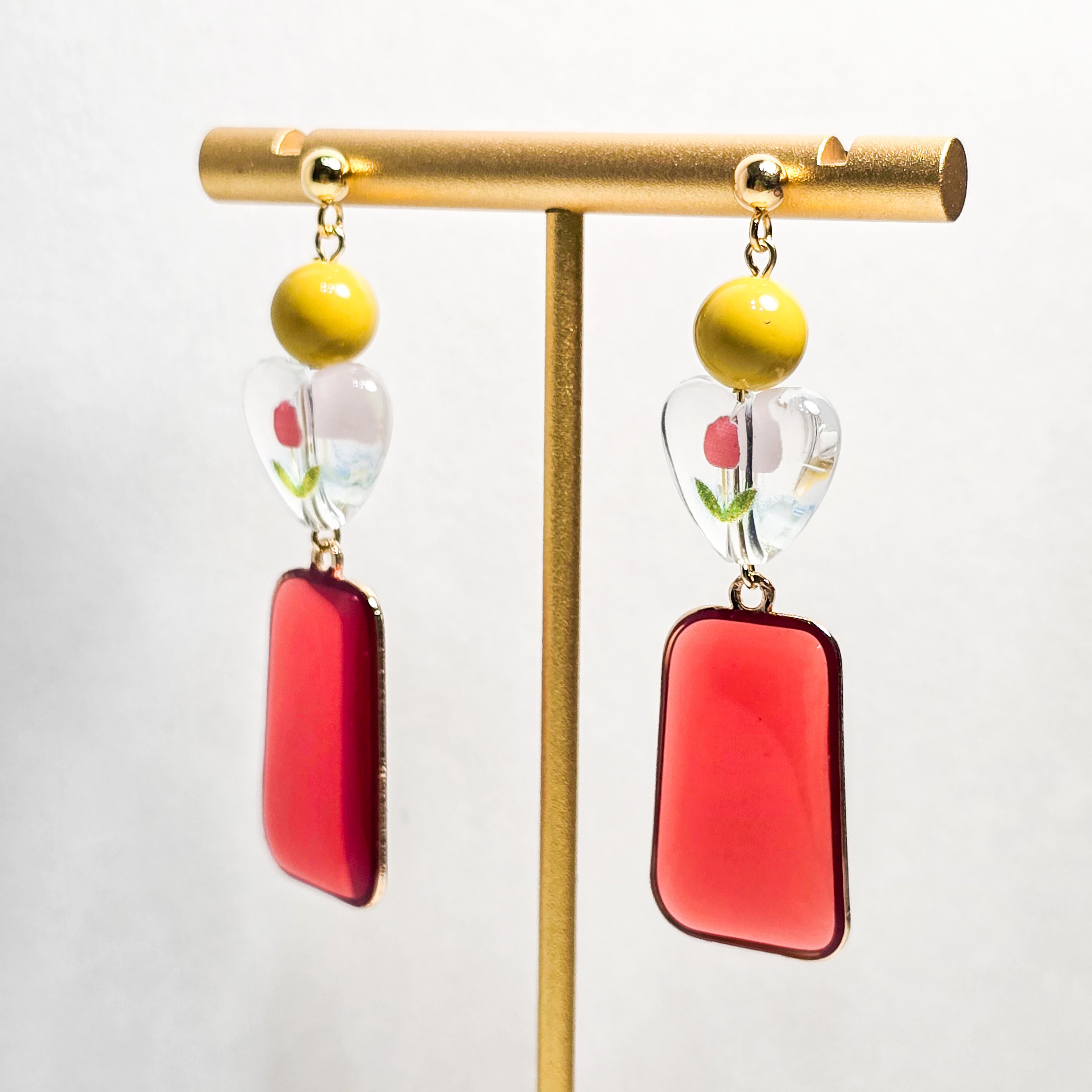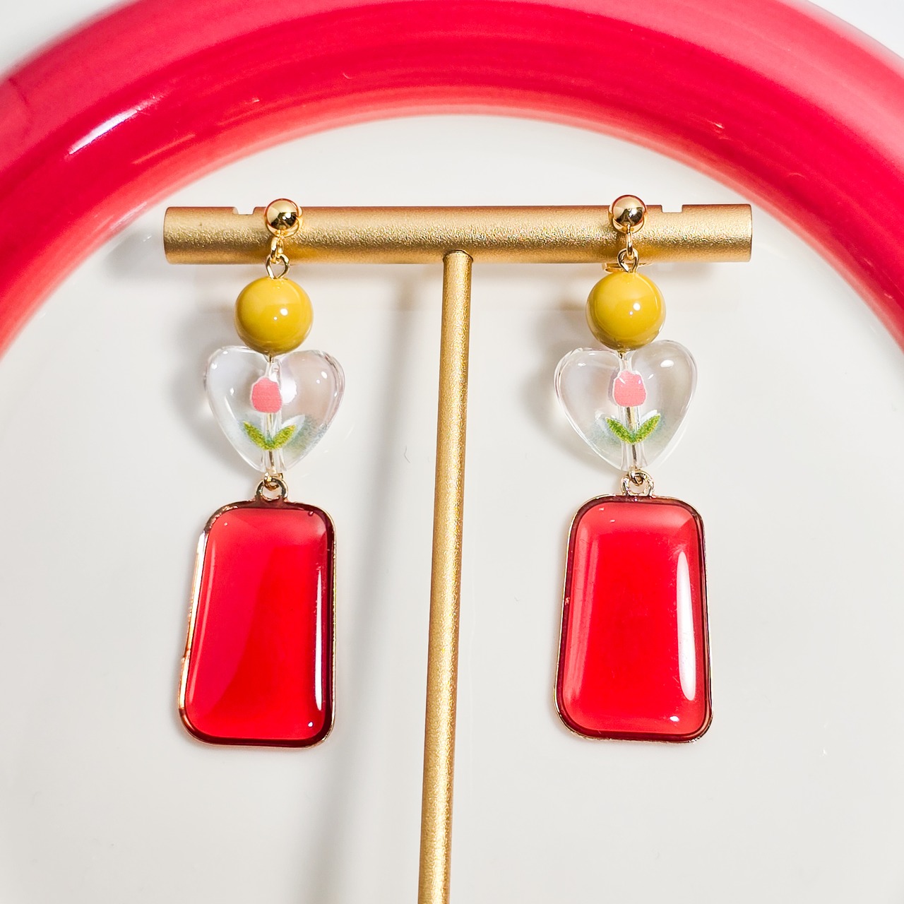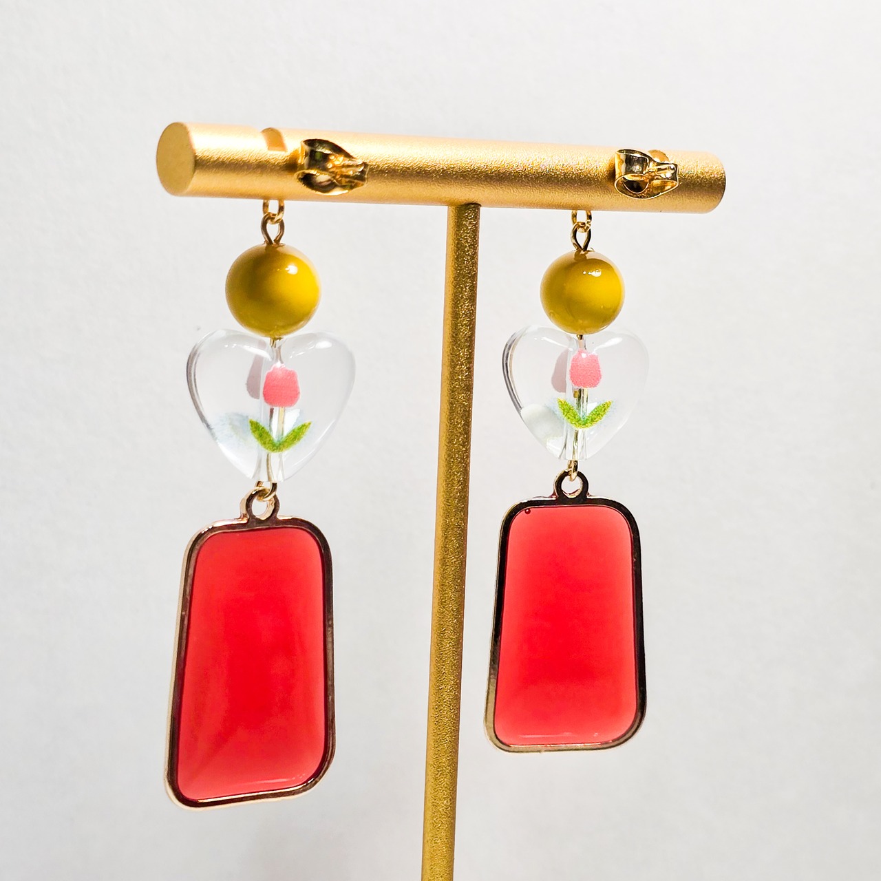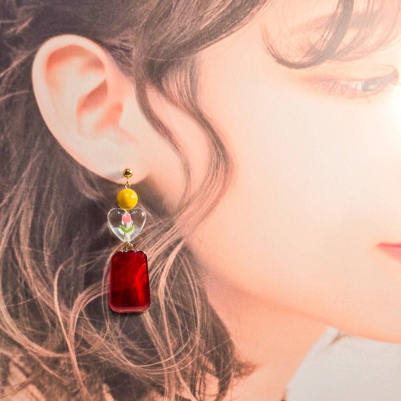 ⟬ 赤とチューリップのレトロ ピアス&イヤリング ⟭