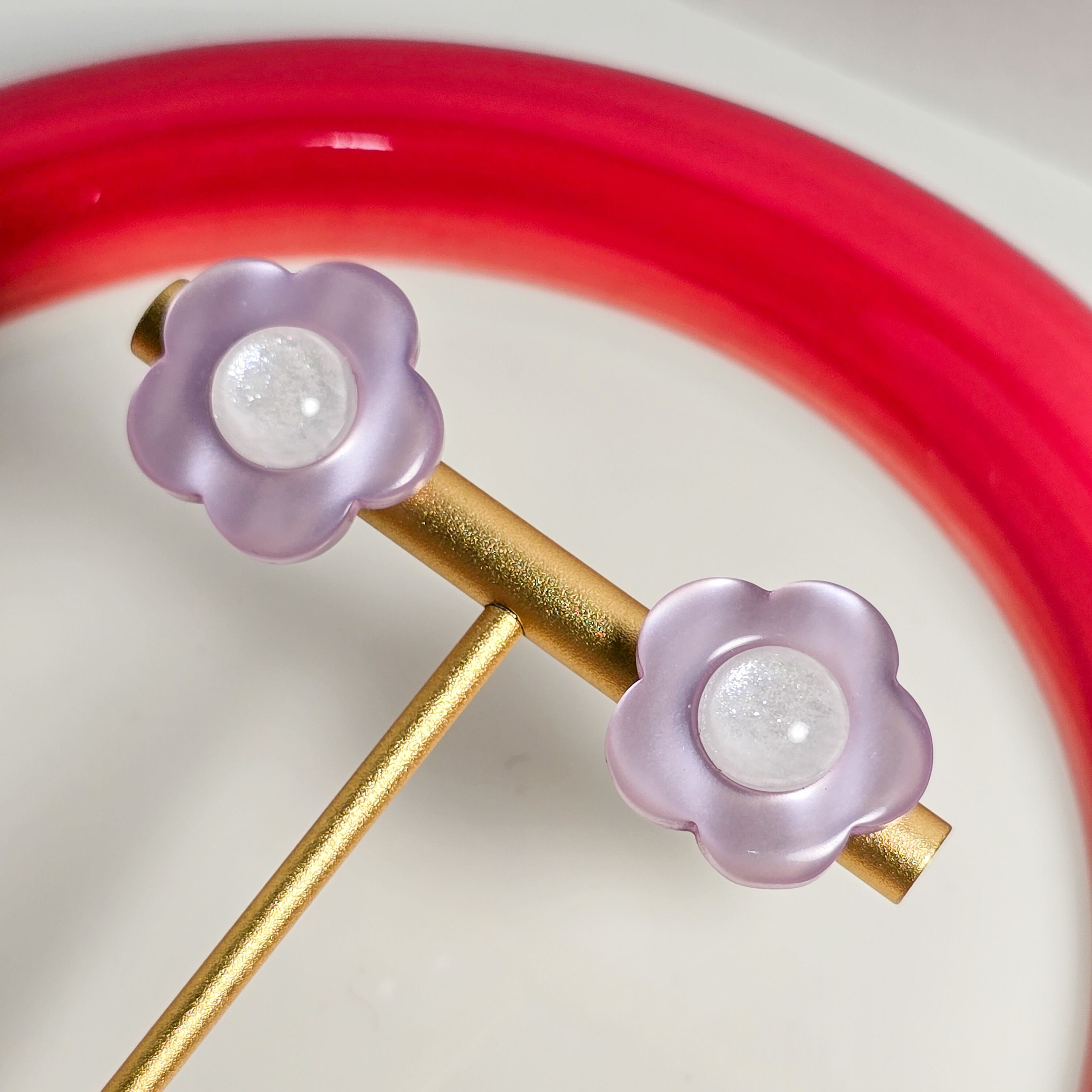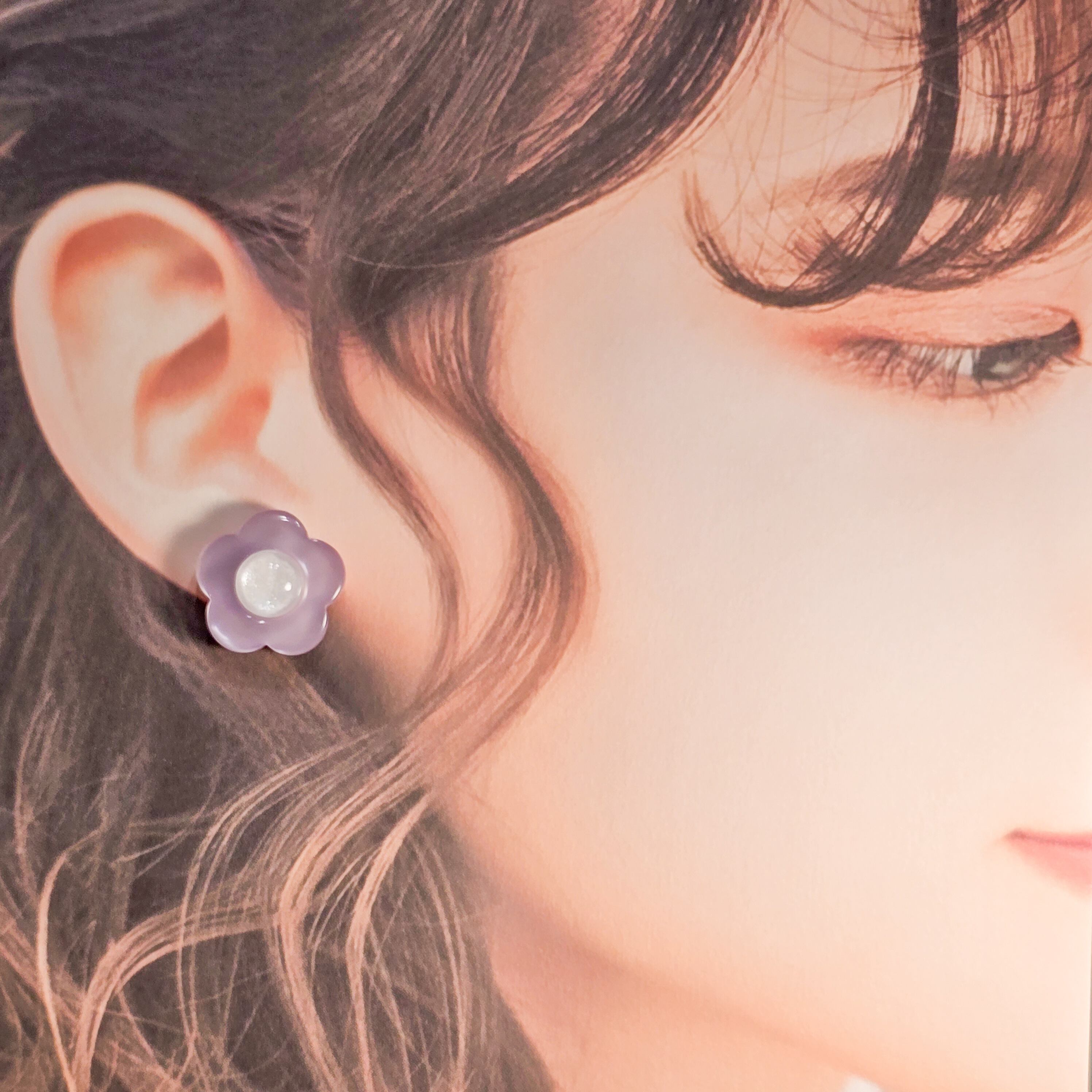No.144 パールのフラワー(パープル) ピアス&イヤリング