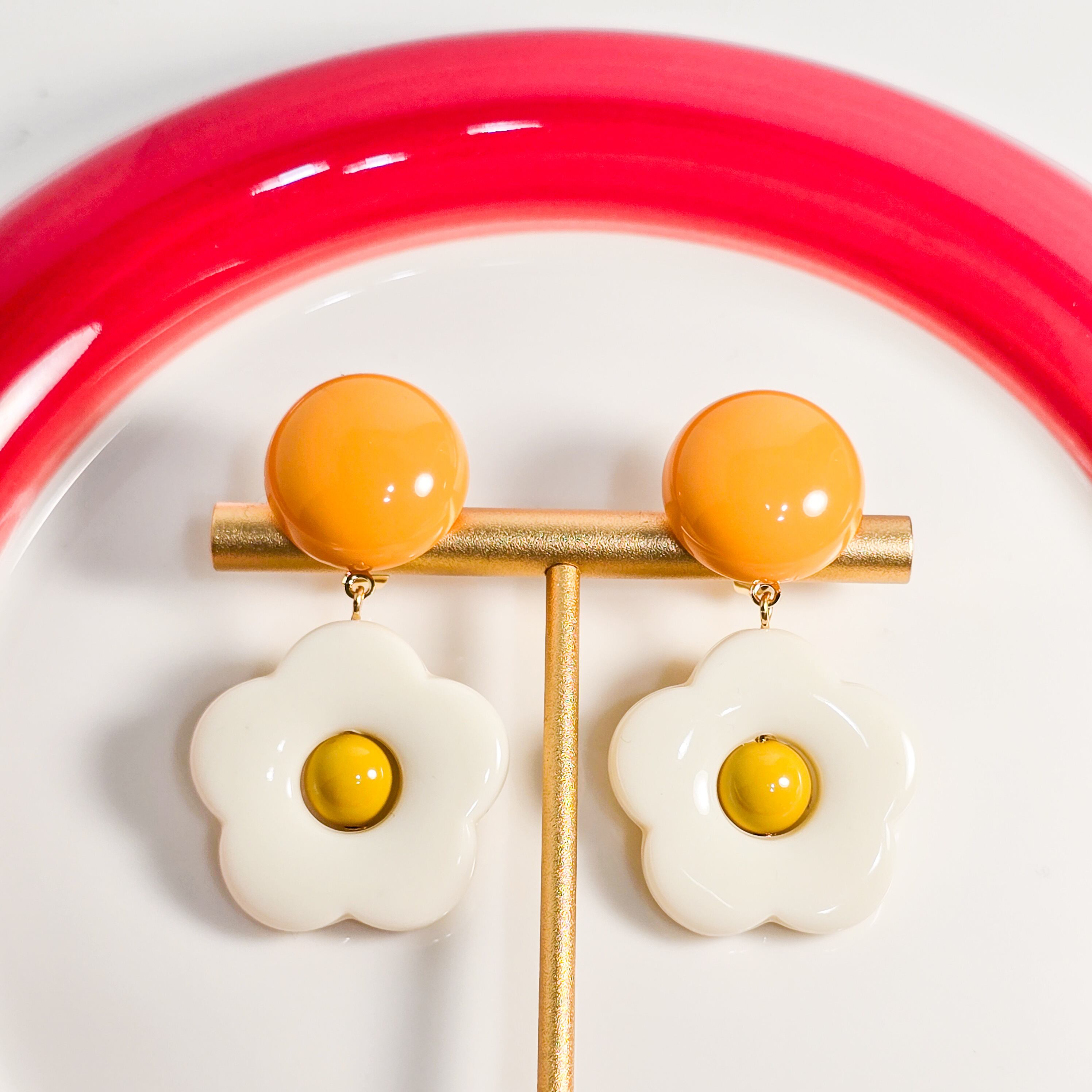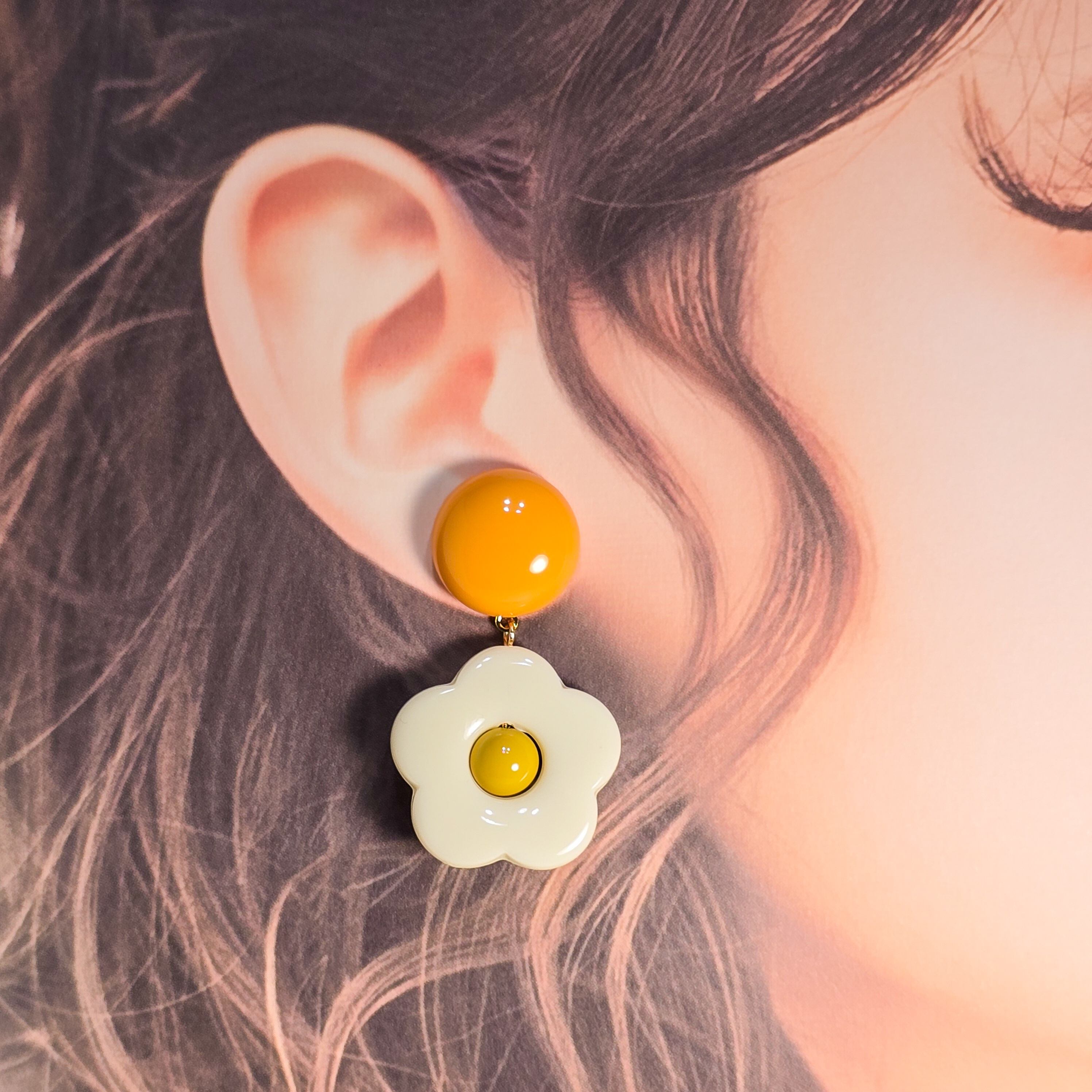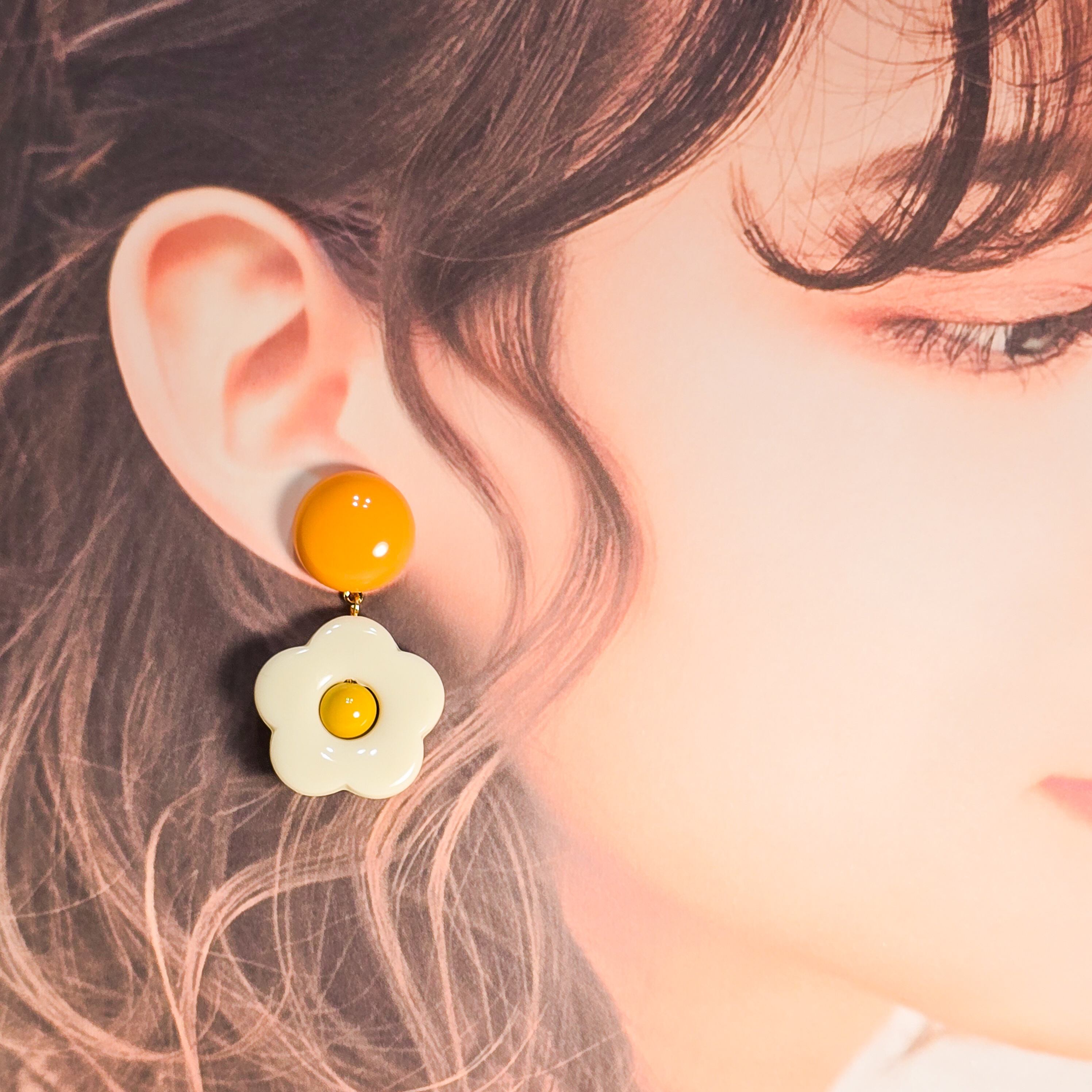 ⟬ レトロフラワー(イエロー×ホワイト)ピアス&イヤリング ⟭
