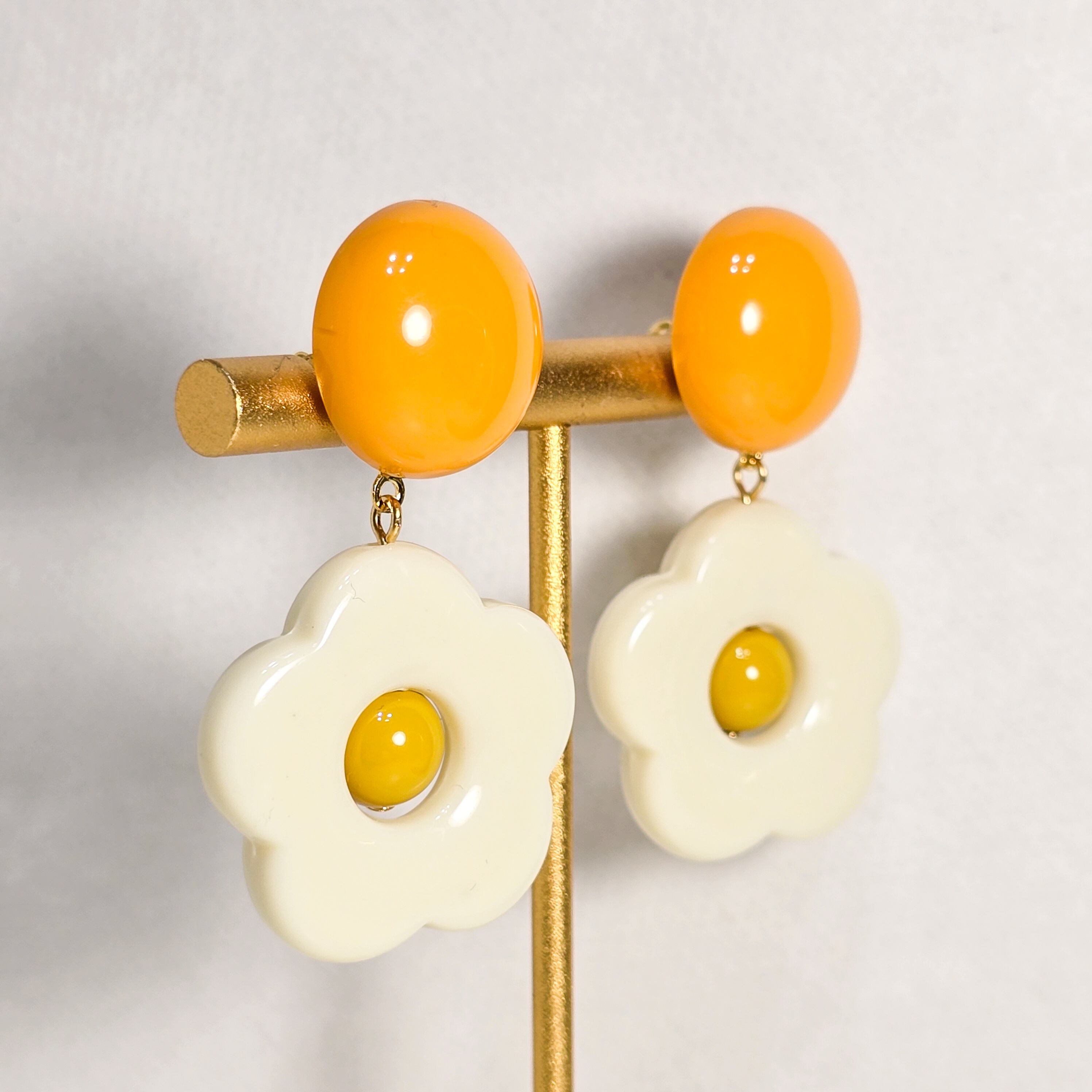 No.146 レトロフラワー(イエロー×ホワイト)ピアス&イヤリング