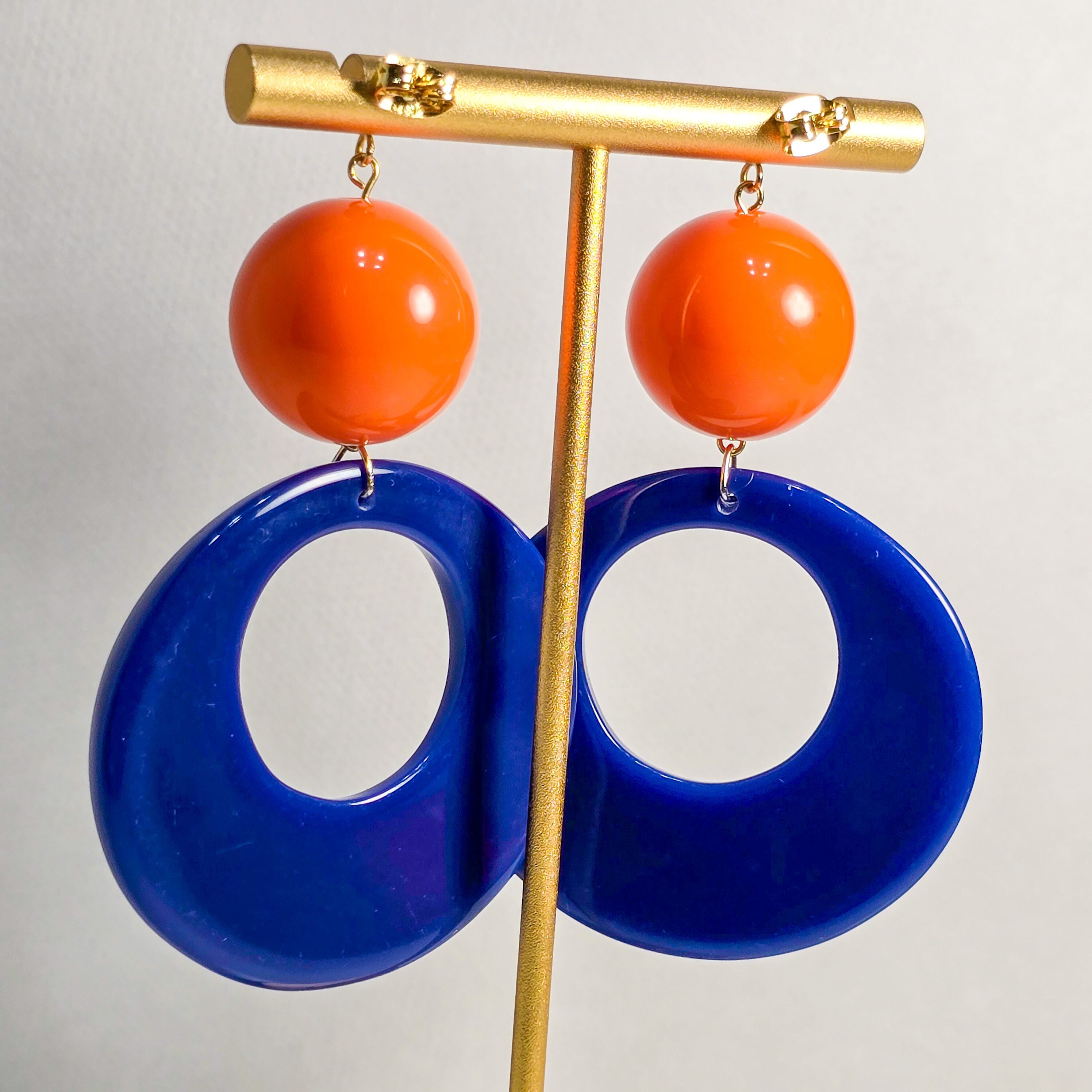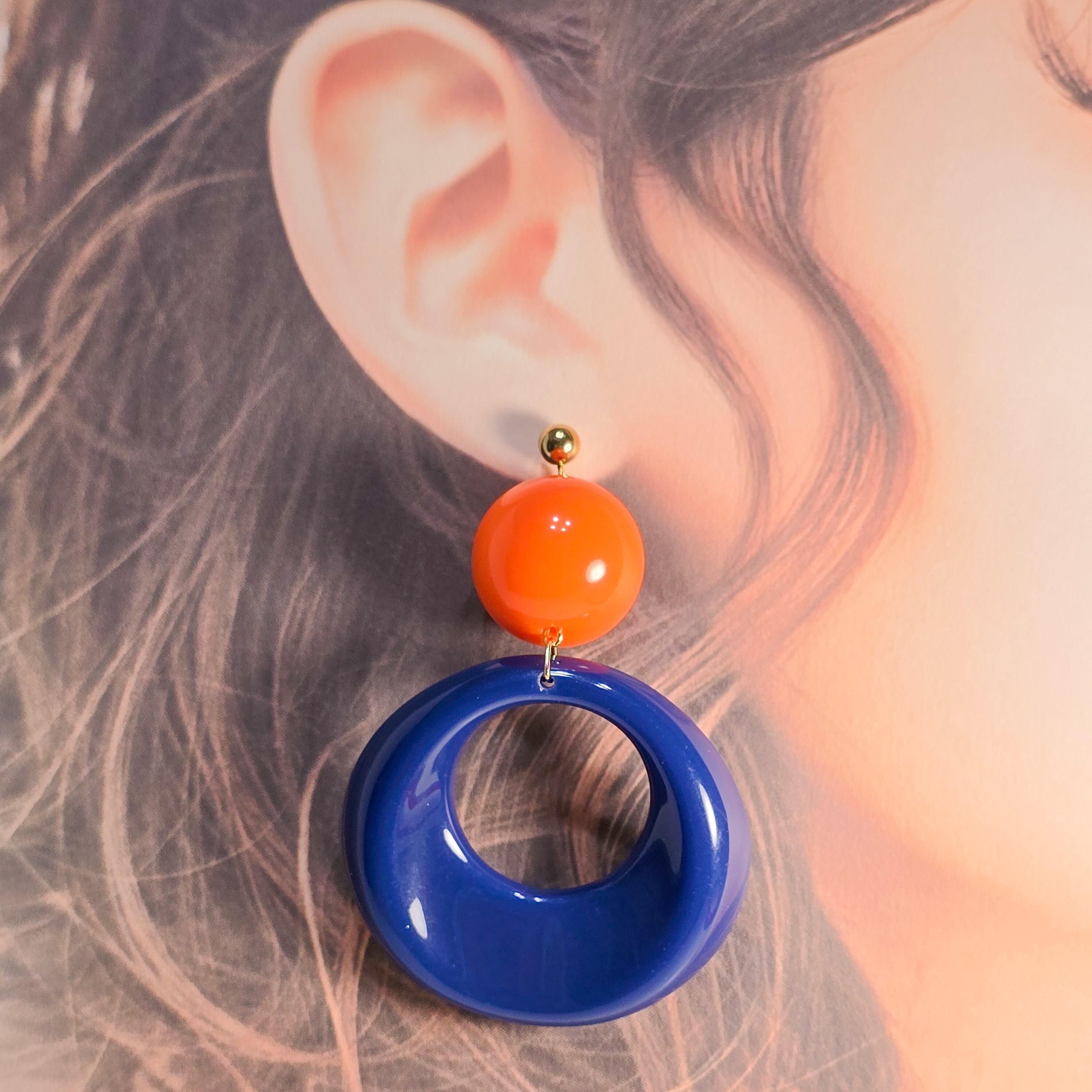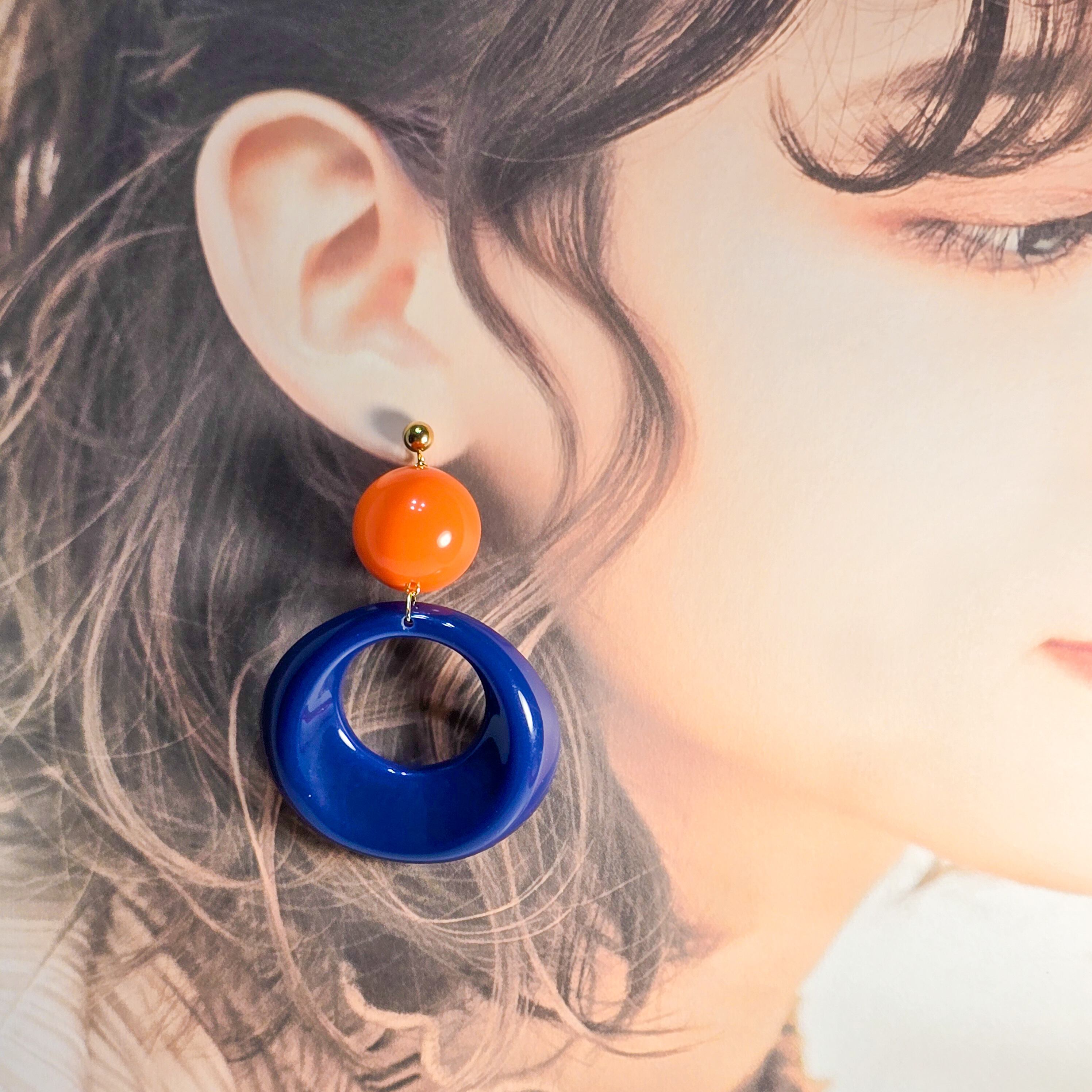 ⟬ 大ぶりレトロフープ(オレンジ×ブルー)ピアス&イヤリング ⟭