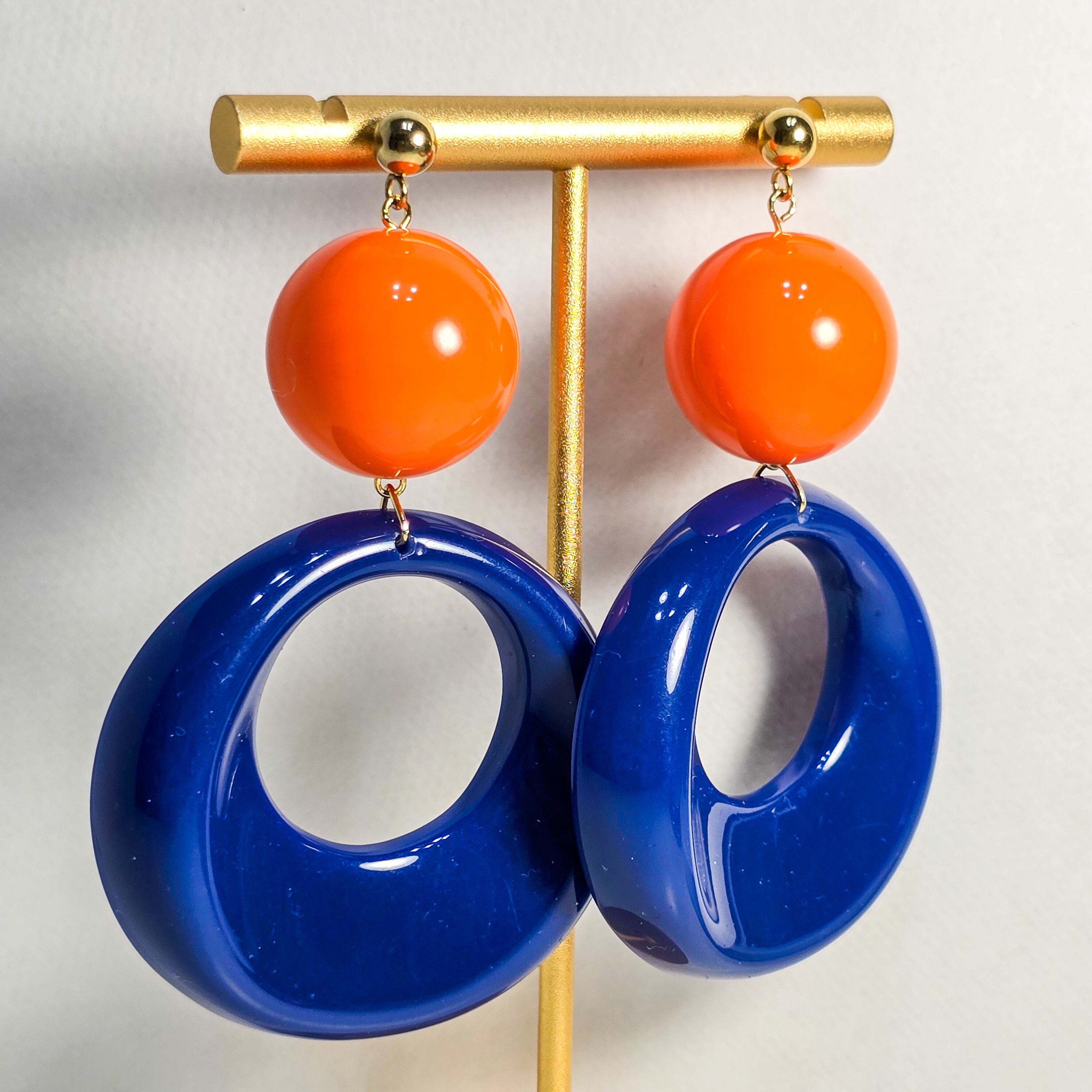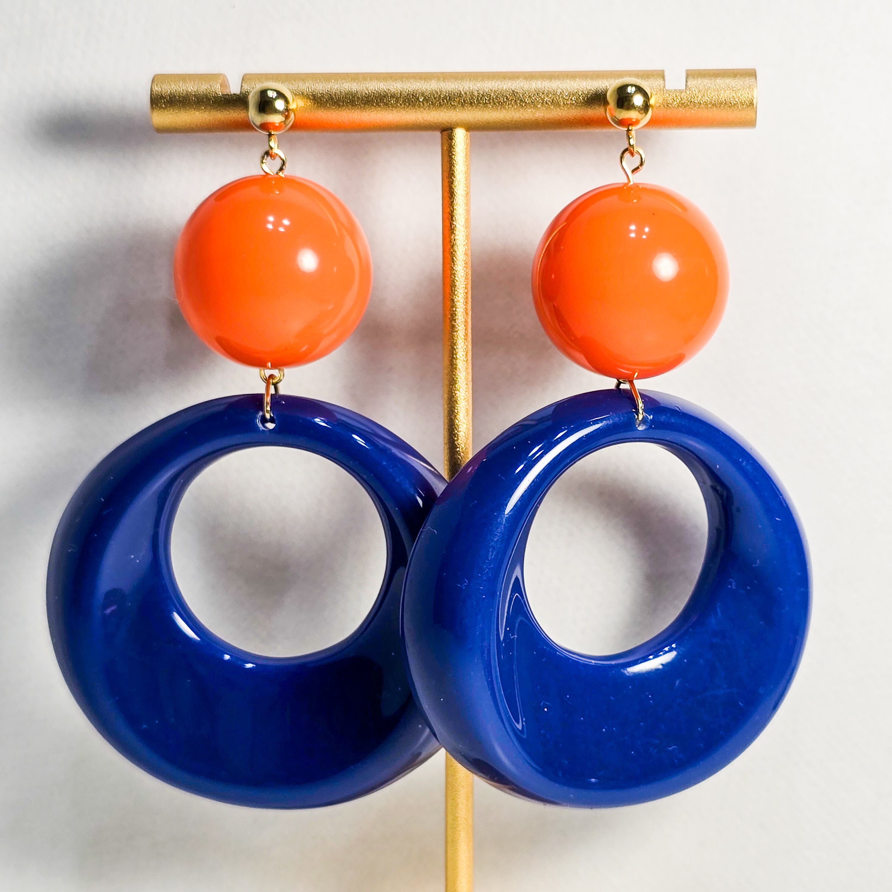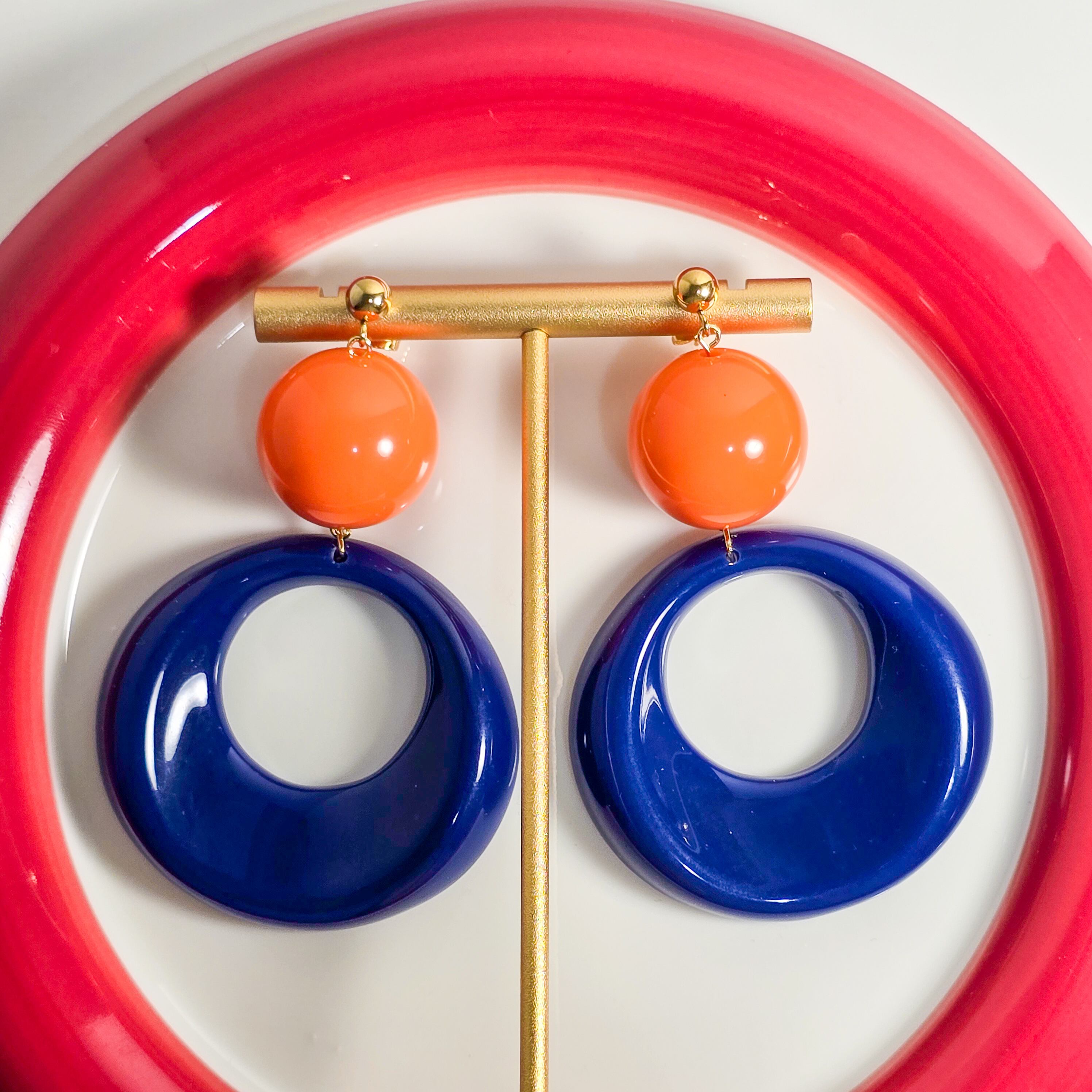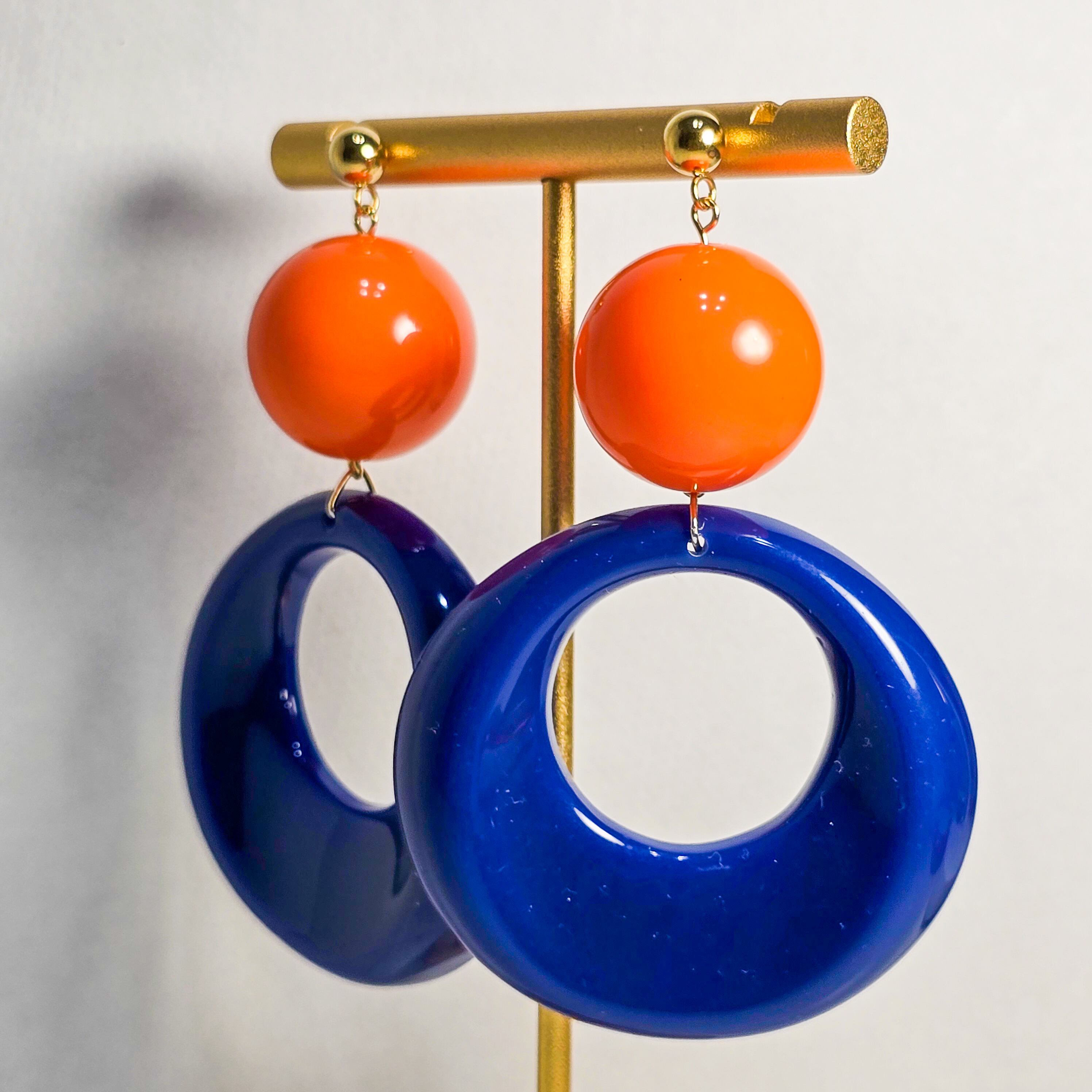 ⟬ 大ぶりレトロフープ(オレンジ×ブルー)ピアス&イヤリング ⟭