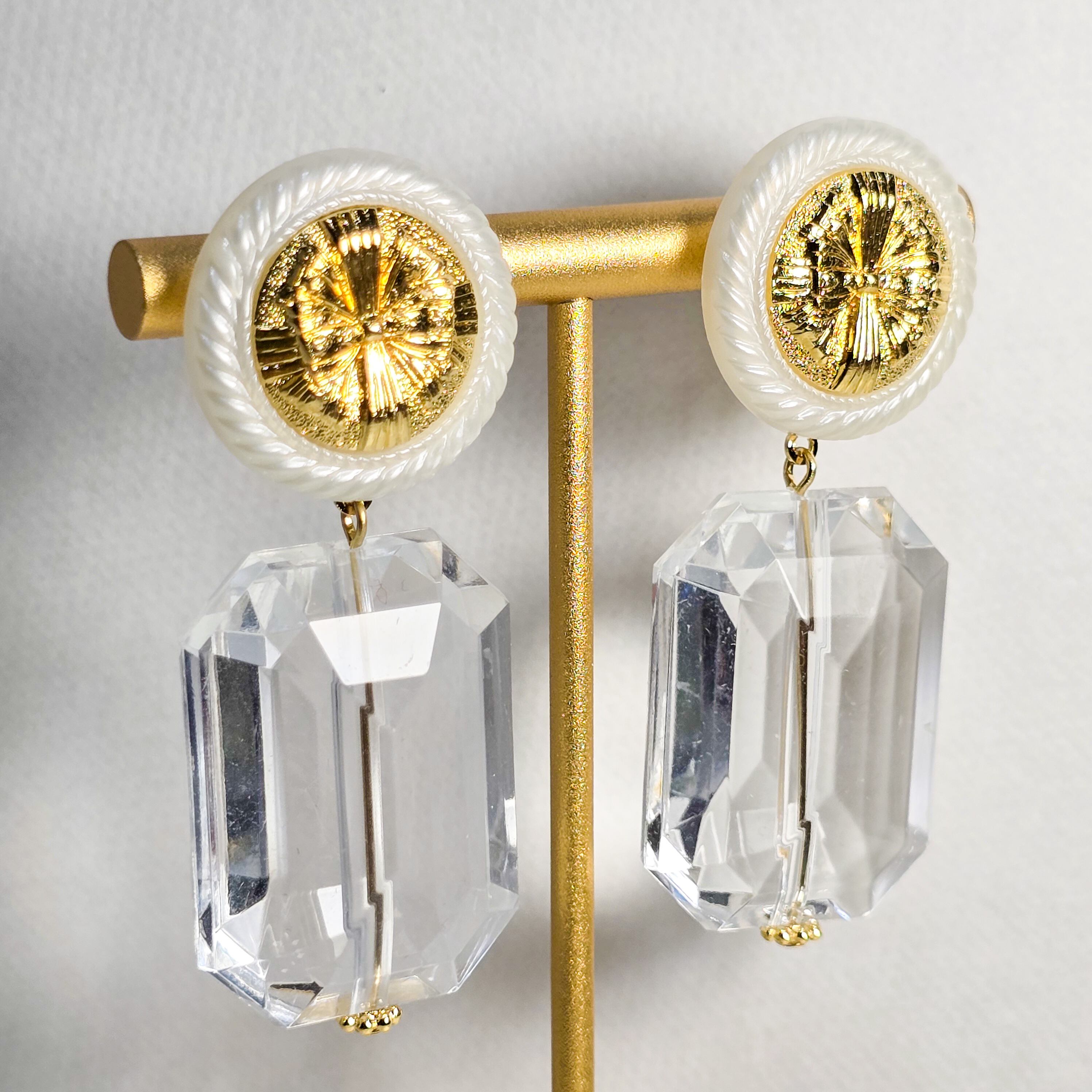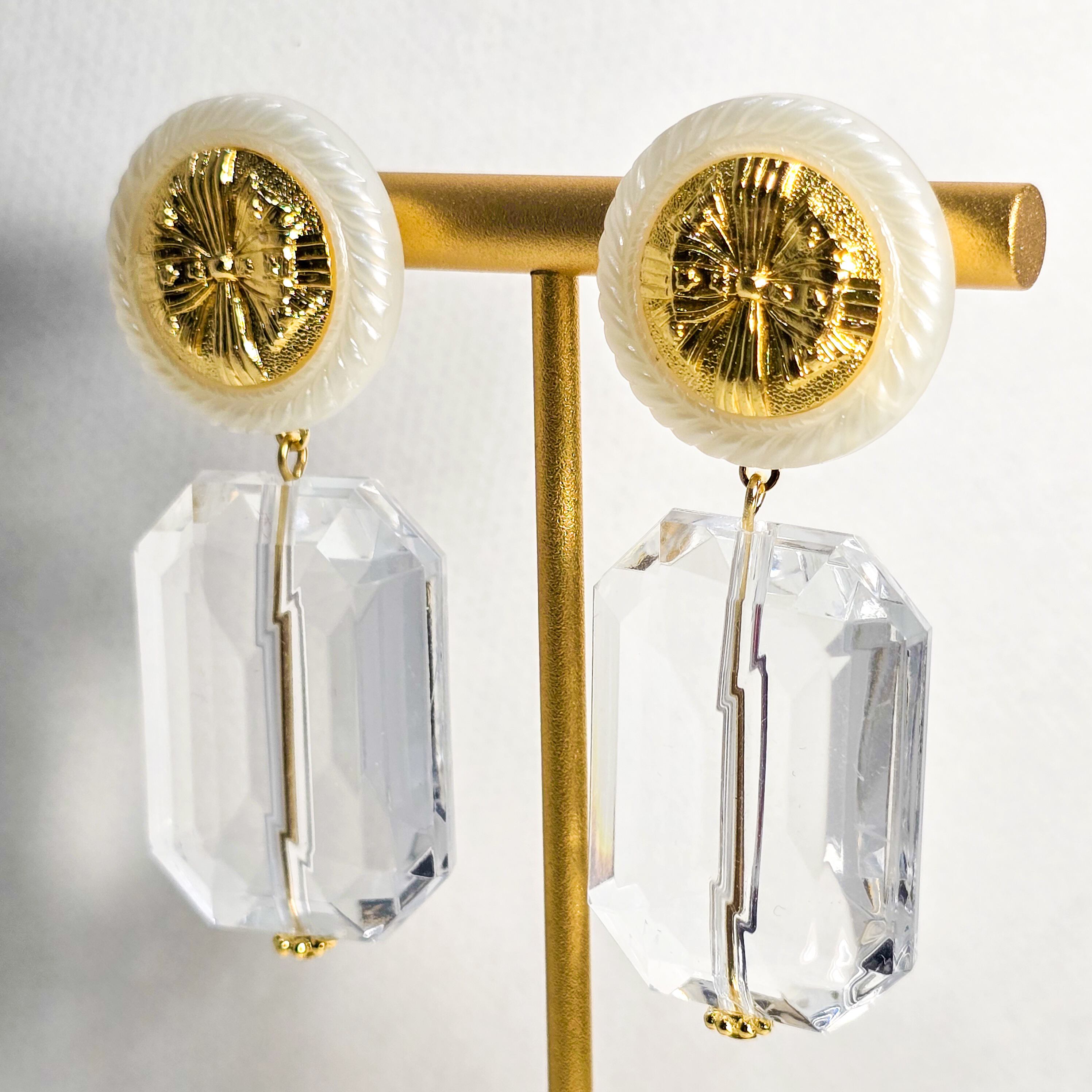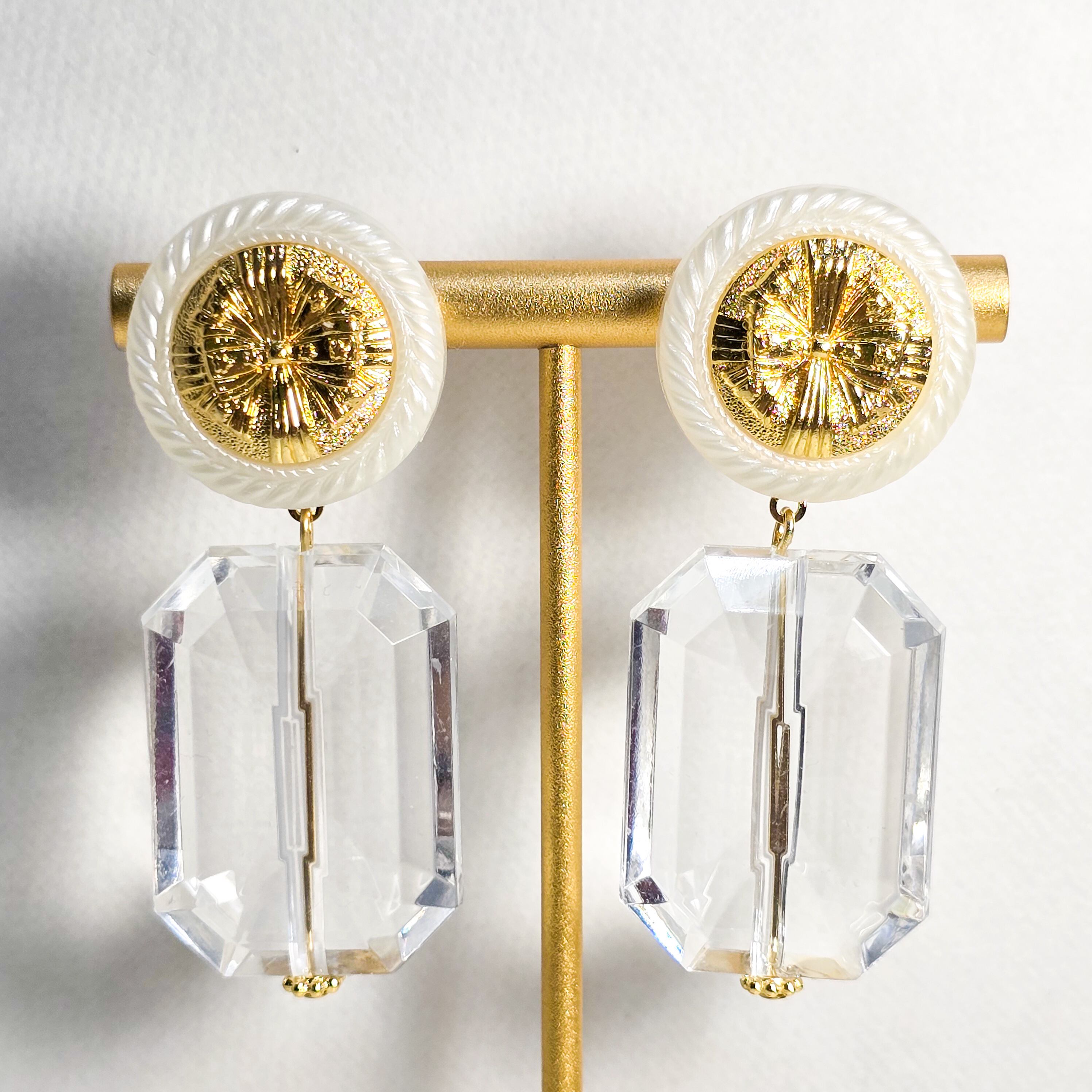 No.165 ヴィンテージレトロボタンとガラスの多面カットの大ぶりピアス&イヤリング(1点限り)