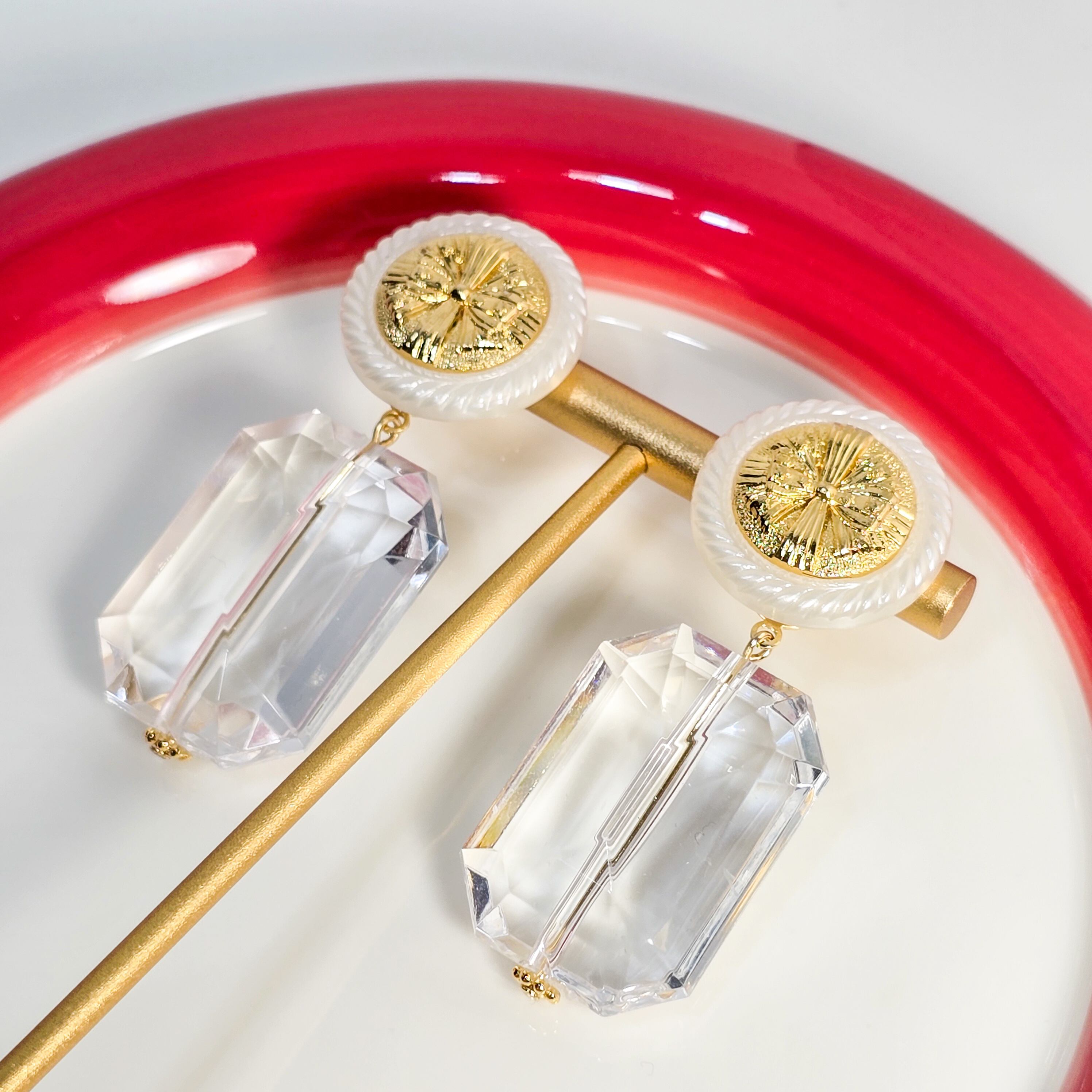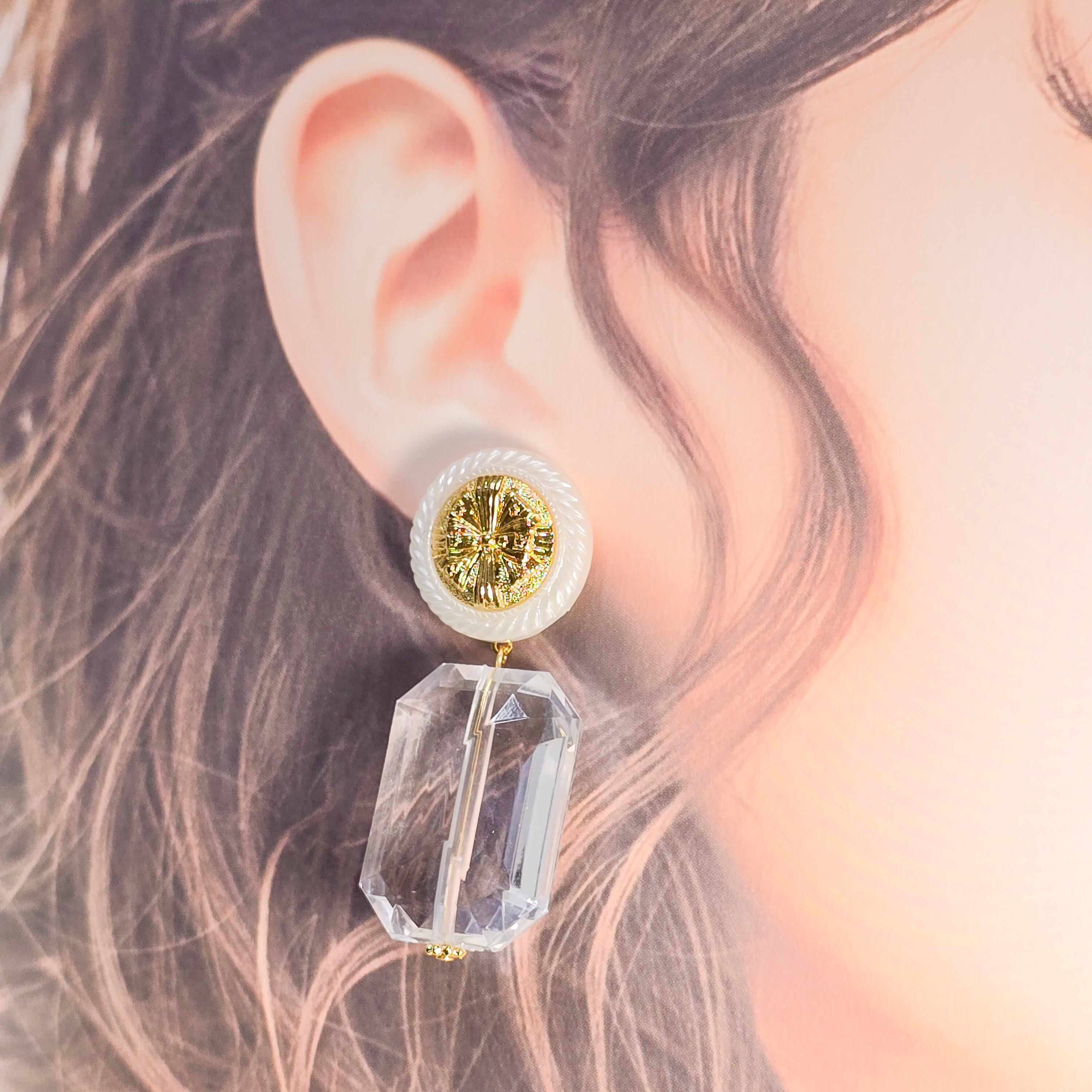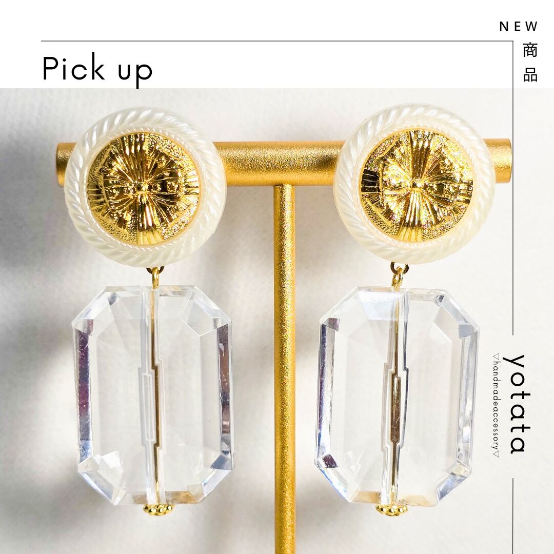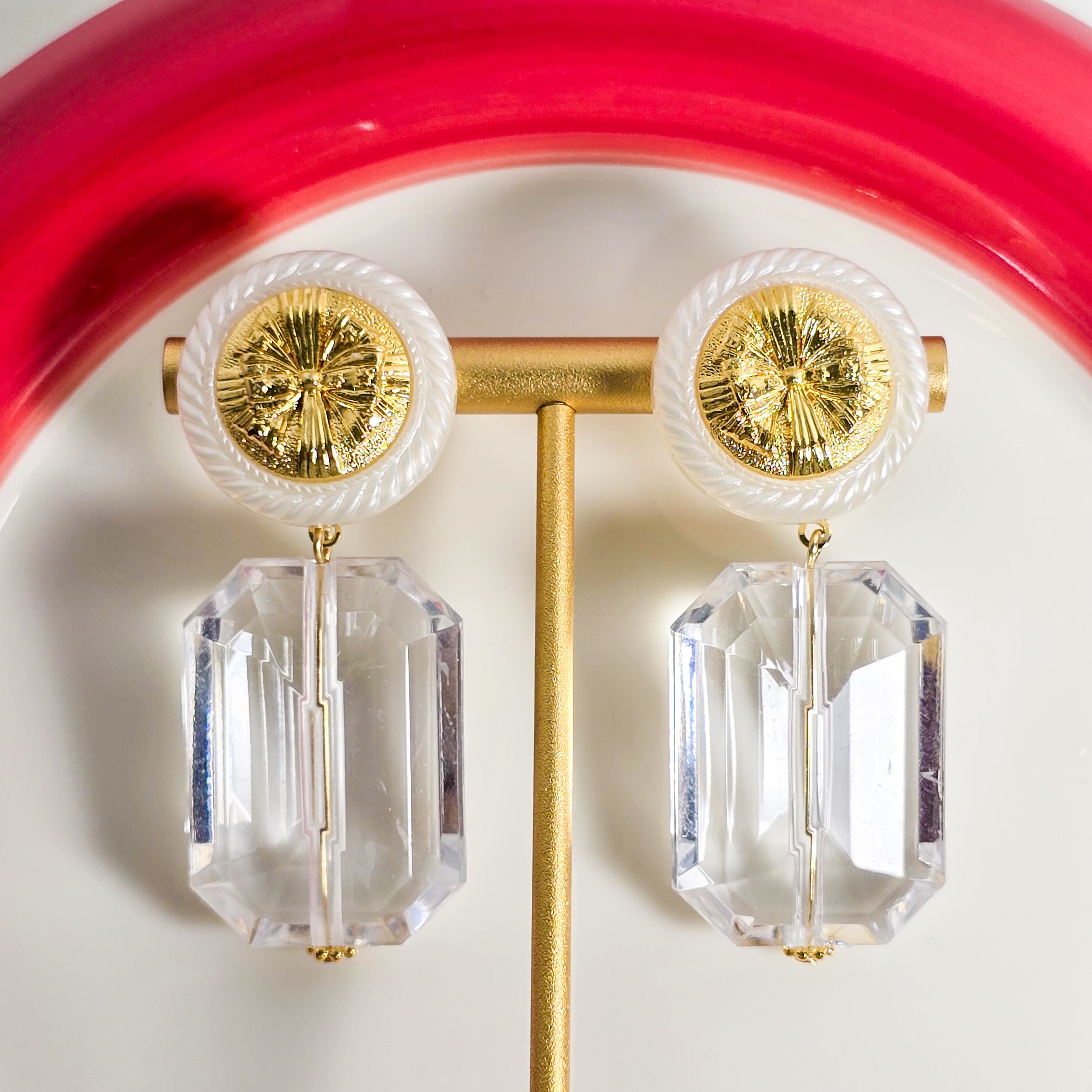 No.165 ヴィンテージレトロボタンとガラスの多面カットの大ぶりピアス&イヤリング(1点限り)