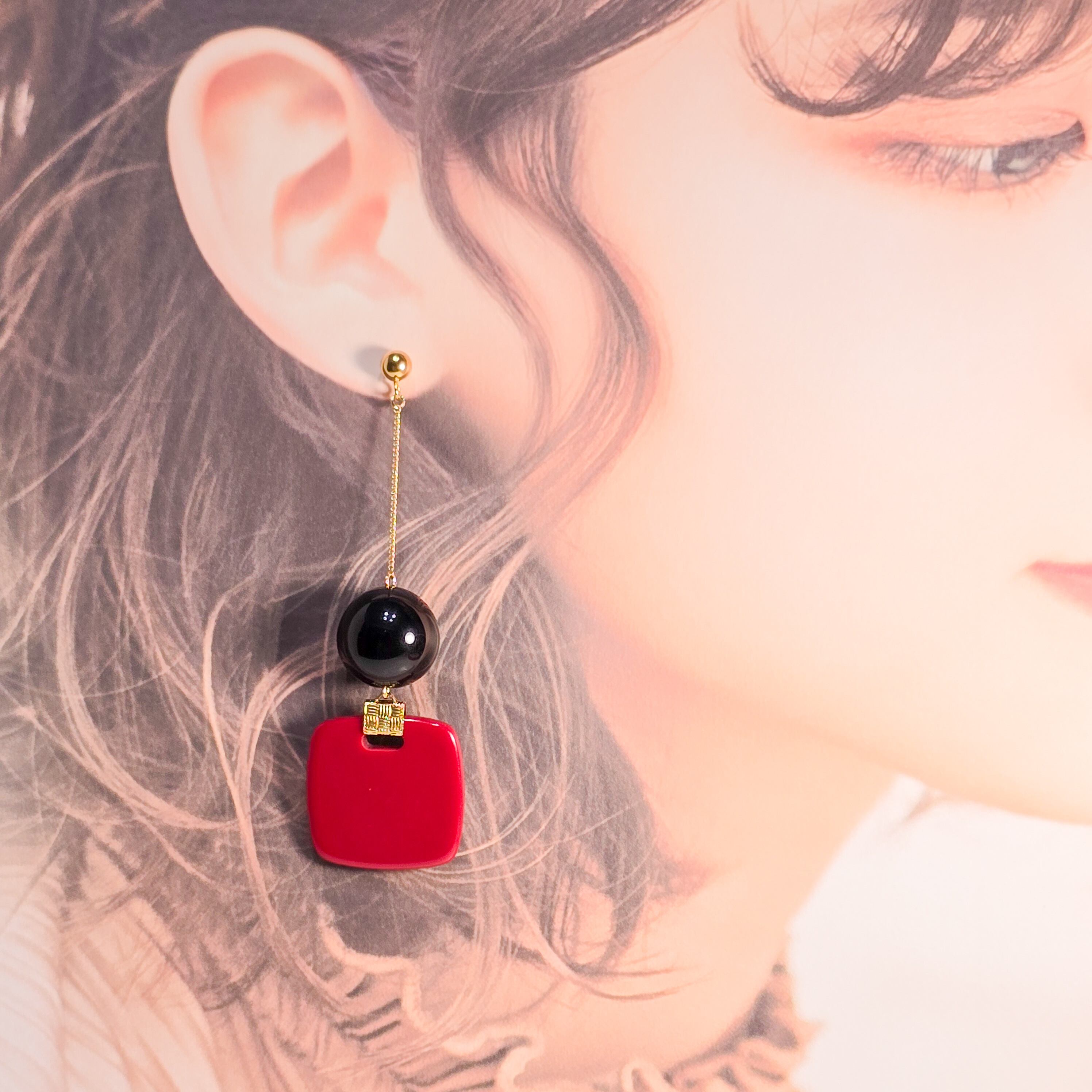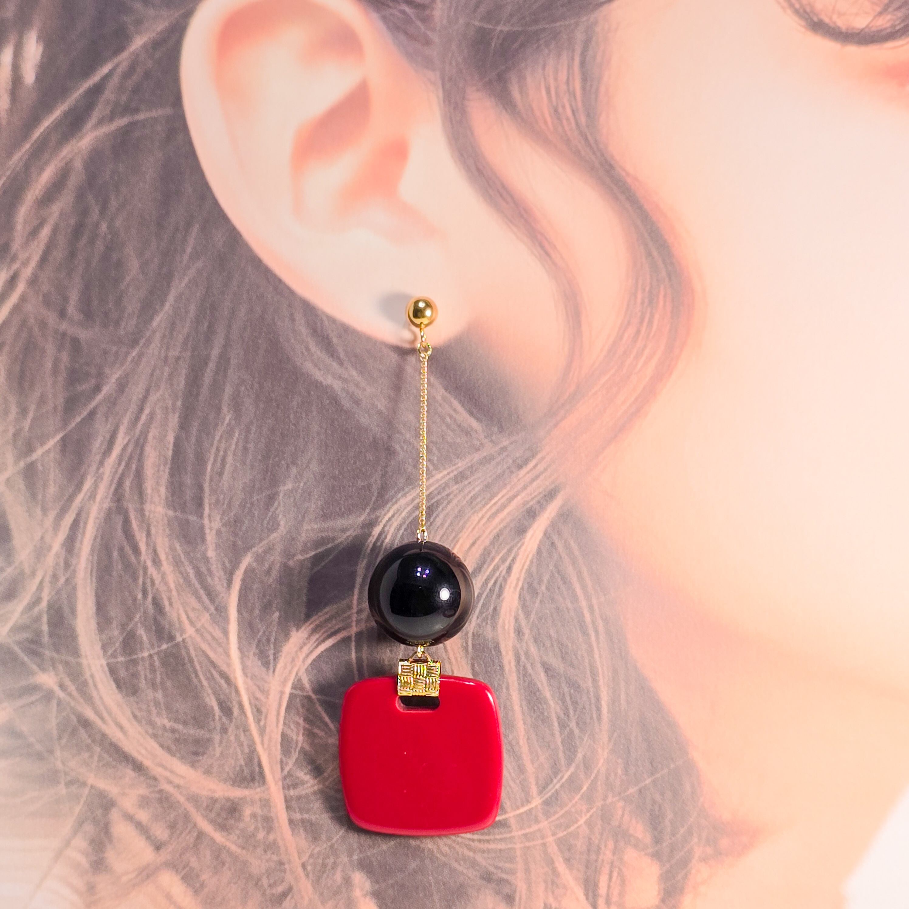◯素材:真鍮/アクリル/天然石(ブラックオニキス)