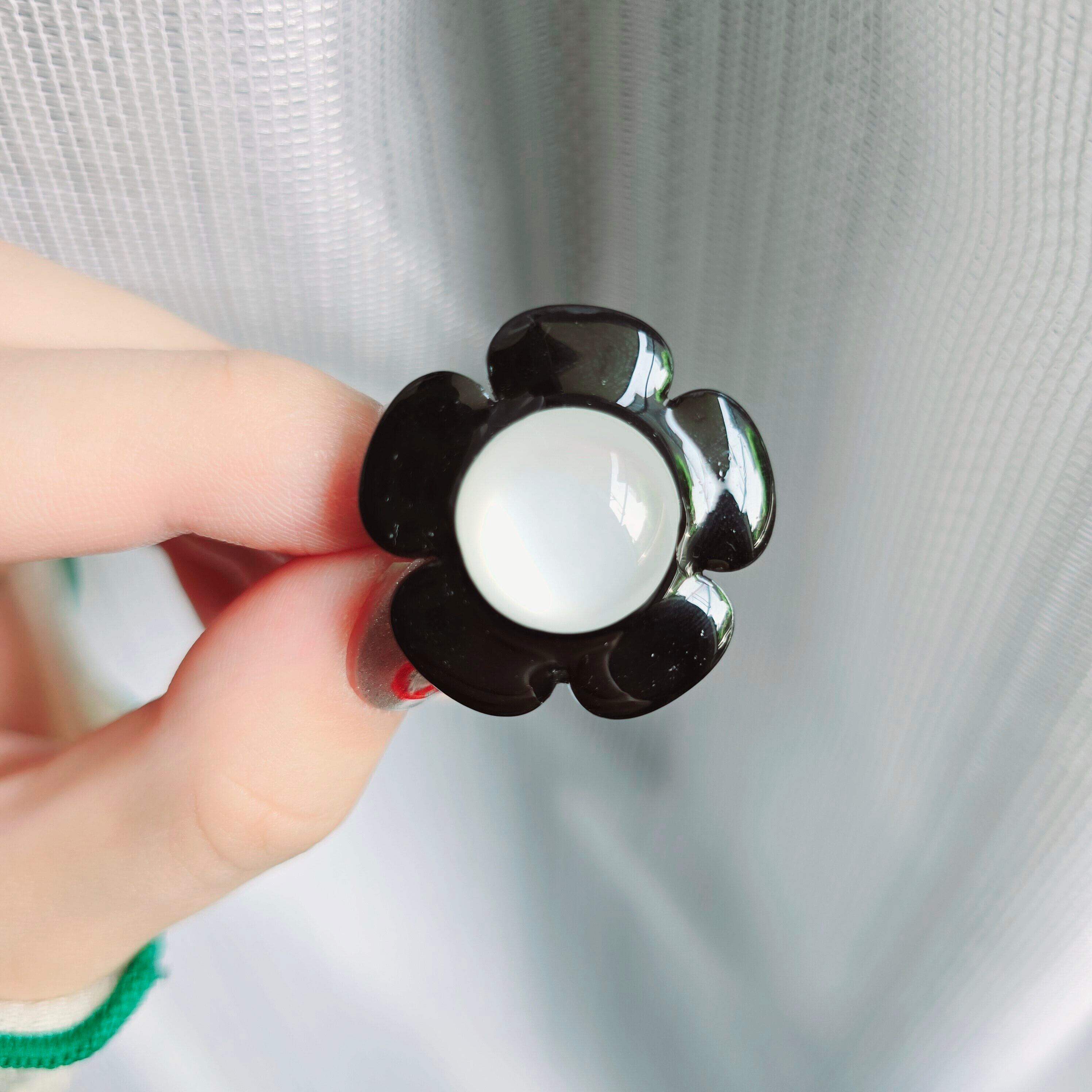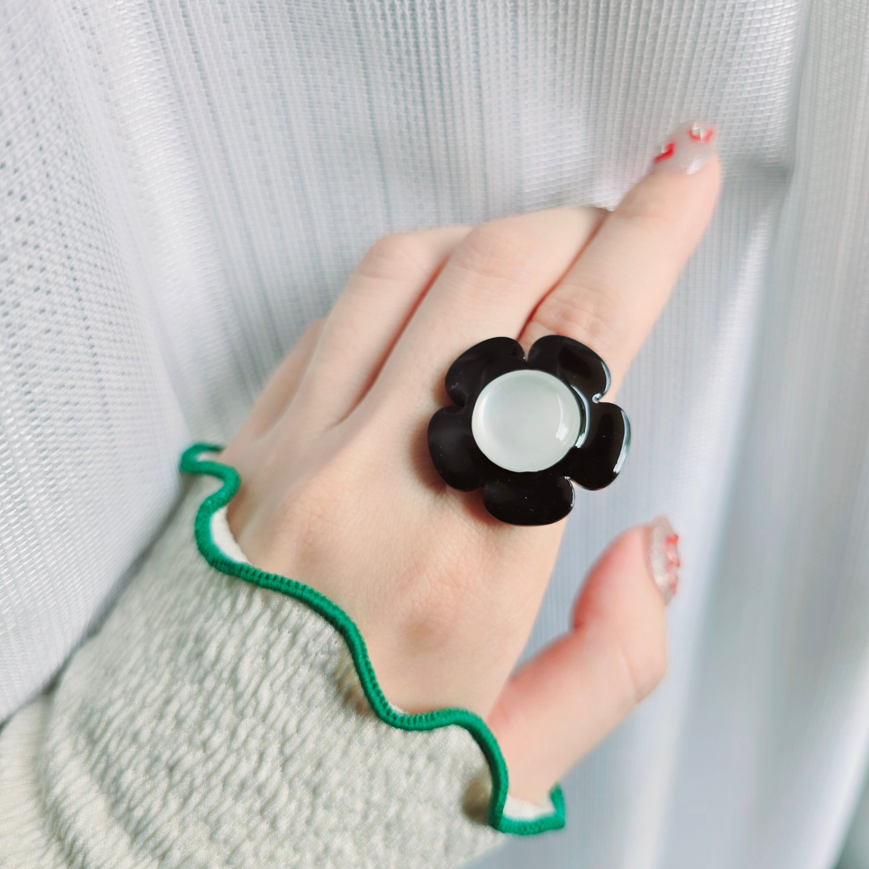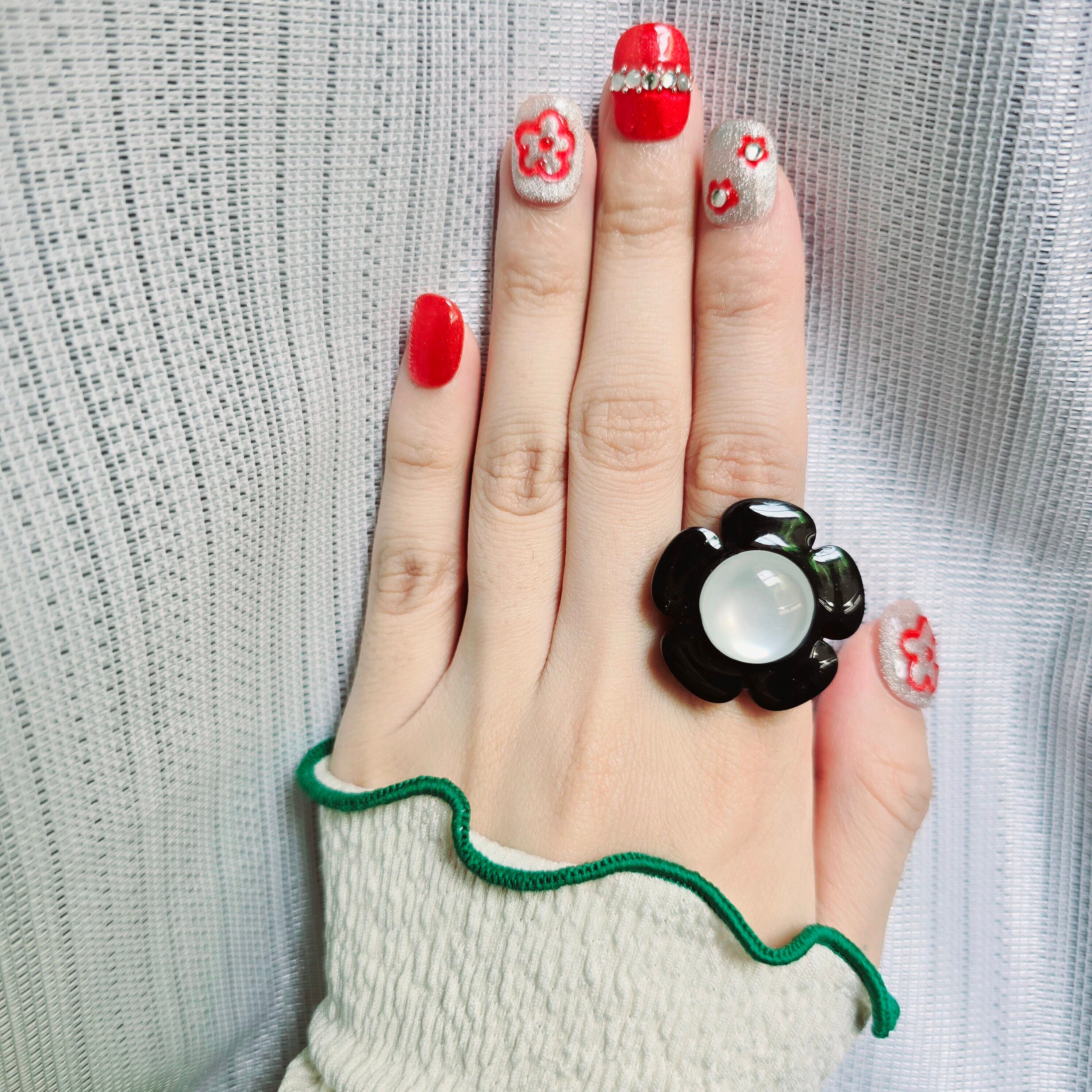 ⟬ レトロフラワーのモノトーン大ぶりリング(1粒) ⟭