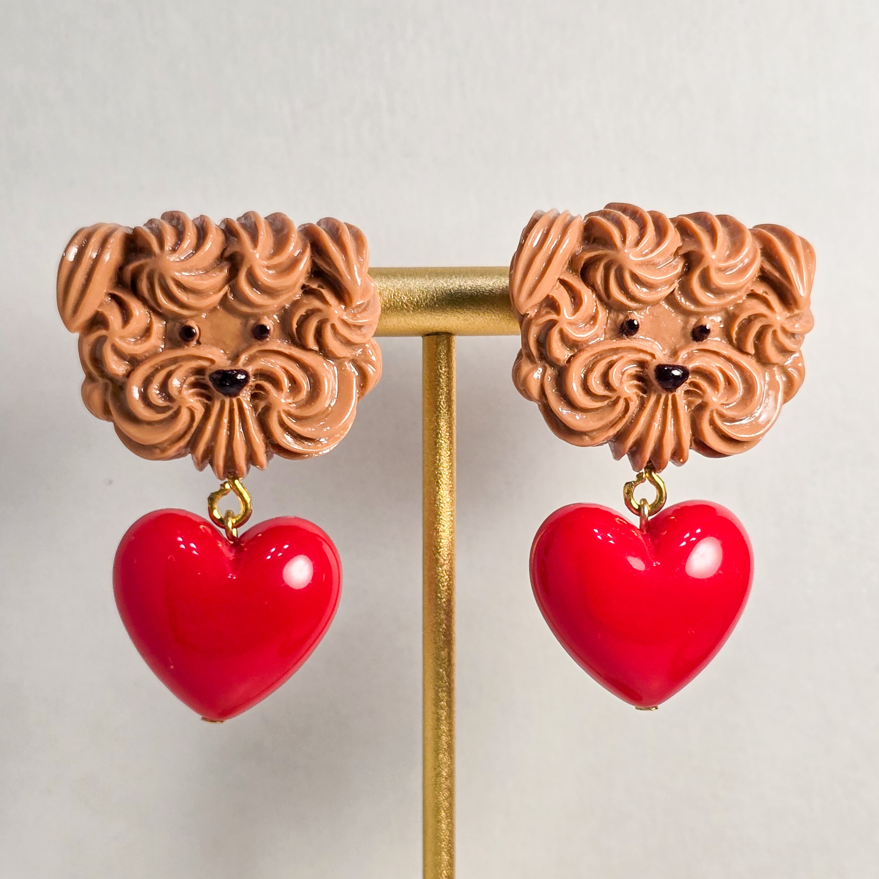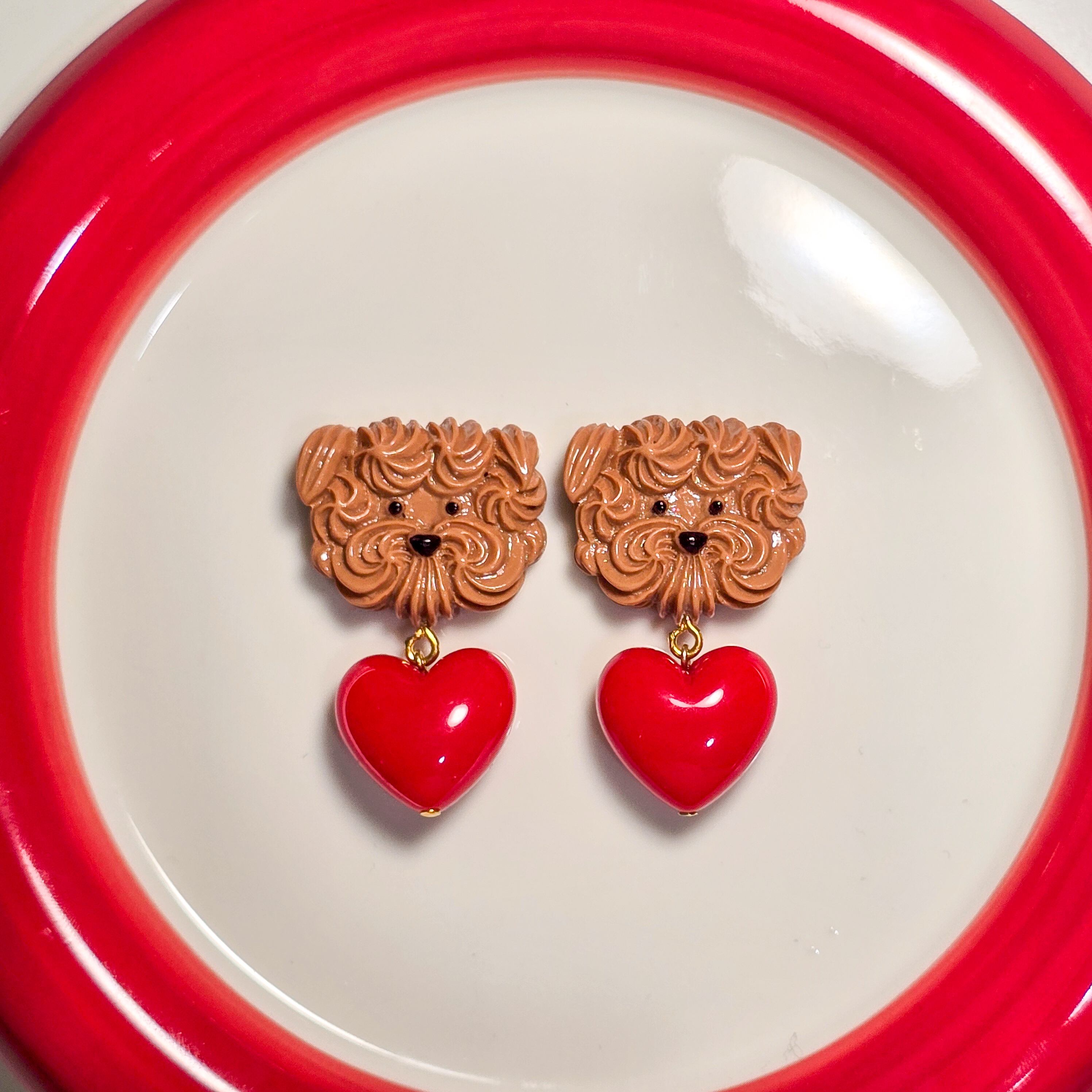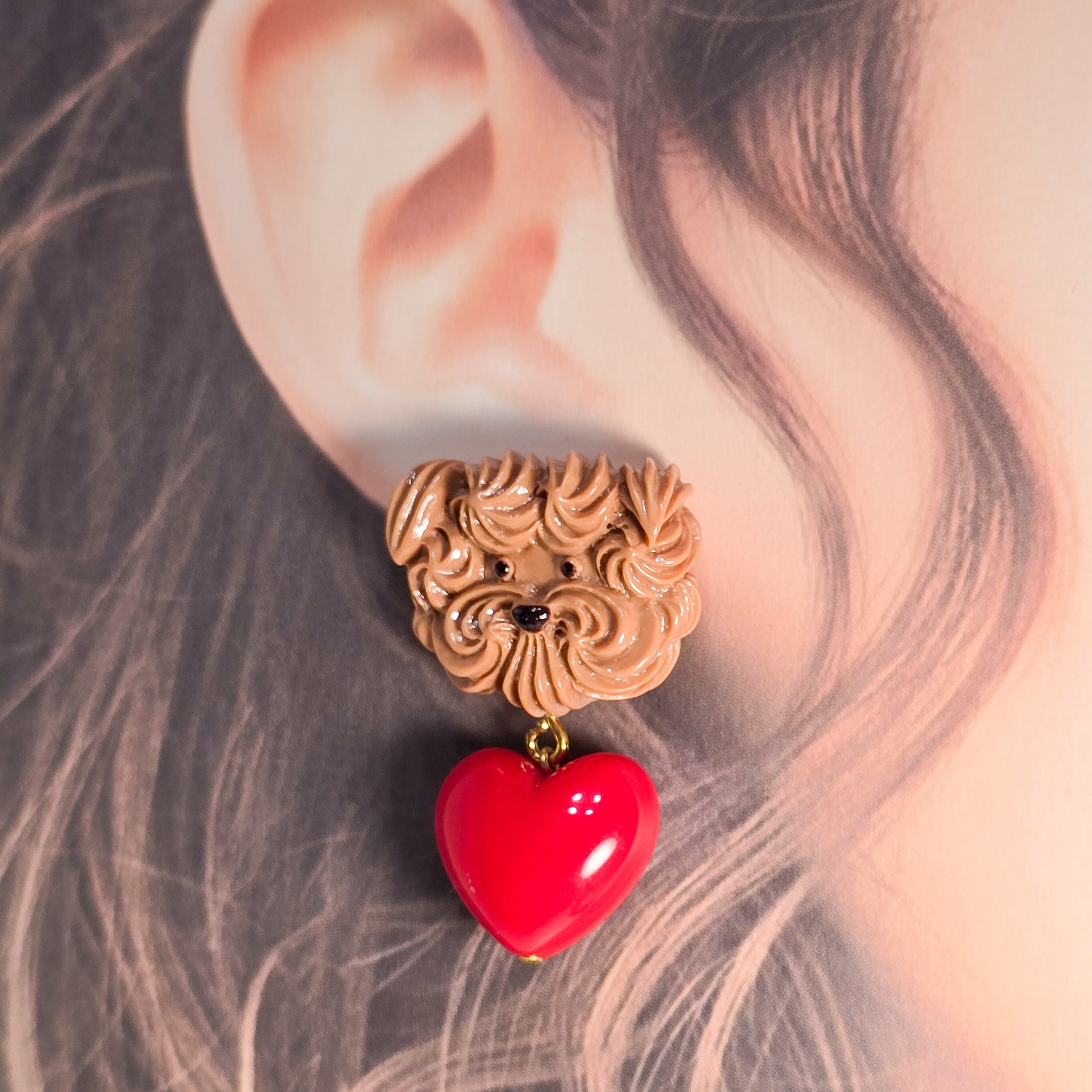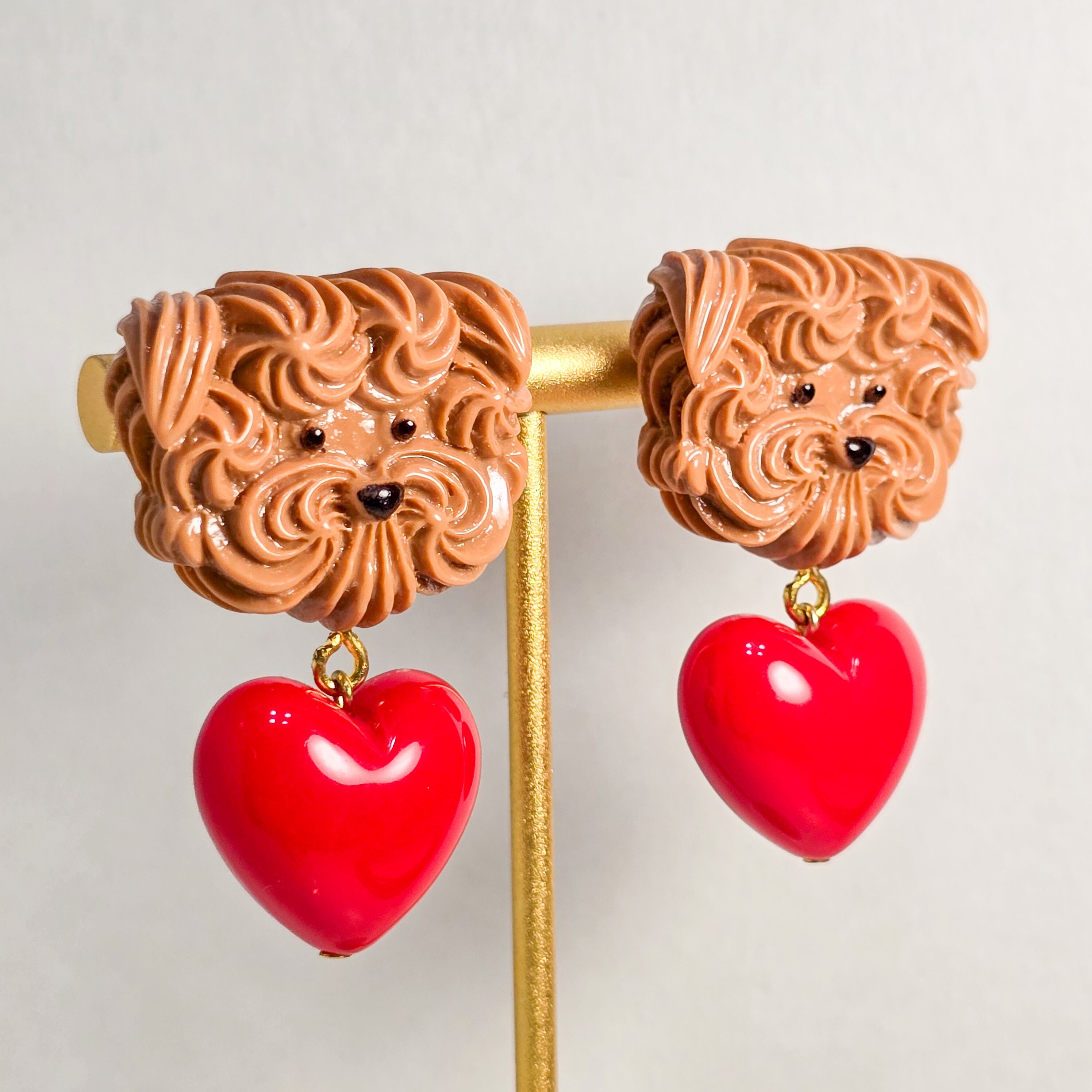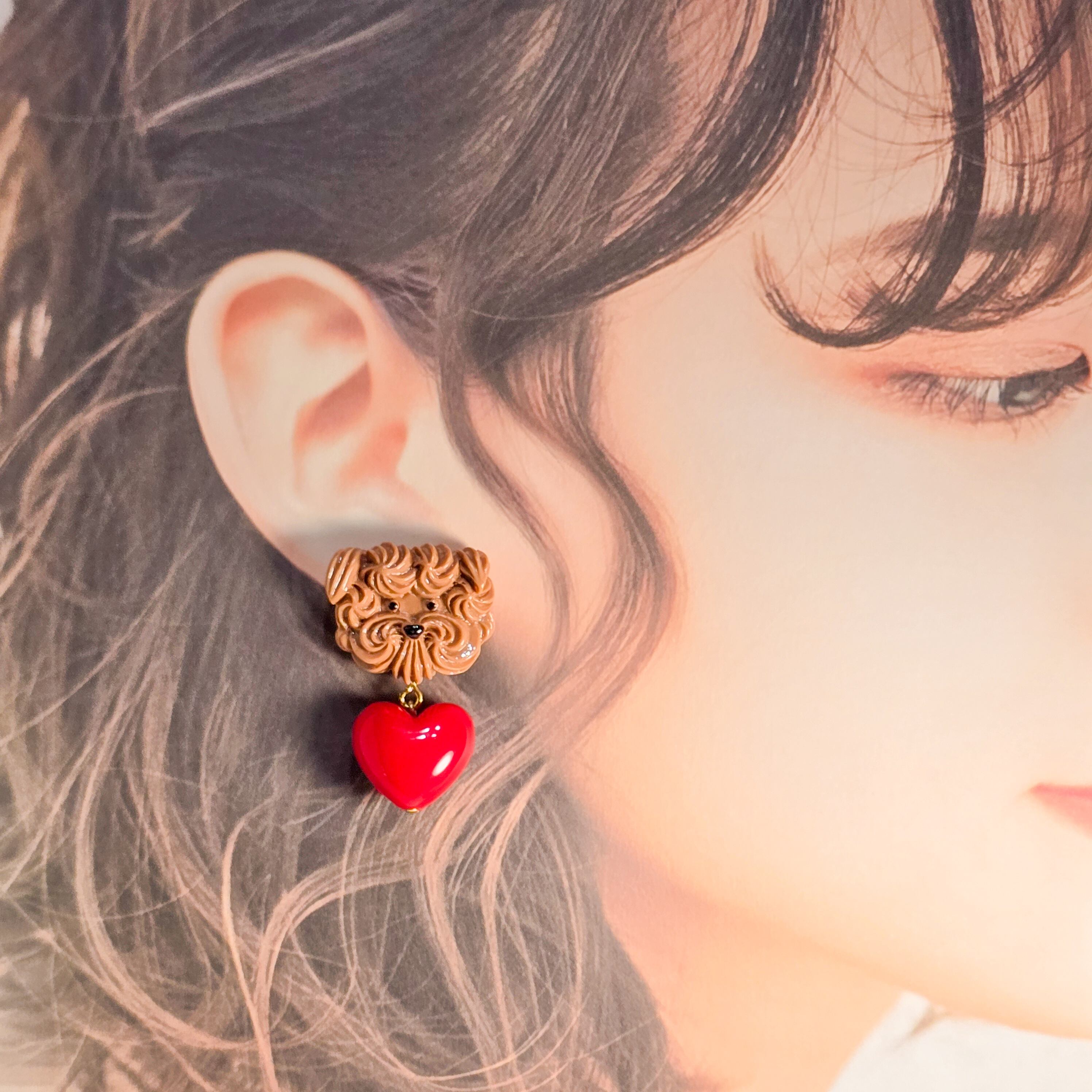 ⟬ ホイップわんちゃんとハートのピアス&イヤリング(茶色のわんちゃん) ⟭