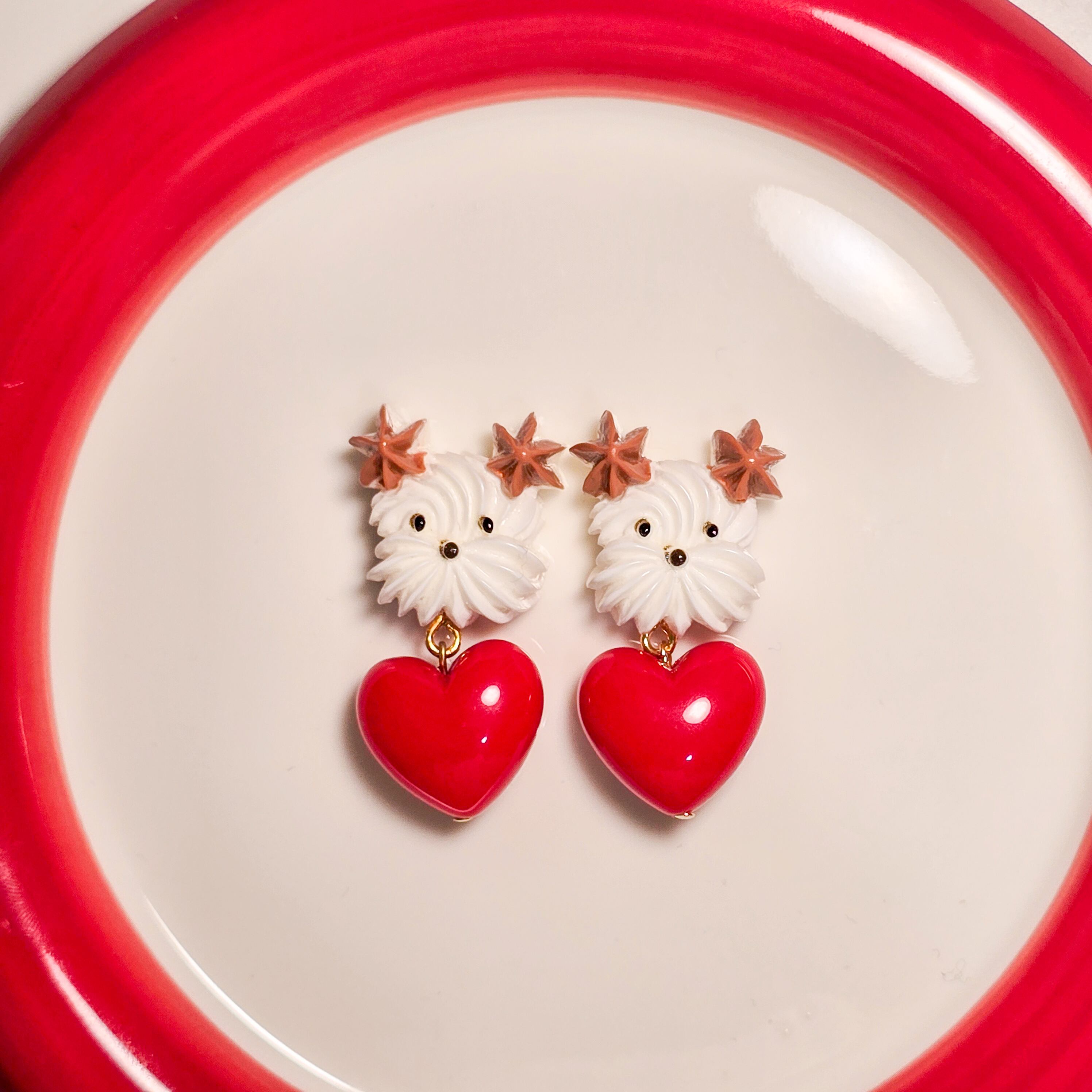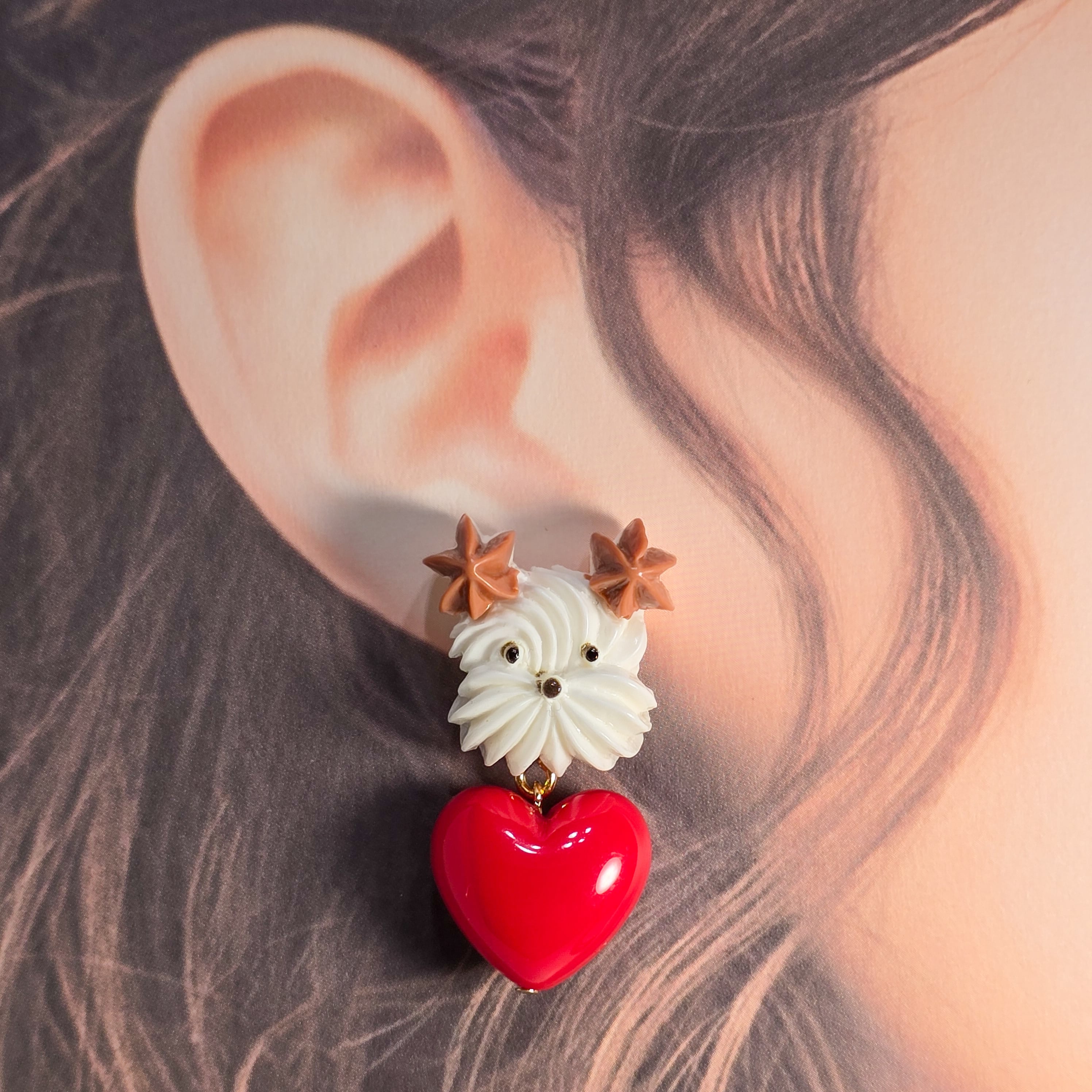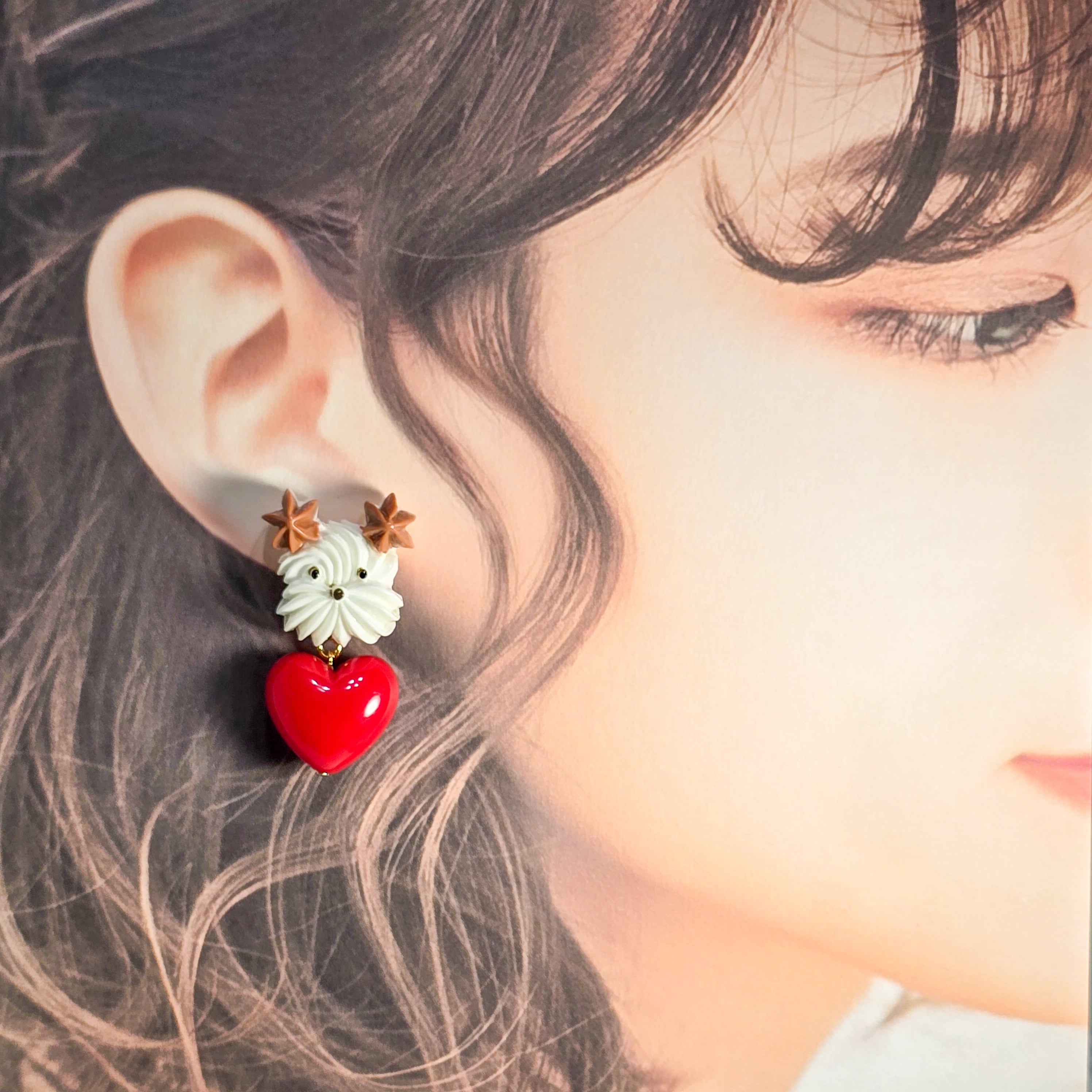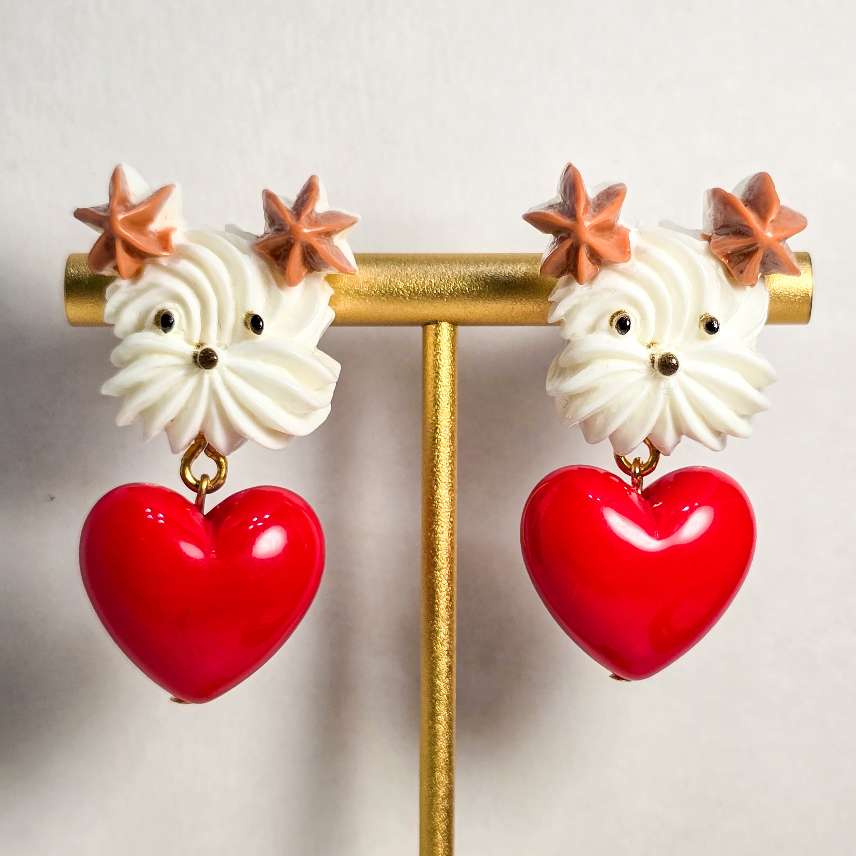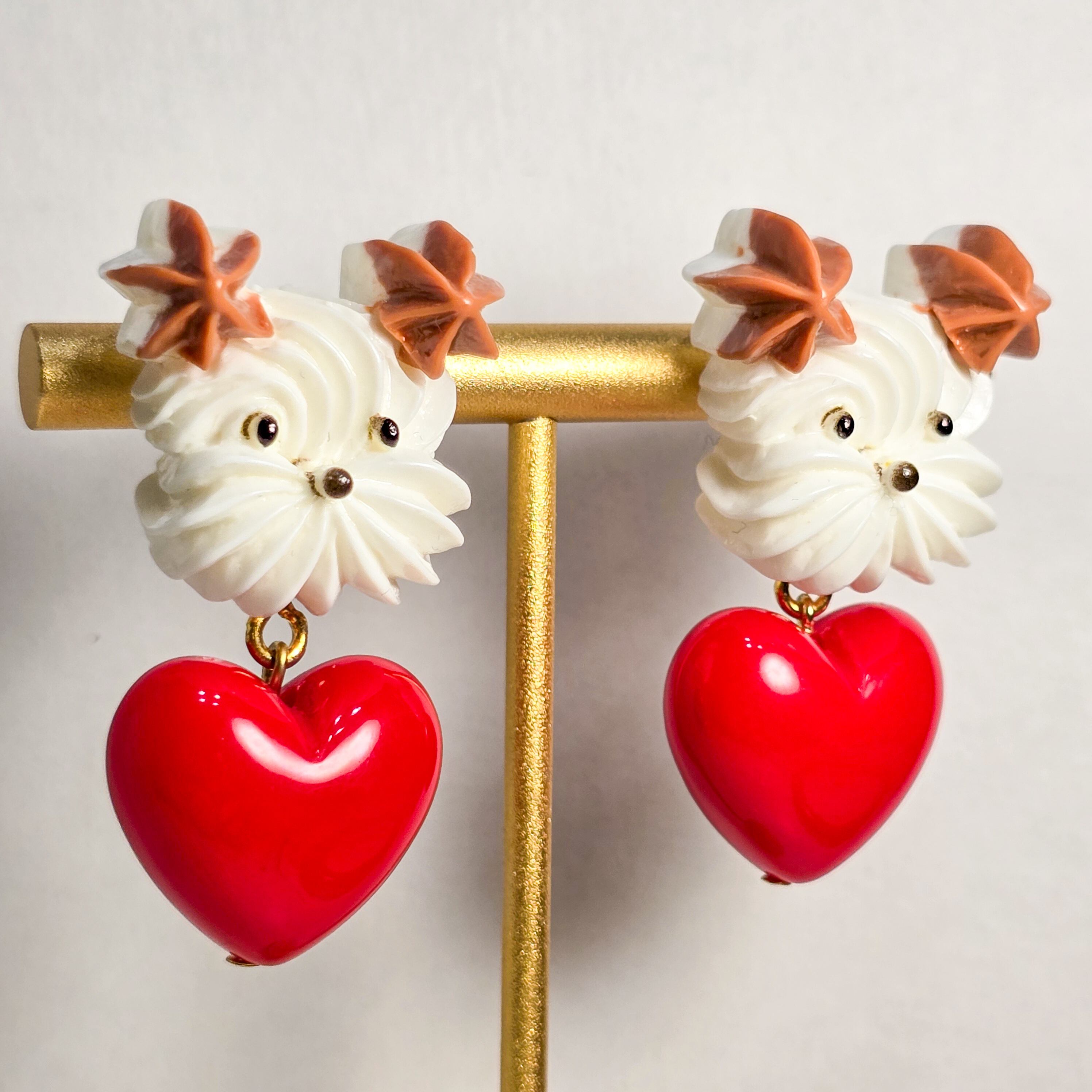 ⟬ ホイップわんちゃんとハートのピアス&イヤリング(耳茶のわんちゃん) ⟭