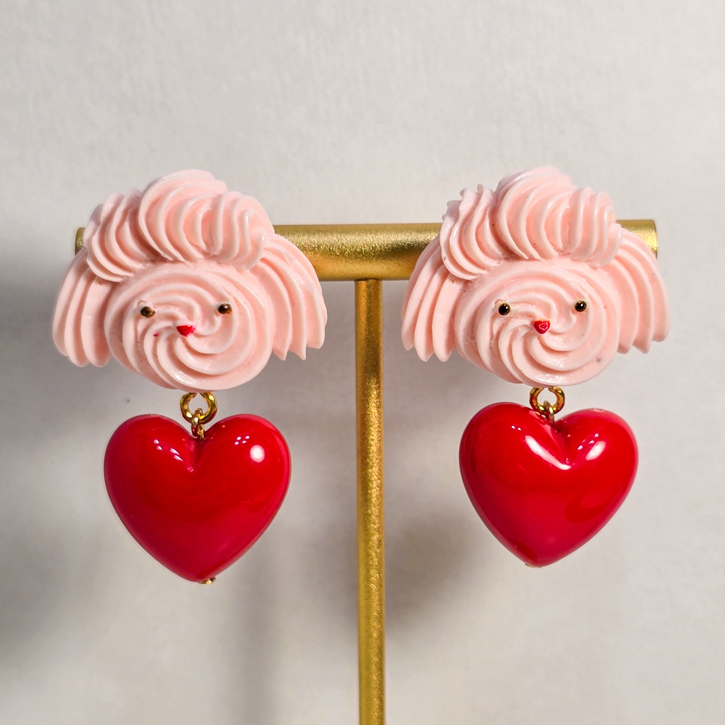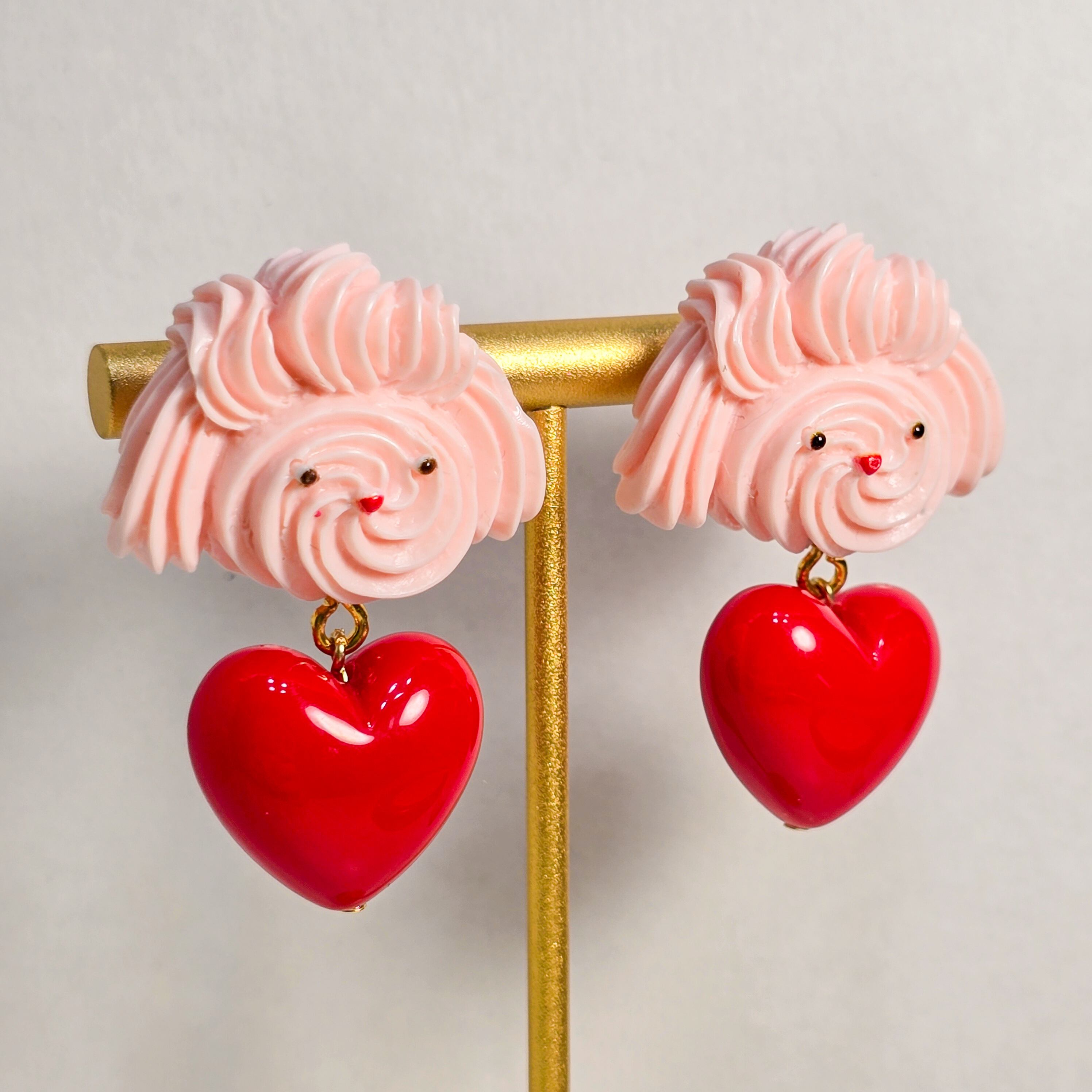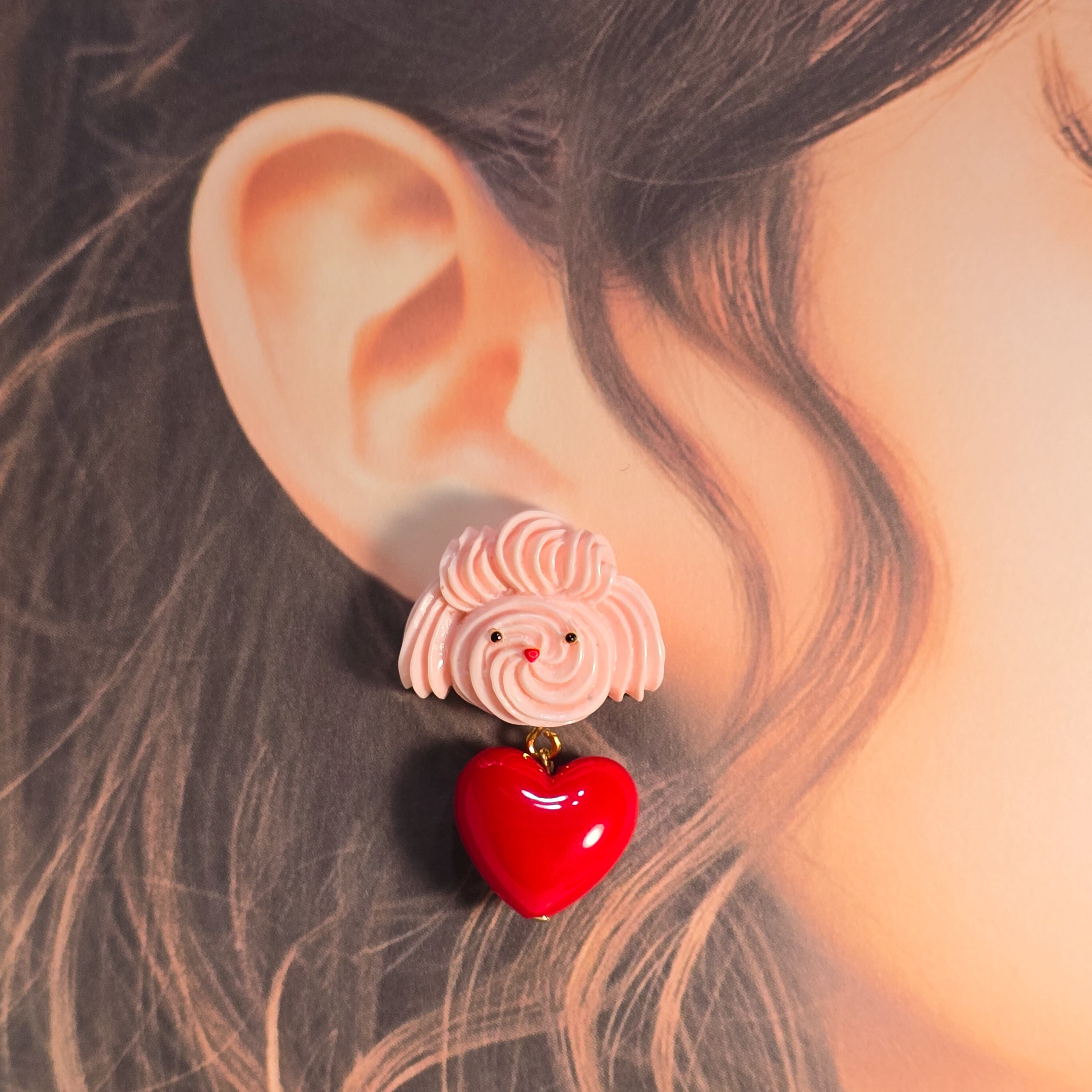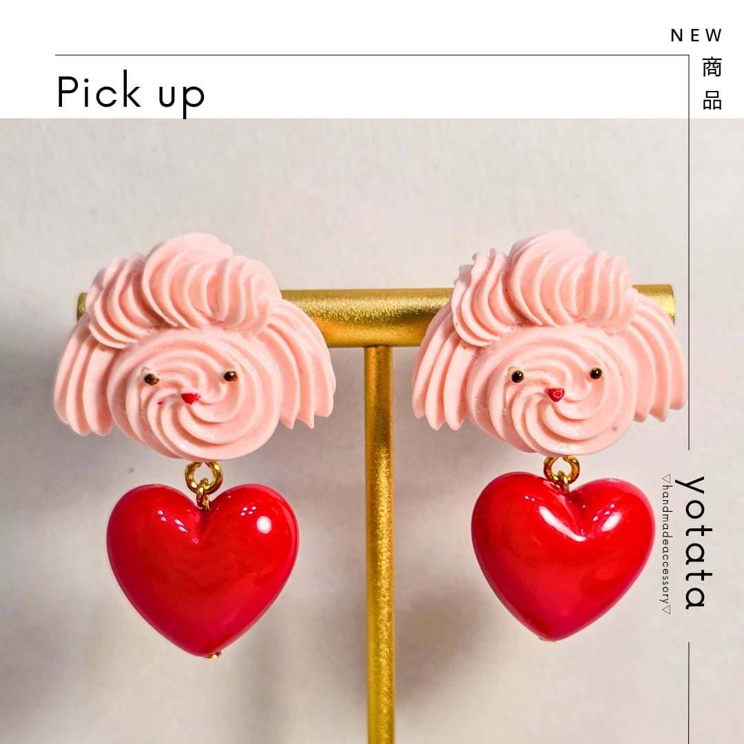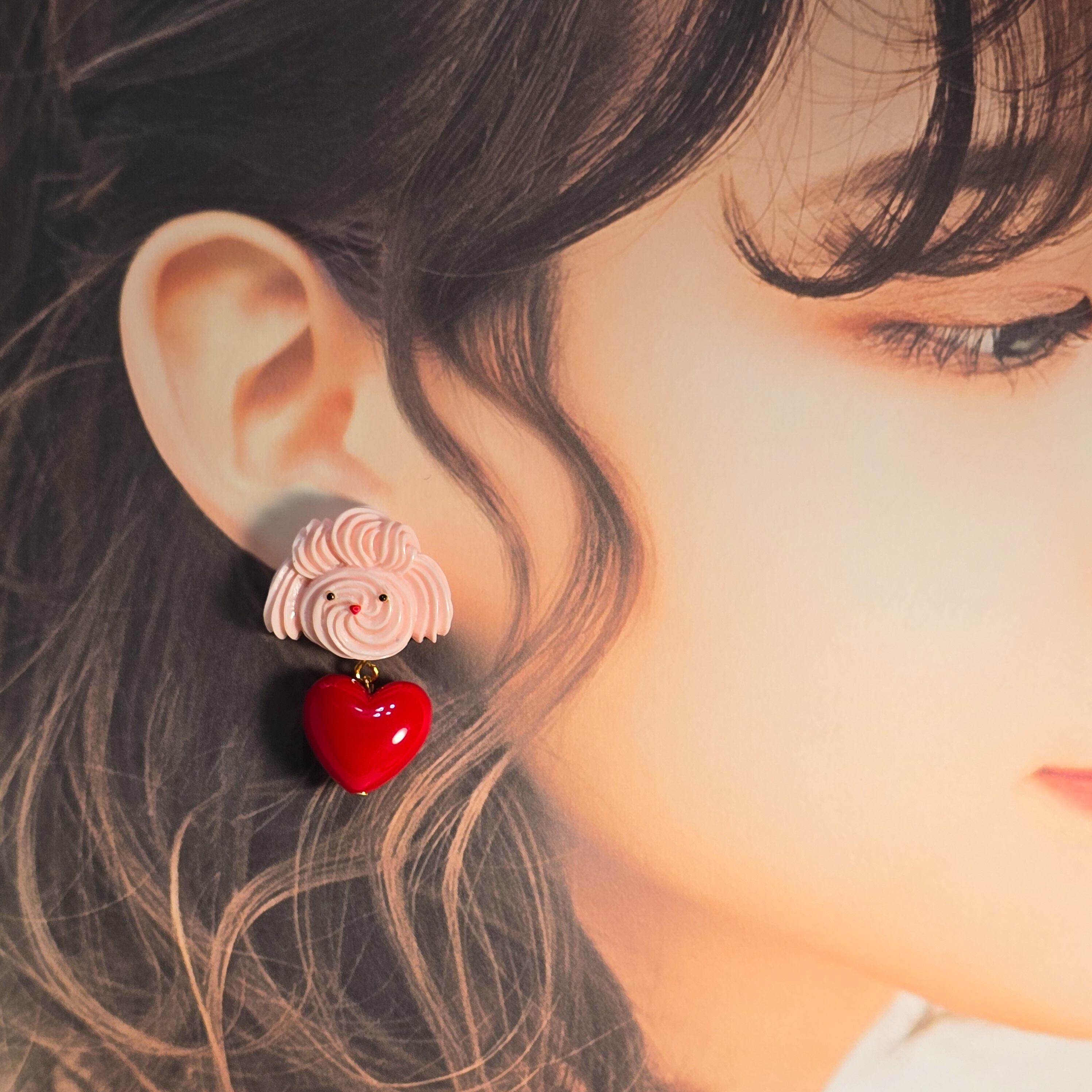 ⟬ ホイップわんちゃんとハートのピアス&イヤリング(ピンクのわんちゃん) ⟭