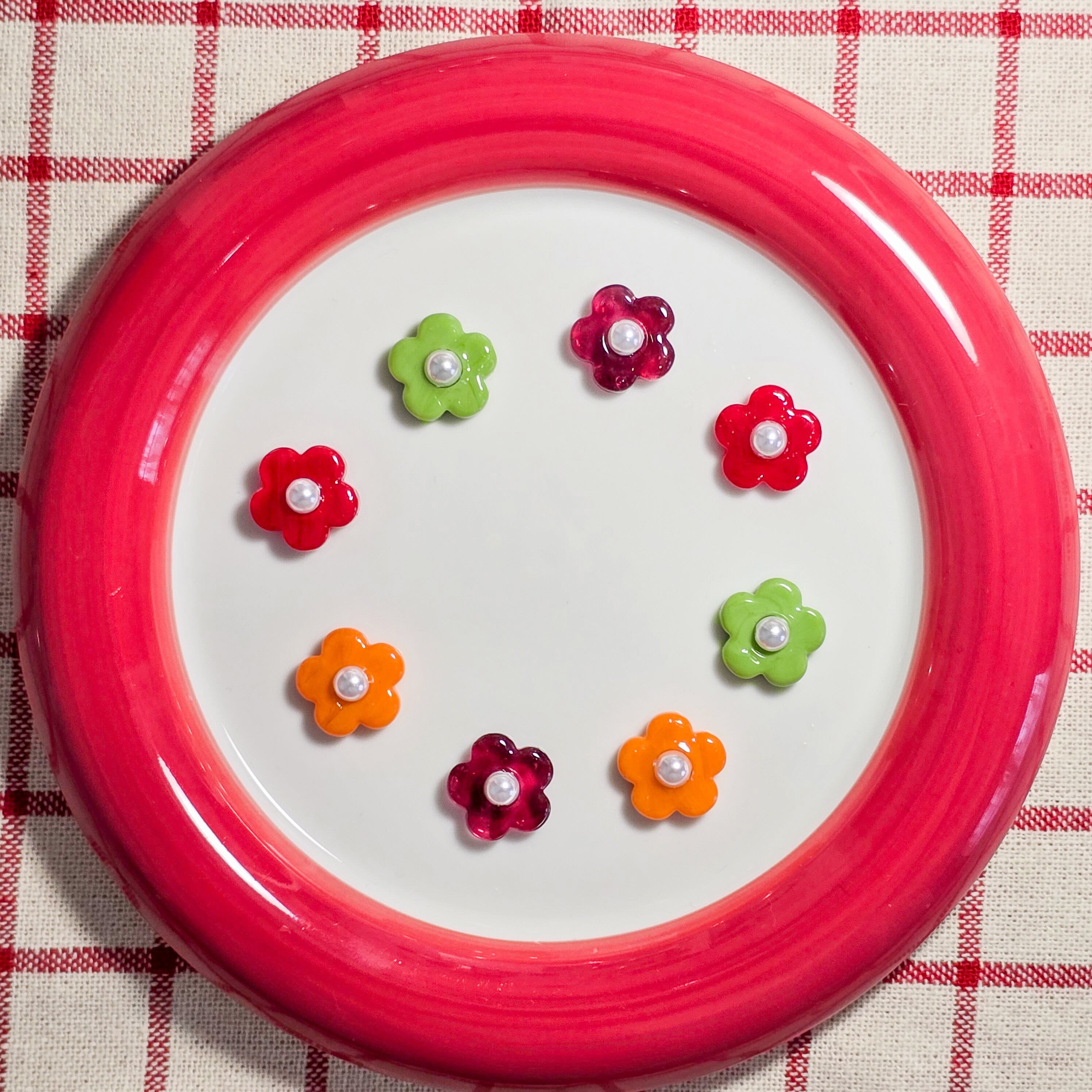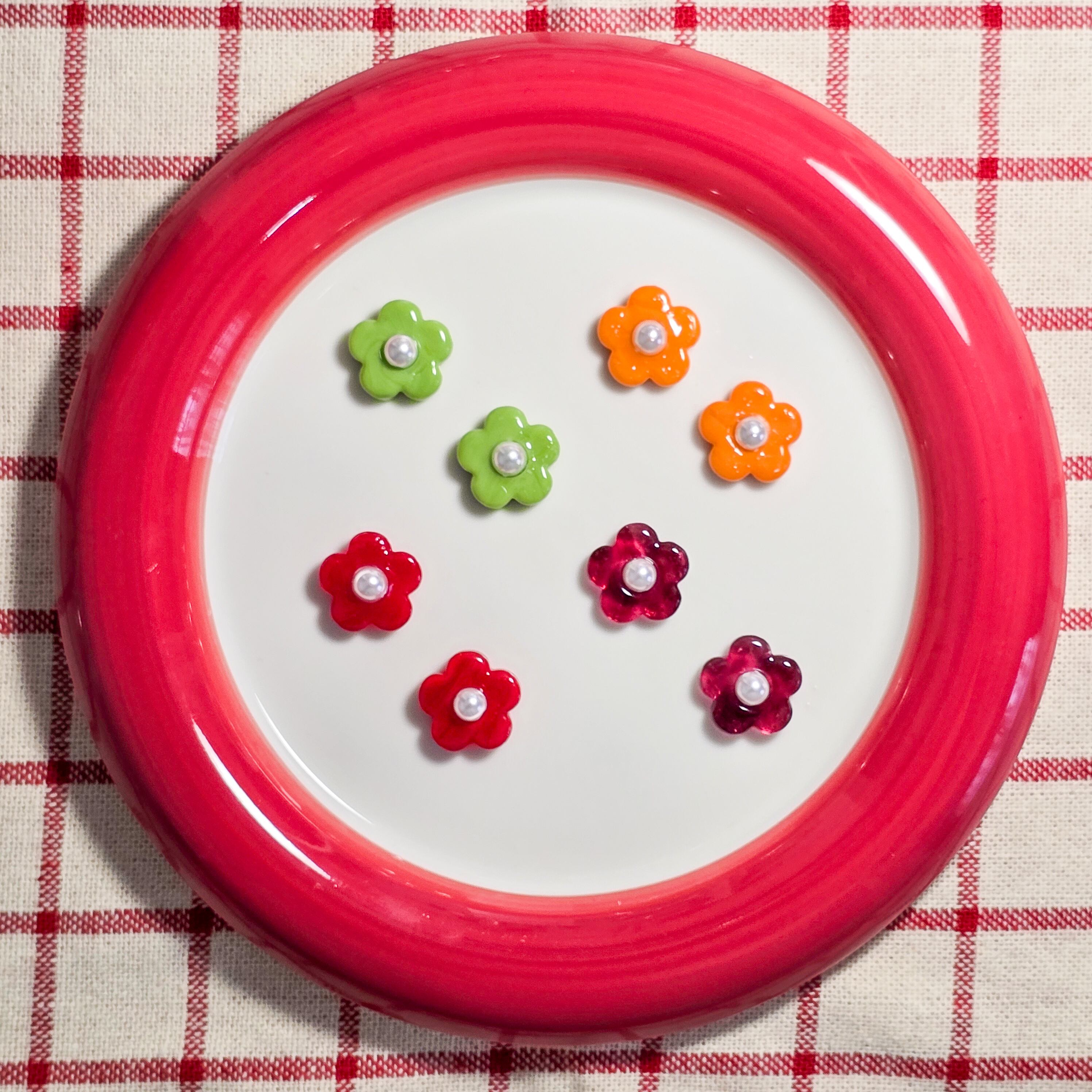 ガラスで出来たレトロポップなフラワーパーツの