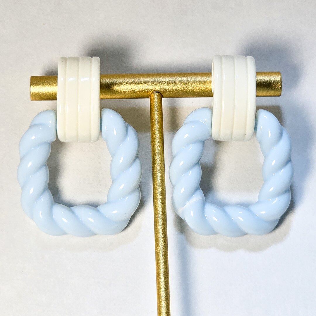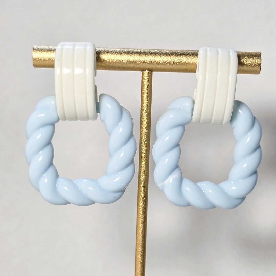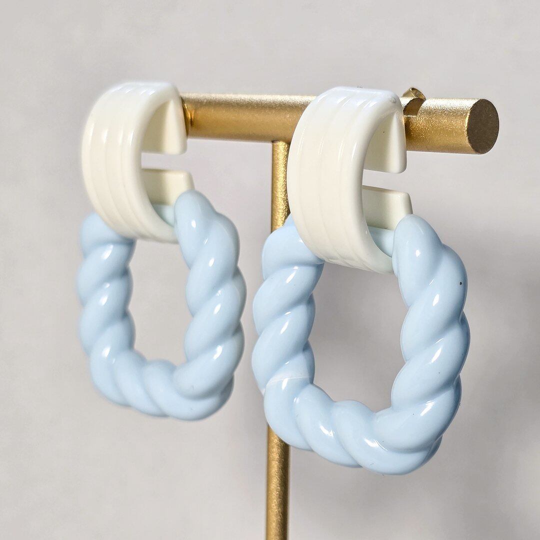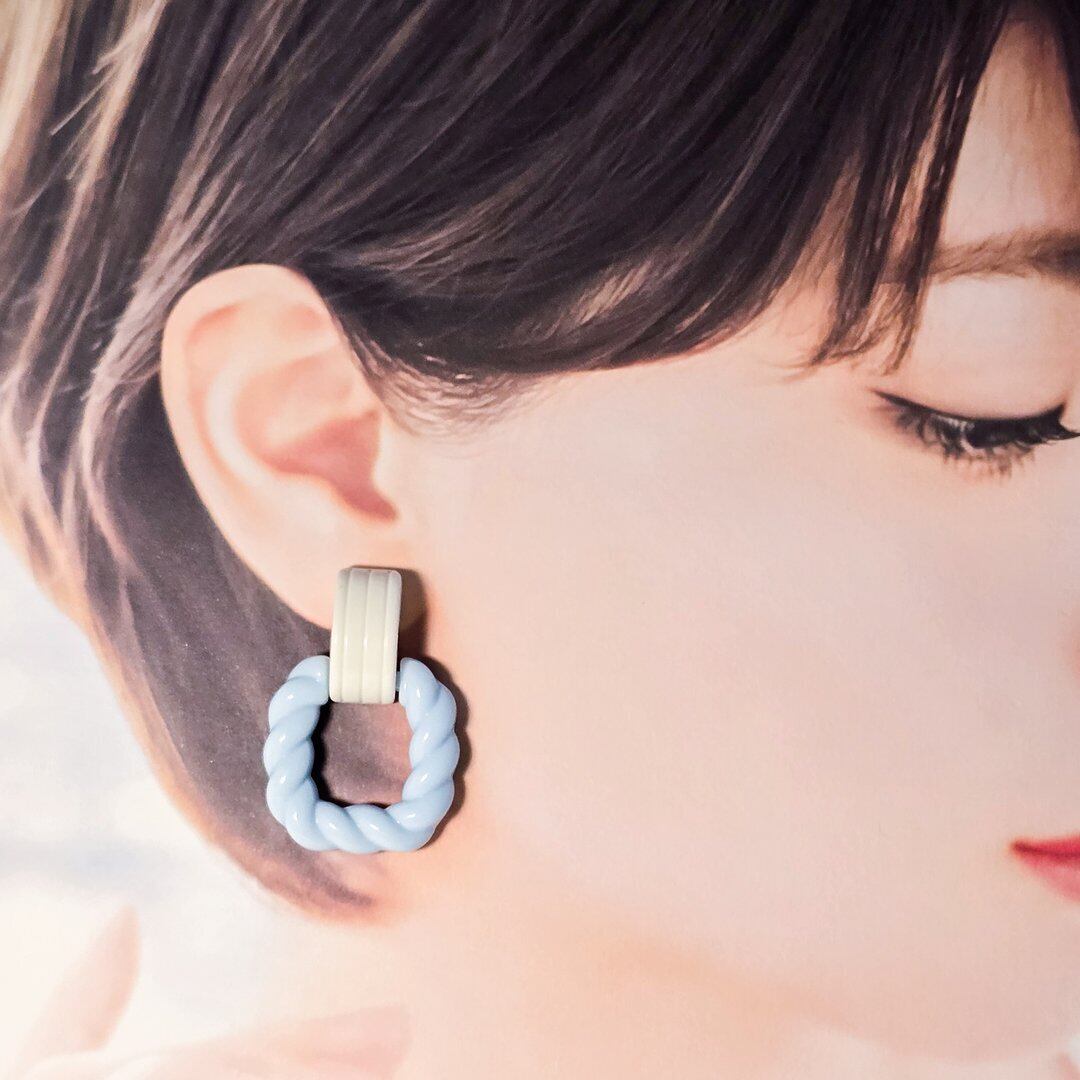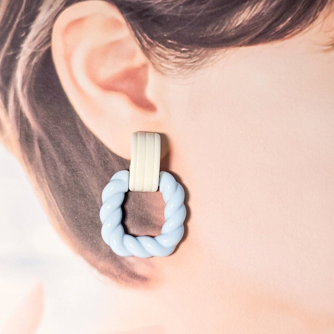 白と水色のツートンカラーでまとまった、うねうねマシュマロようなモチーフ大ぶりアクセサリー♡
