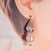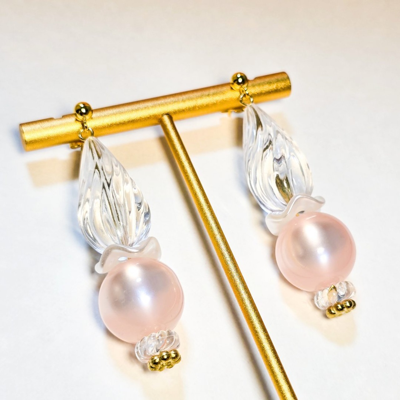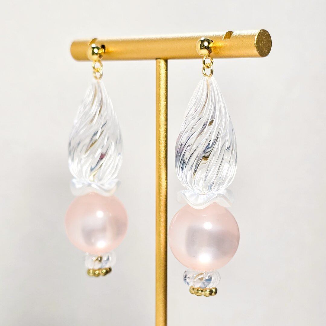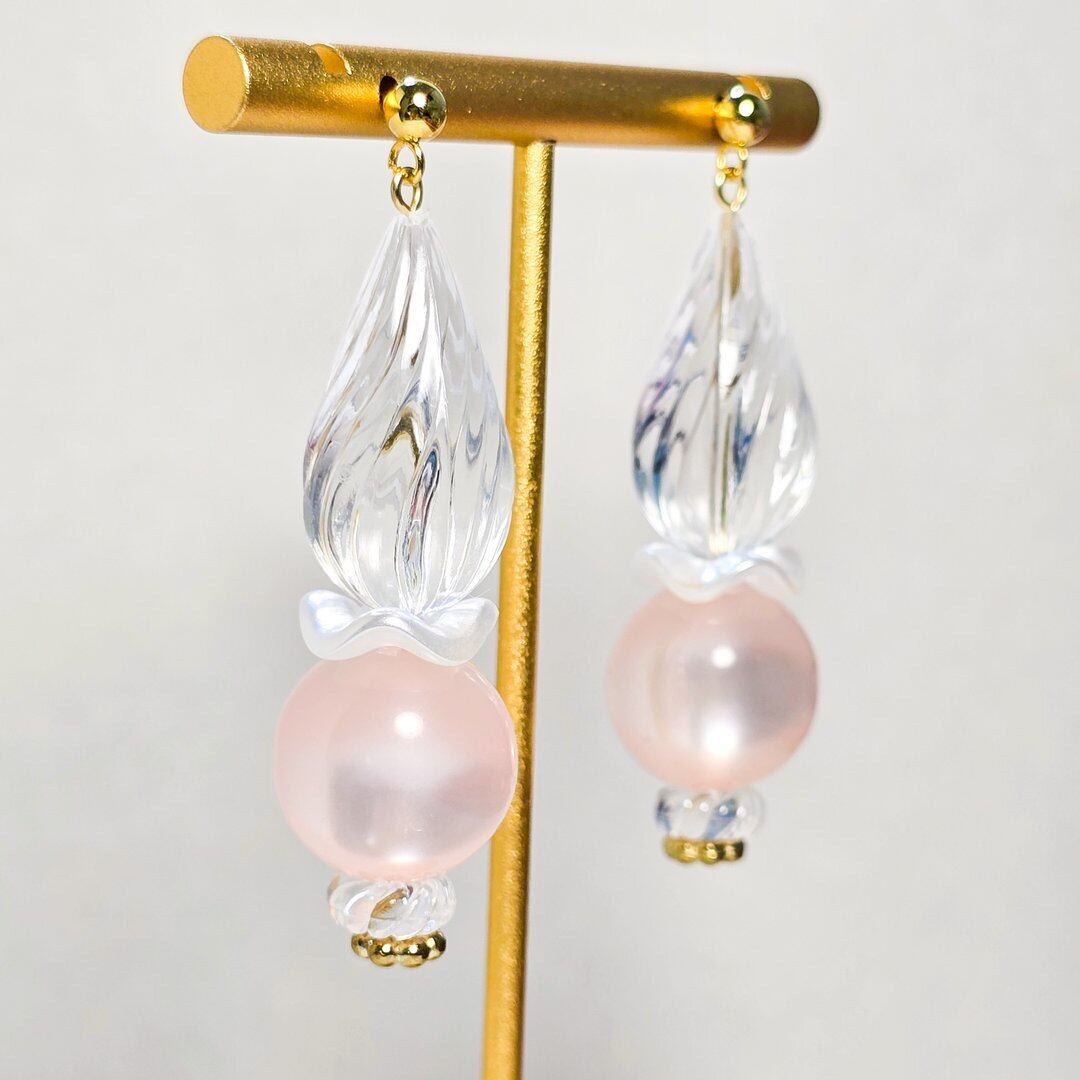 透明感たっぷりなクリアなドロップとピンク色のポラリスのアクリル玉を合わせました♡