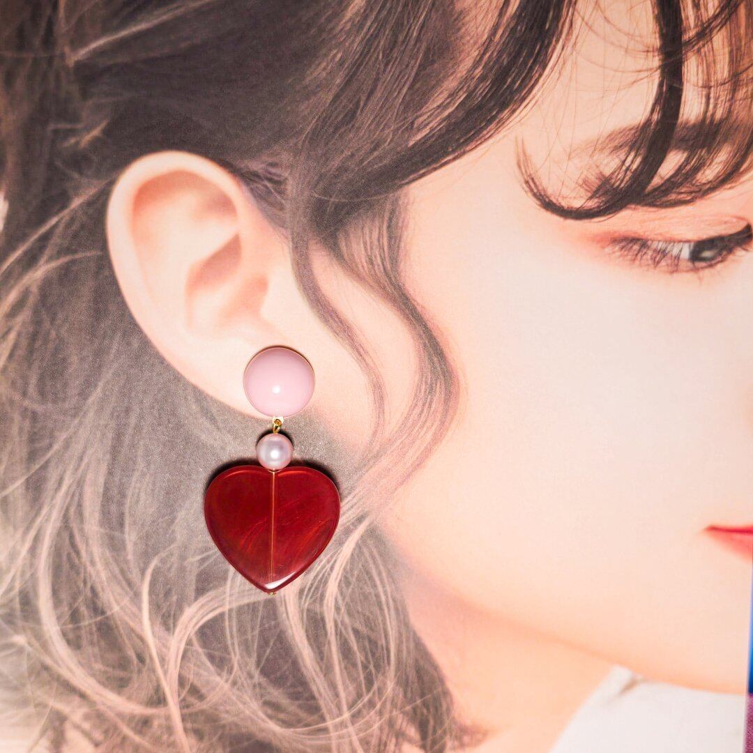 耳元で揺れるハートは、シンプルながらも存在感があり、どんなスタイルにもレトロかわいく見えます❁