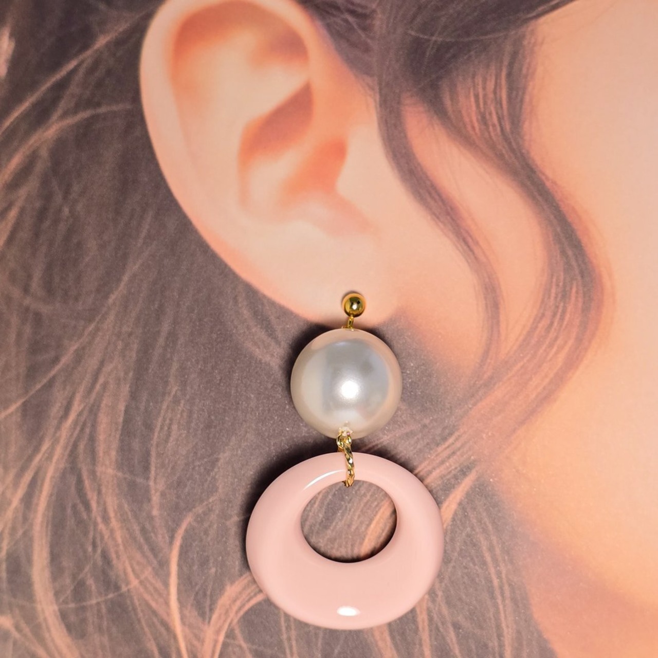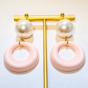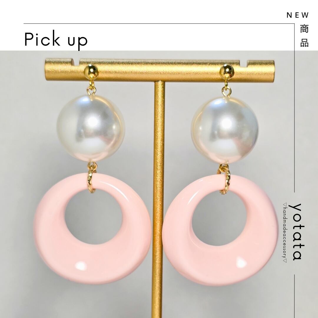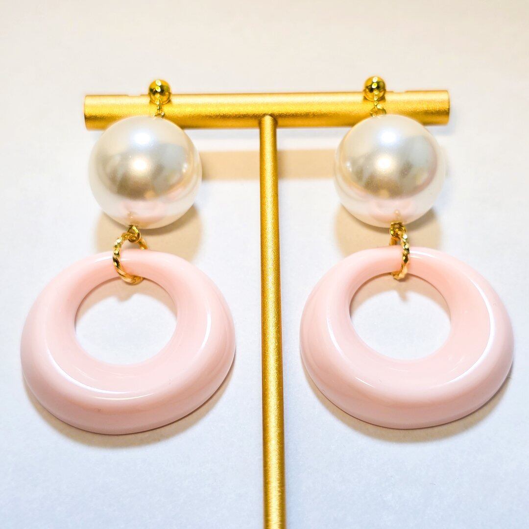 ⟬ 大ぶりレトロフープ(ホワイトパール×ミルクピンク)ピアス&イヤリング ⟭