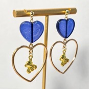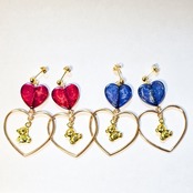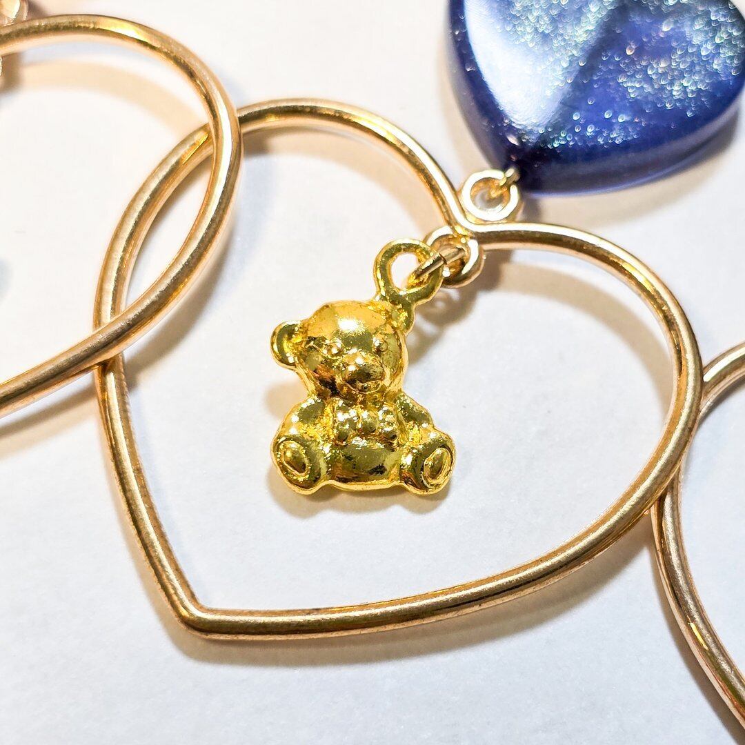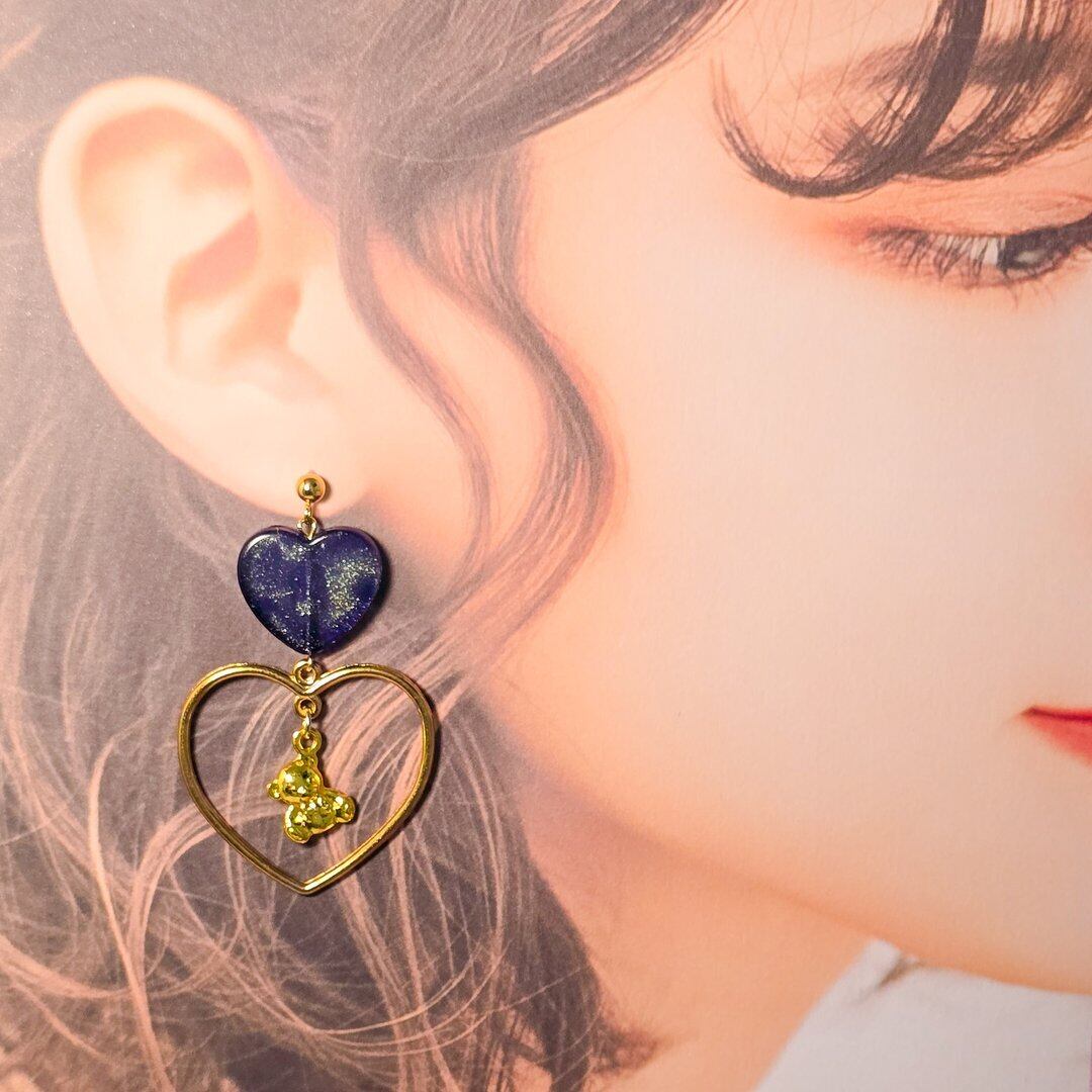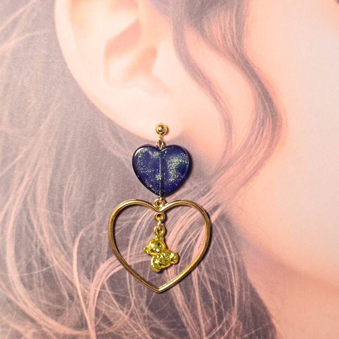 ⟬ ブルーのパール入りハートとゆらゆらくまさんのピアス&イヤリング ⟭