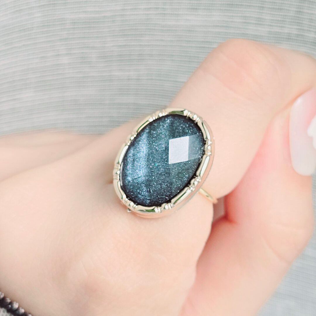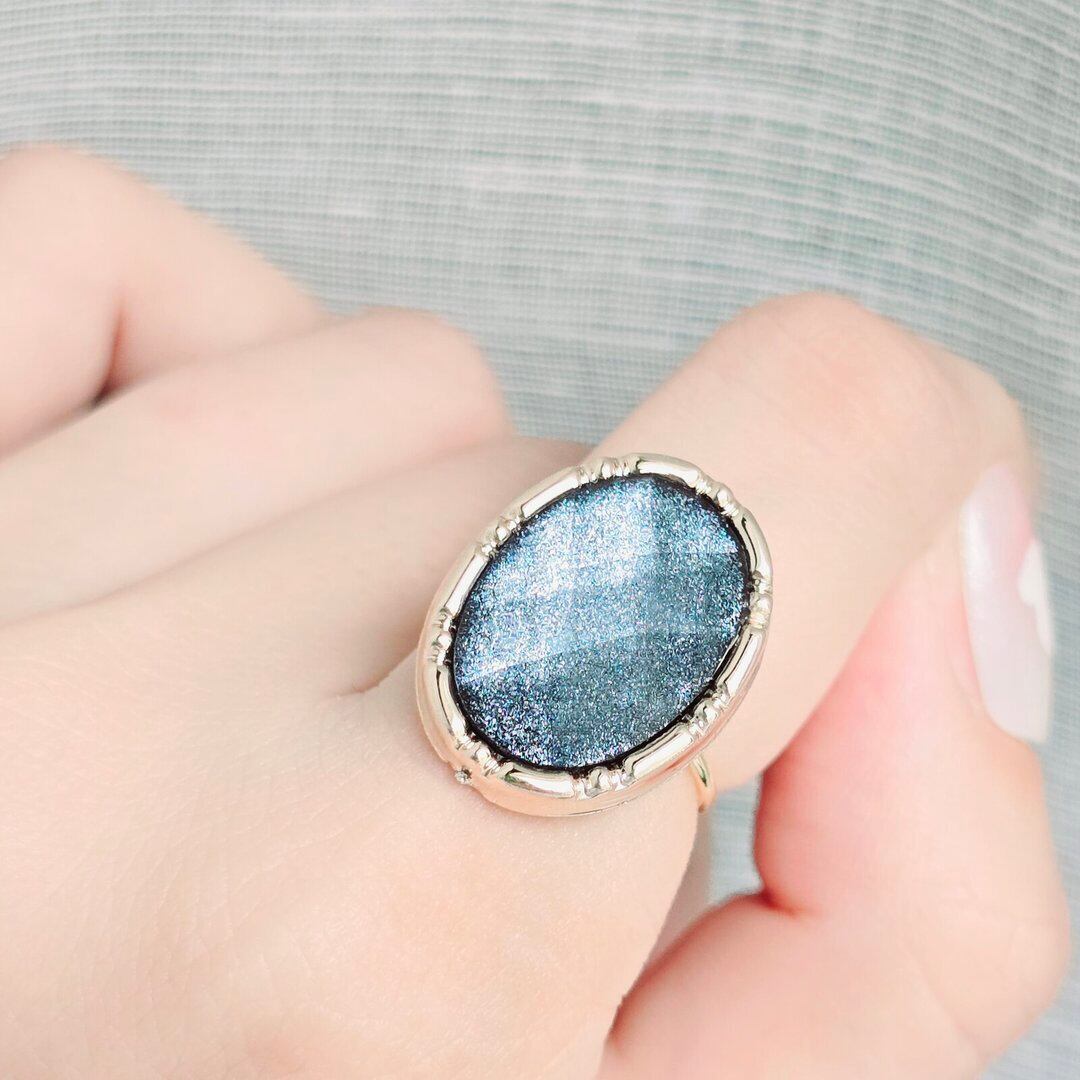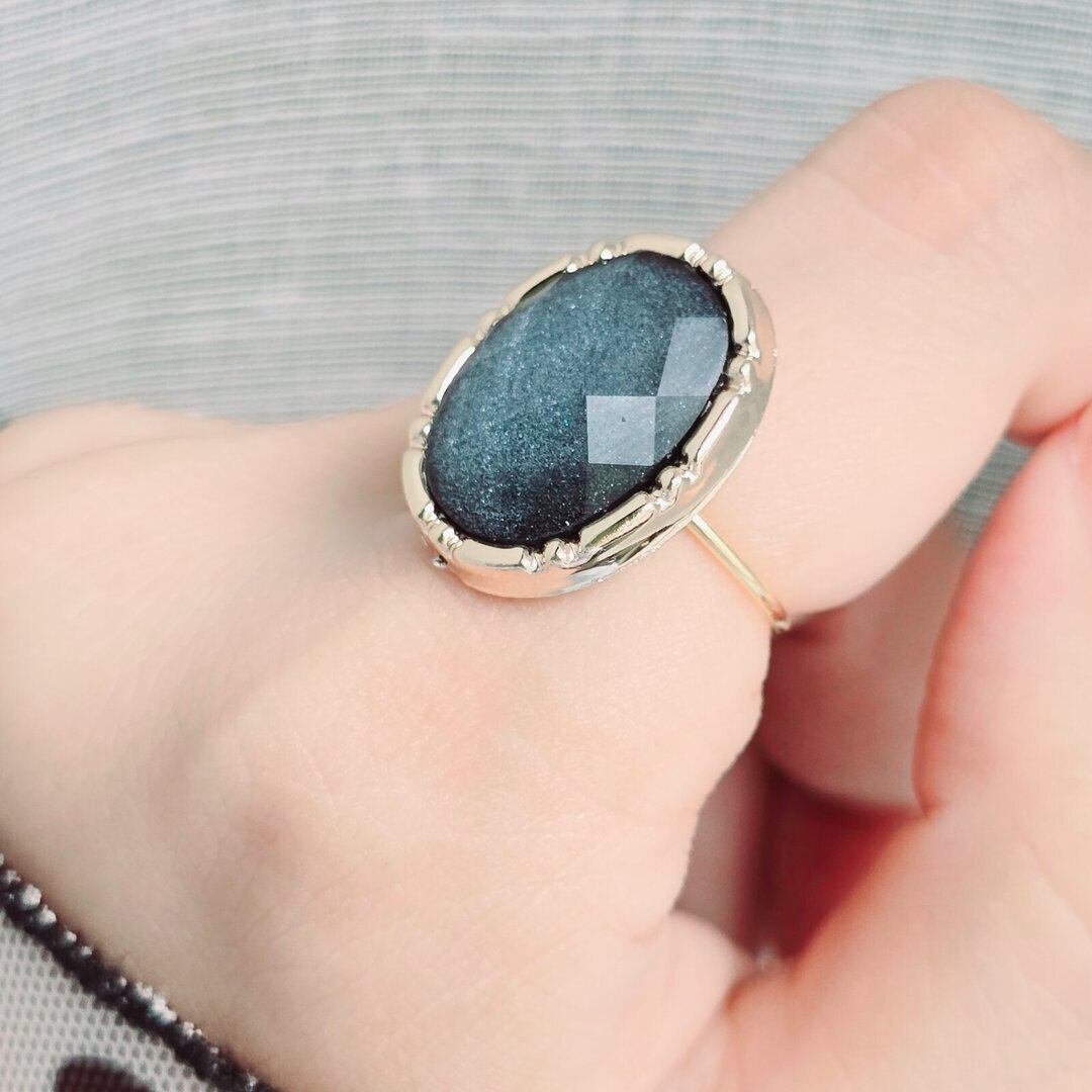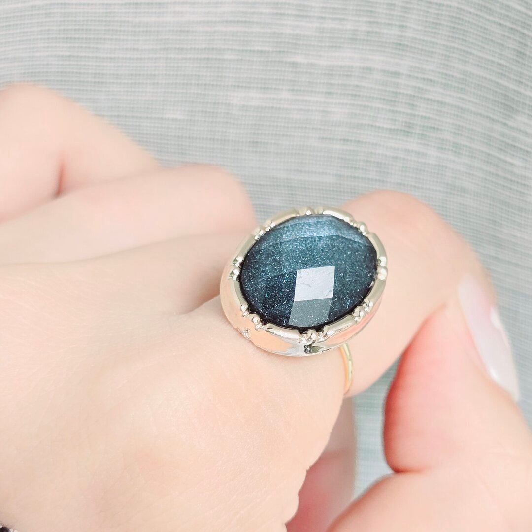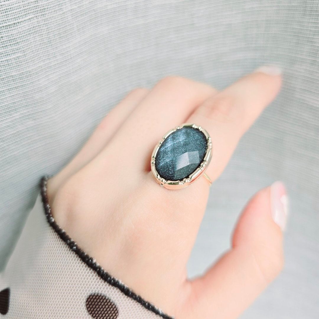 ⟬ 煌めくネイビーグレーのパールオーバルリング ⟭