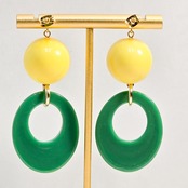 No.222 大ぶりレトロオーバルフープ(レモンイエロー×グリーン)ピアス&イヤリング