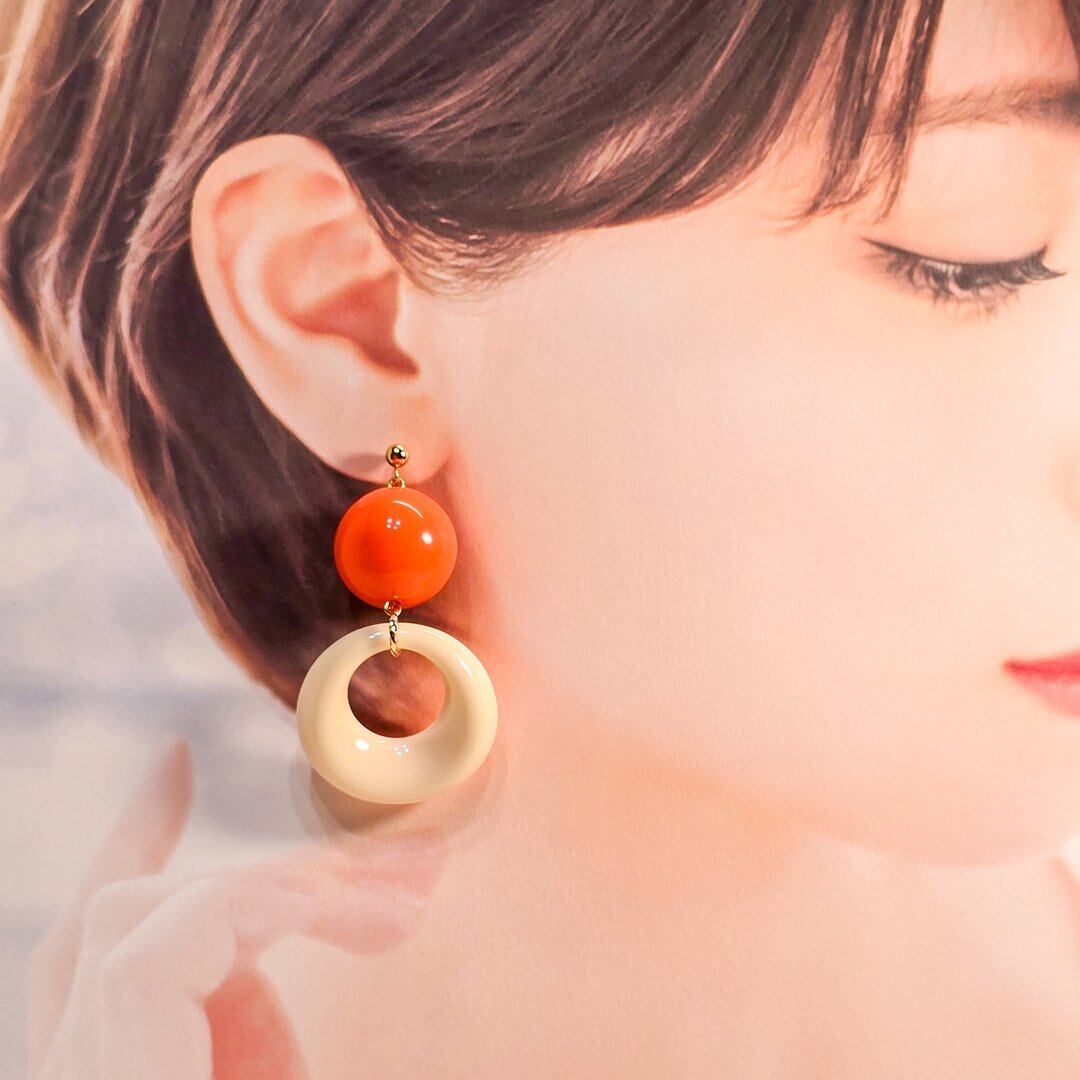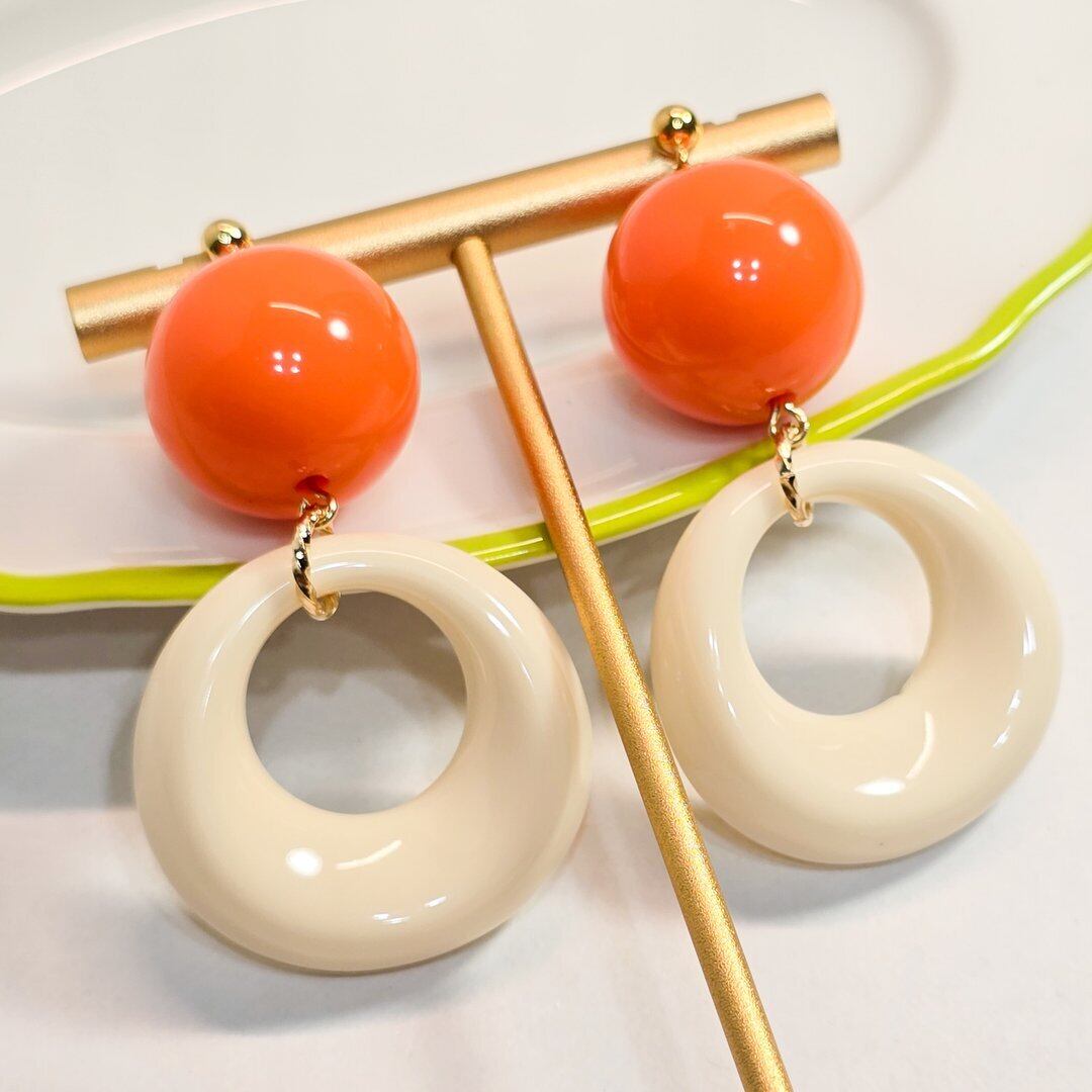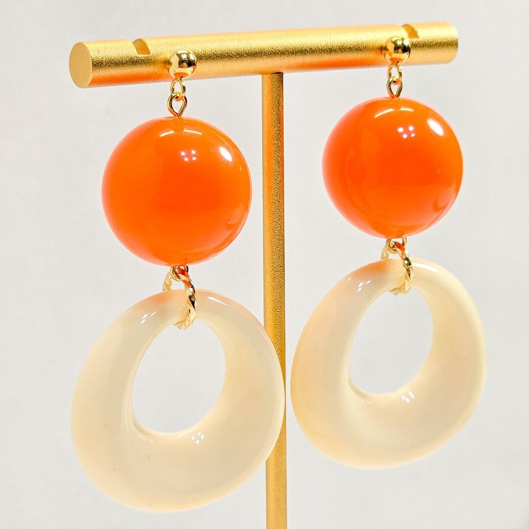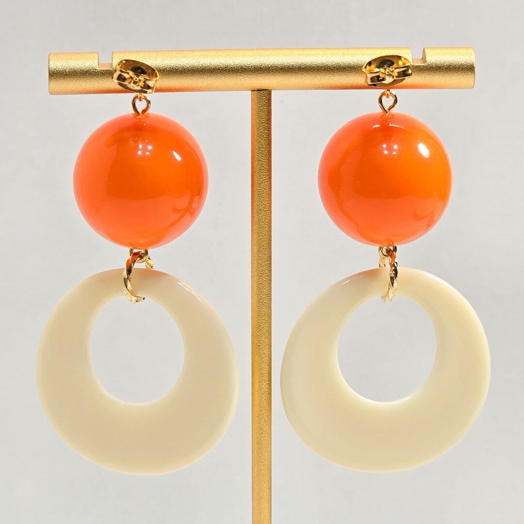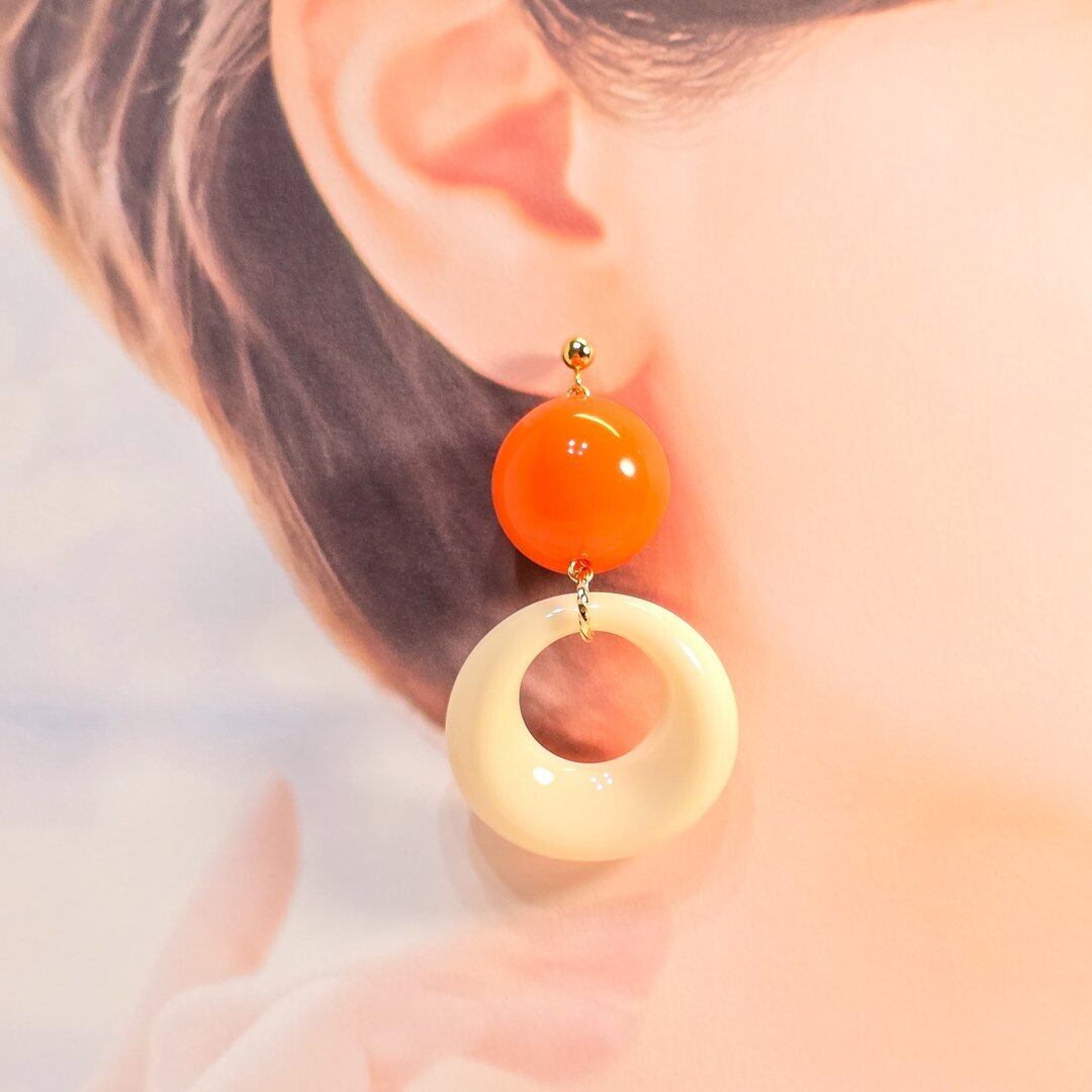 ⟬ 大ぶりレトロフープ(オレンジ×ホワイト)ピアス&イヤリング ⟭