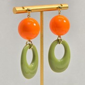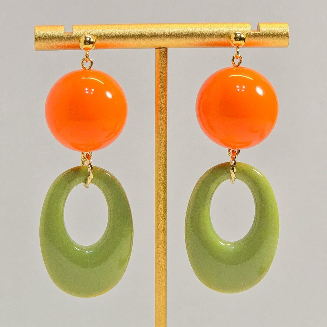 No.230 大ぶりレトロオーバルフープ(オレンジ×グリーン)ピアス&イヤリング