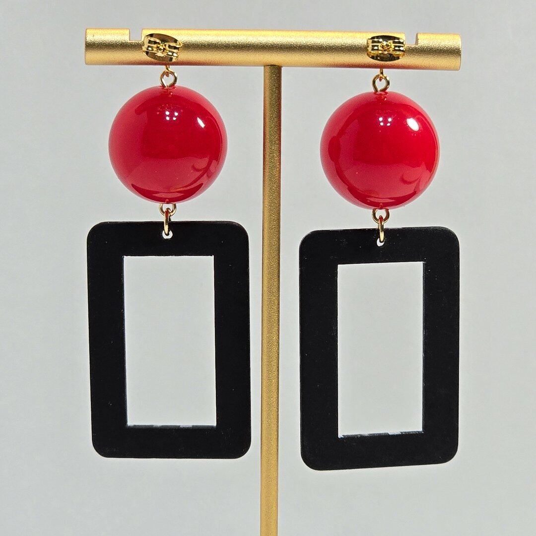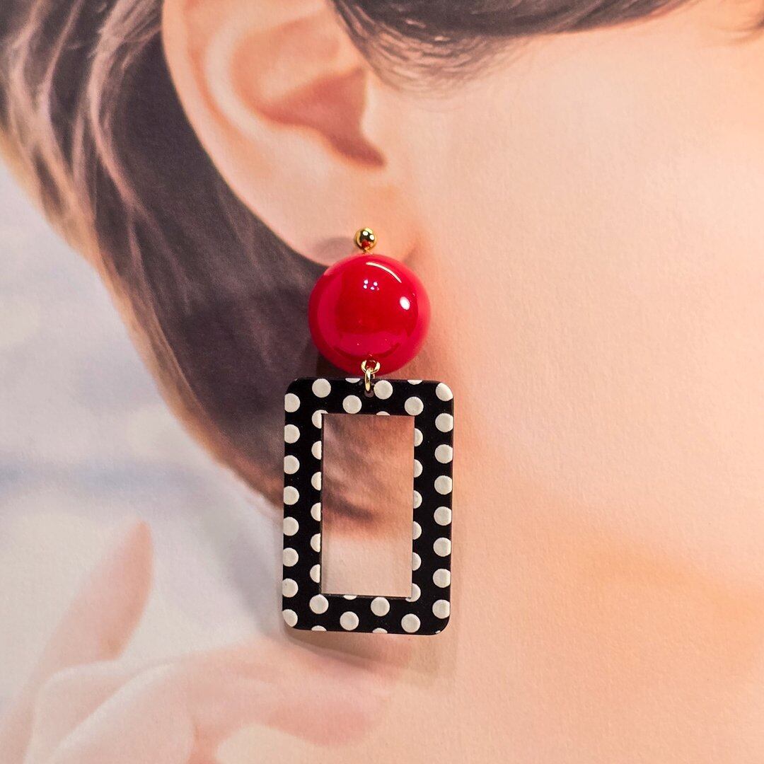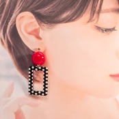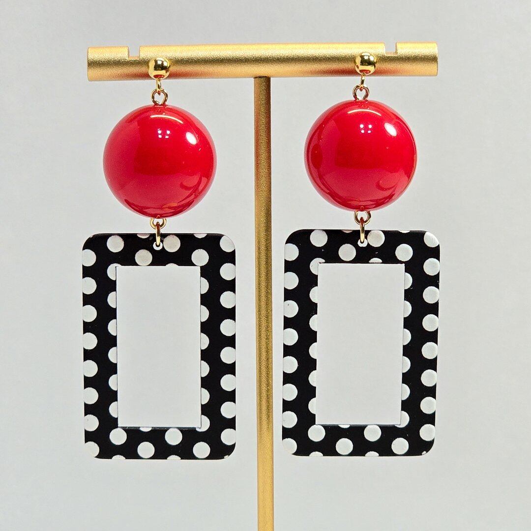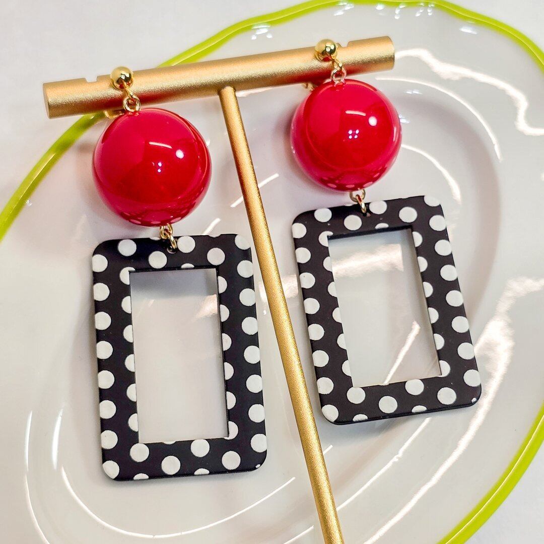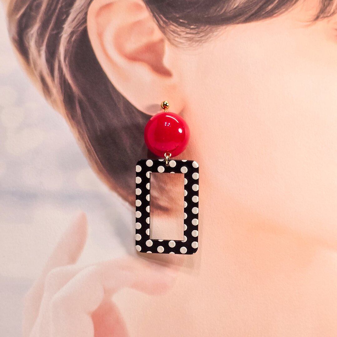 ⟬モノクロドットのスクエアレトロフープピアス&イヤリング ⟭
