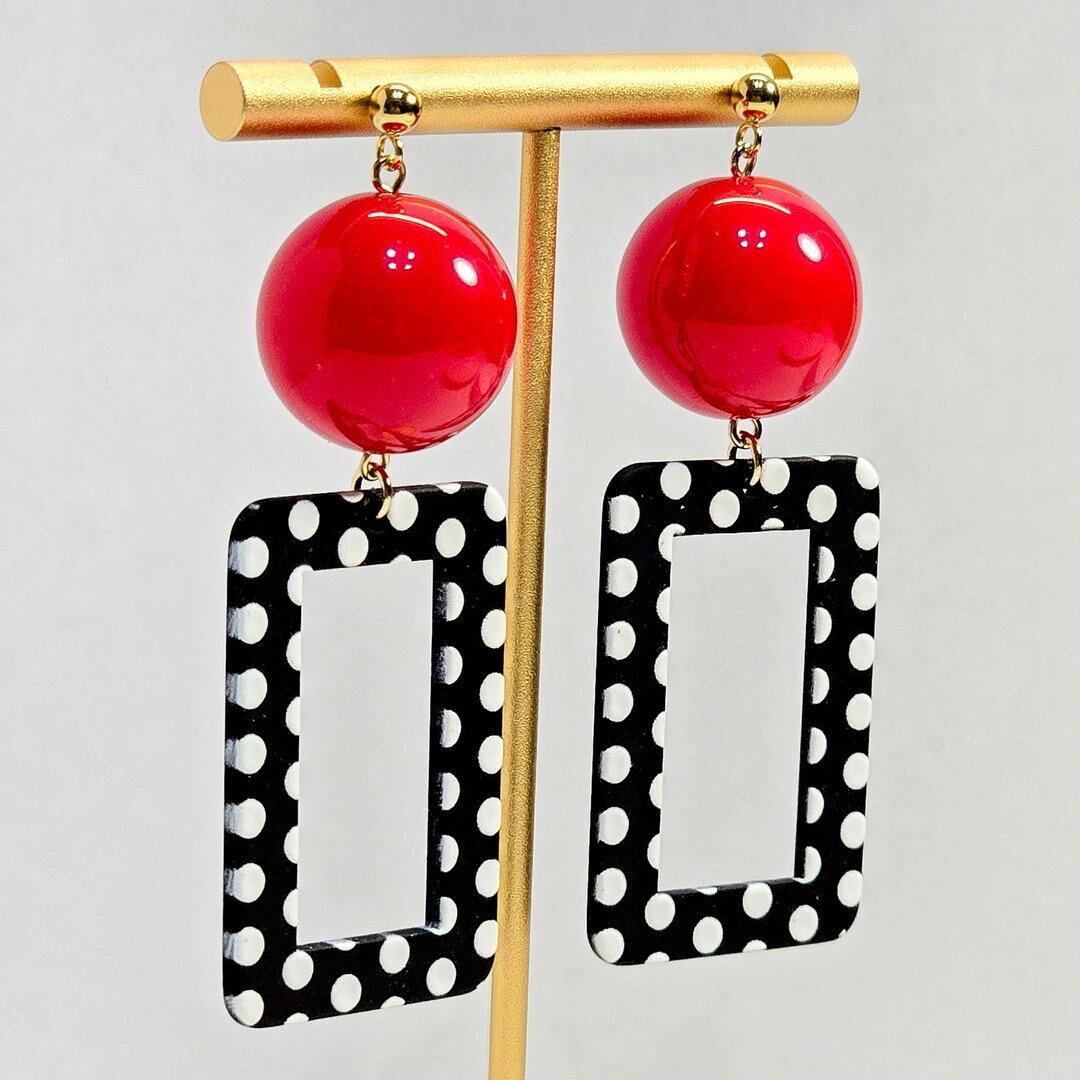ドット柄のデザインが施されたがフープが王道のレトロポップで存在感抜群!