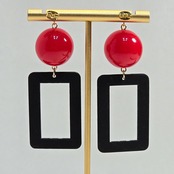 No.234 モノクロドットのスクエアレトロフープピアス&イヤリング