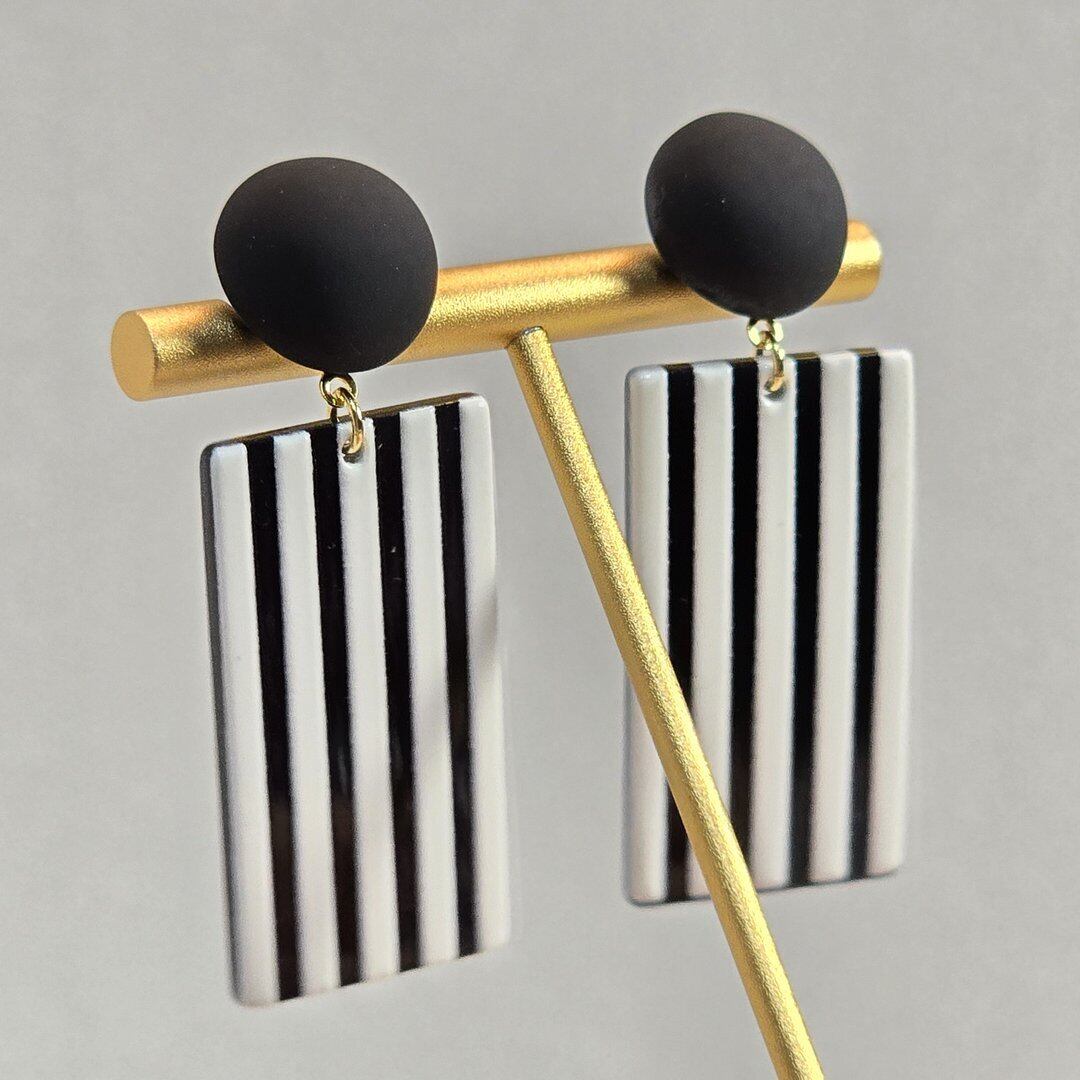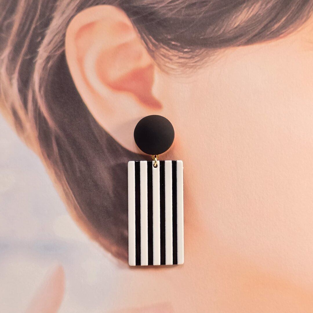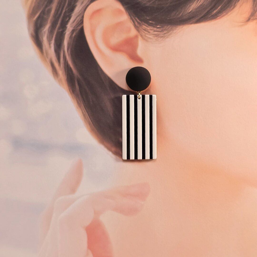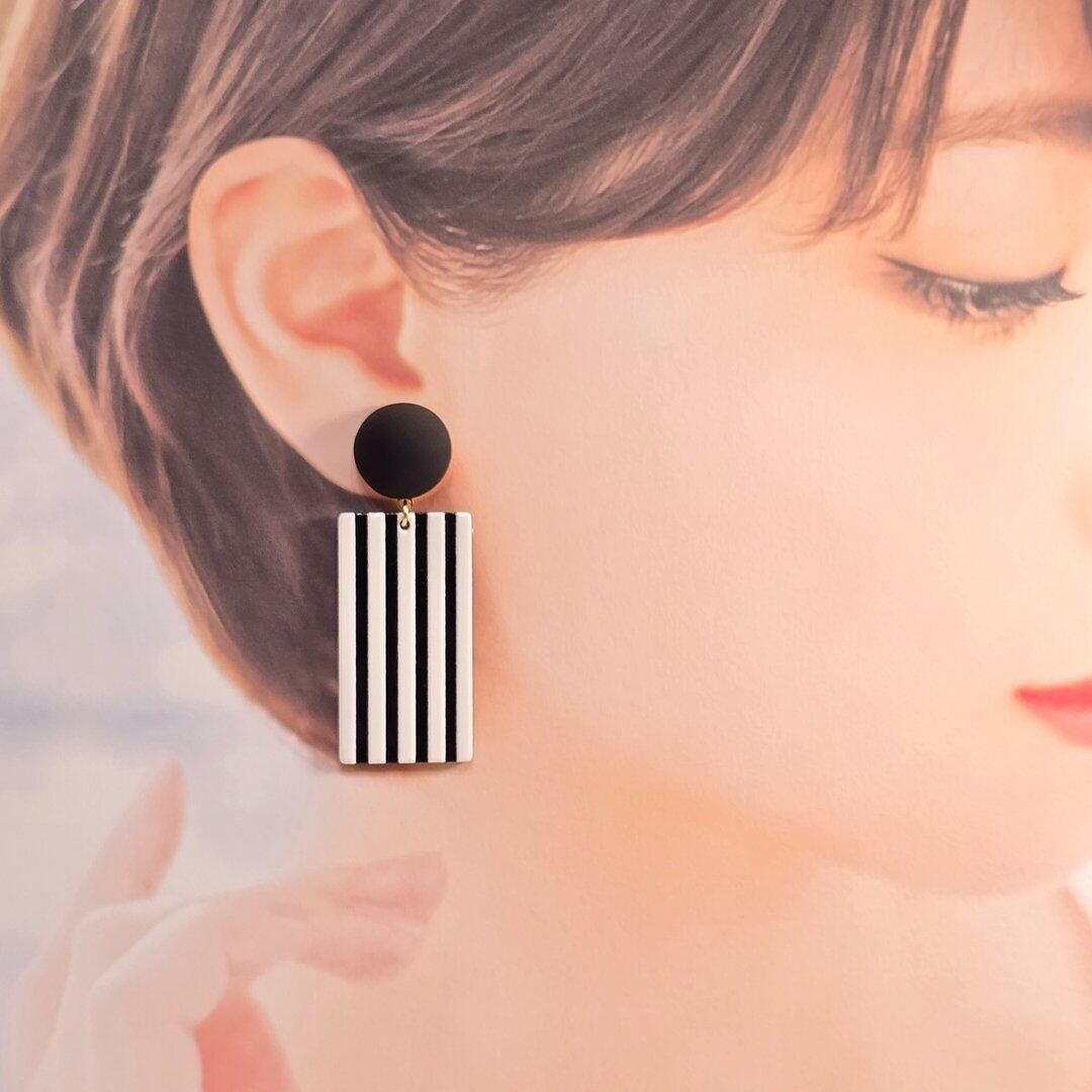 ⟬モノトーンストライプのピアス&イヤリング ⟭