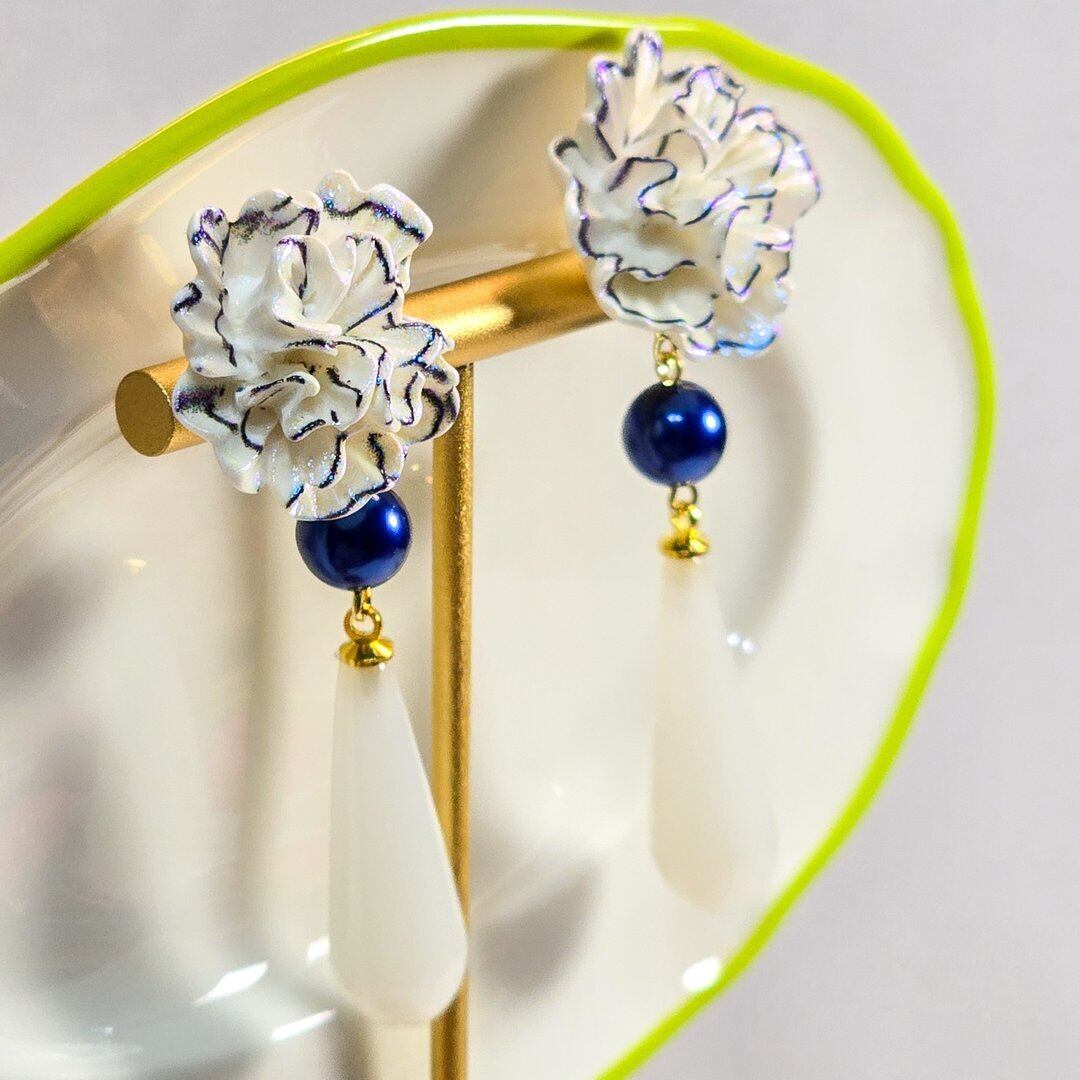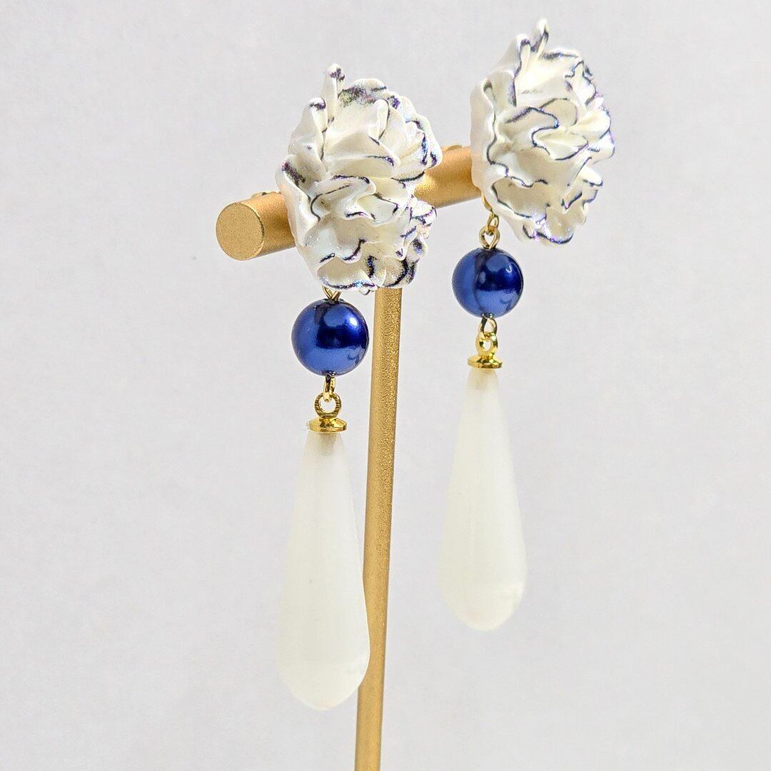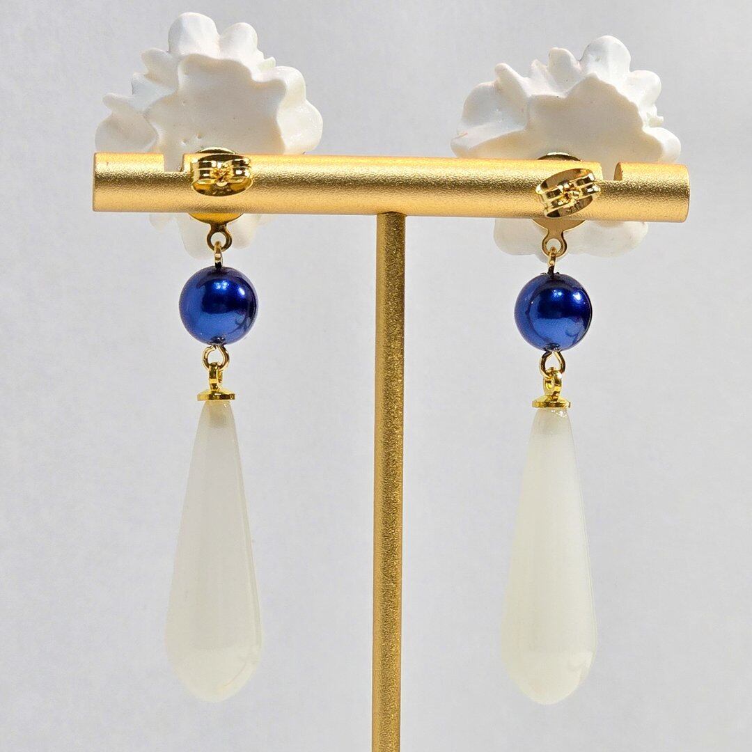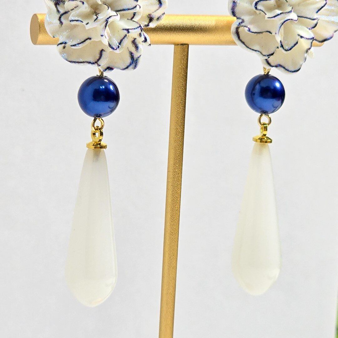 そこにネイビーのシルキーパール、ホワイトのドロップを付けた上品なデザインのピアス&イヤリング❁