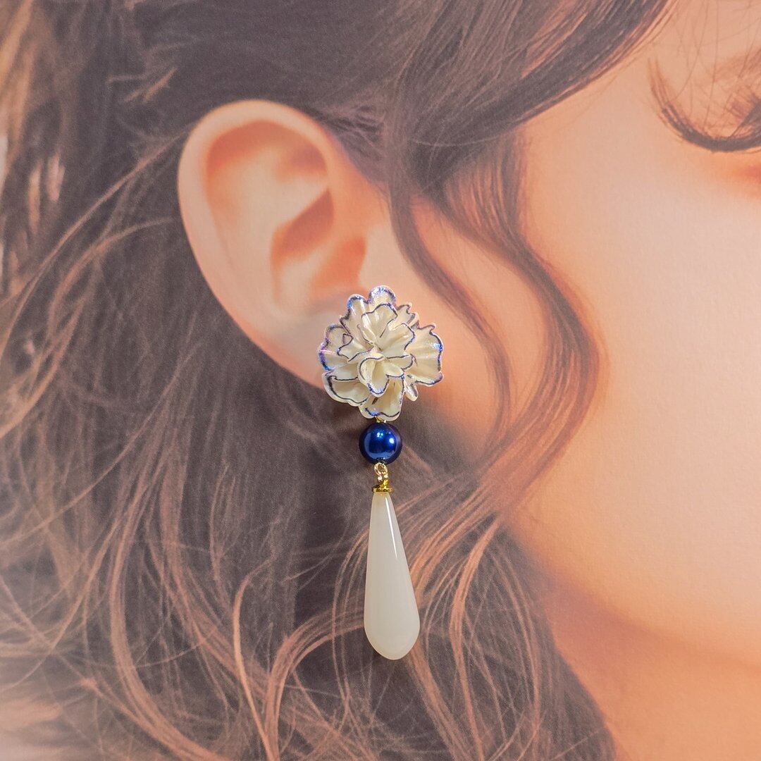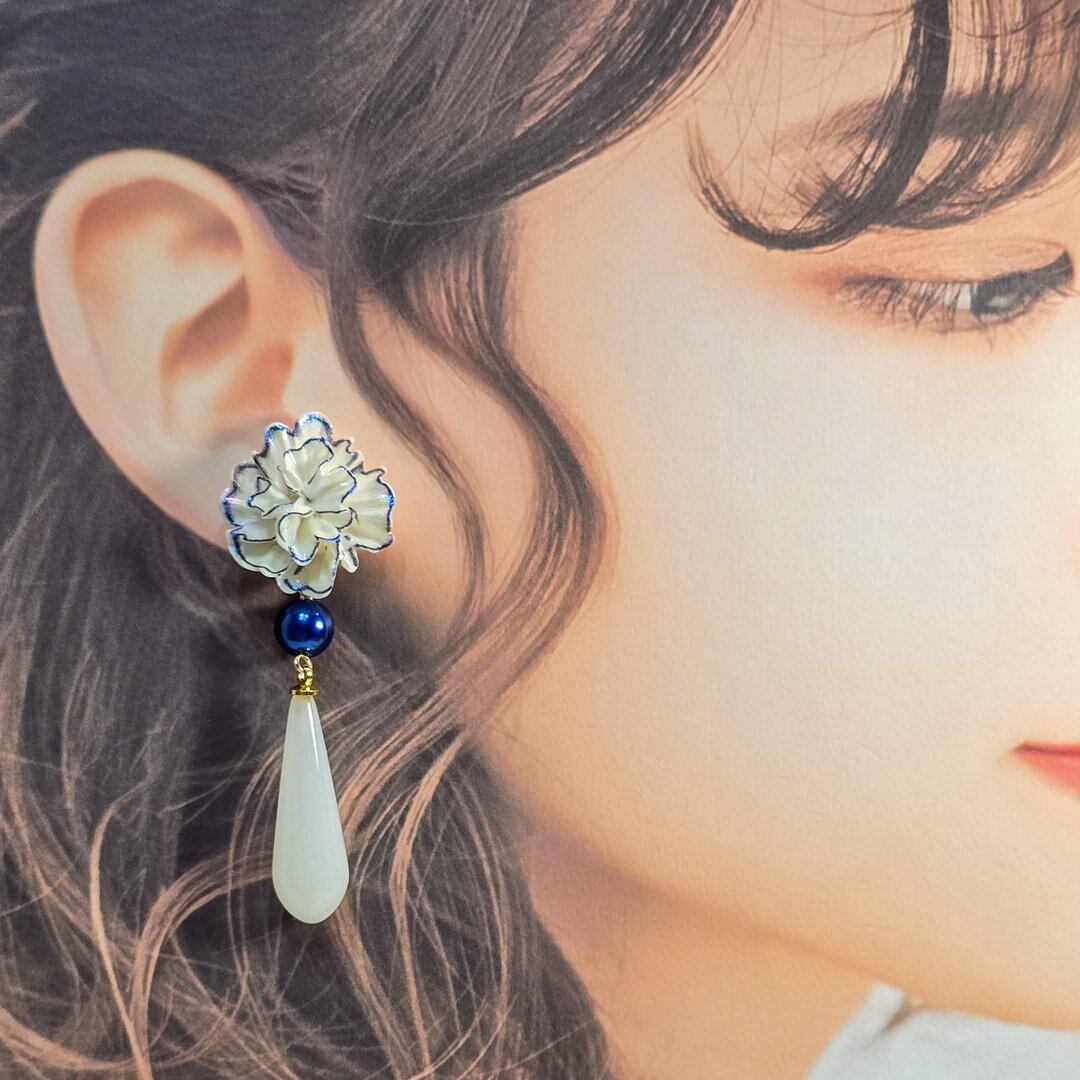 ⟬ 白と青のお花のピアス&イヤリング ⟭