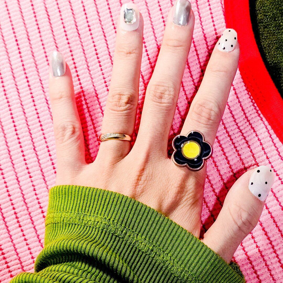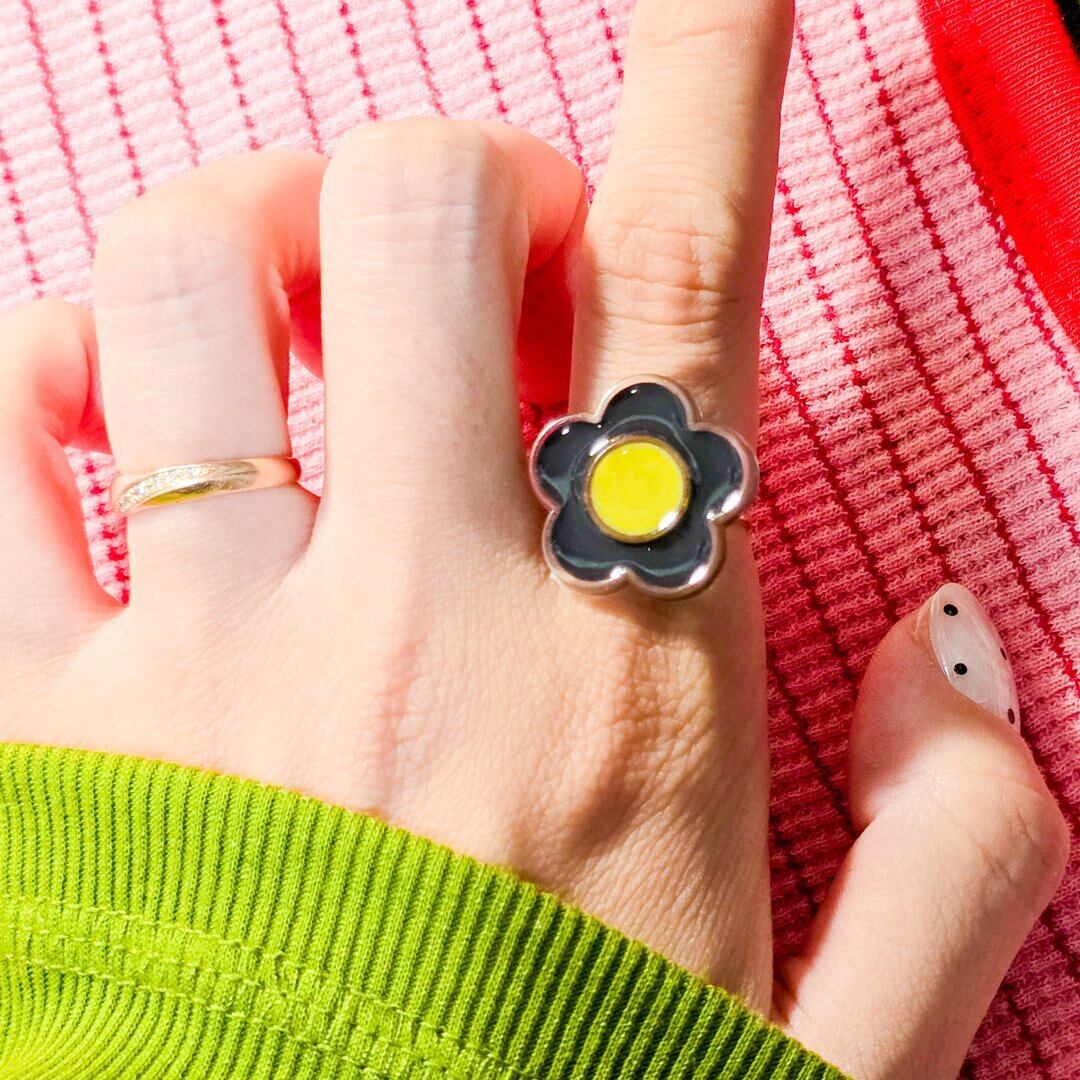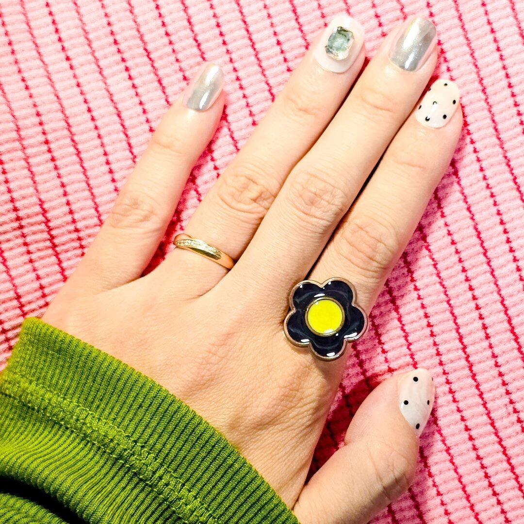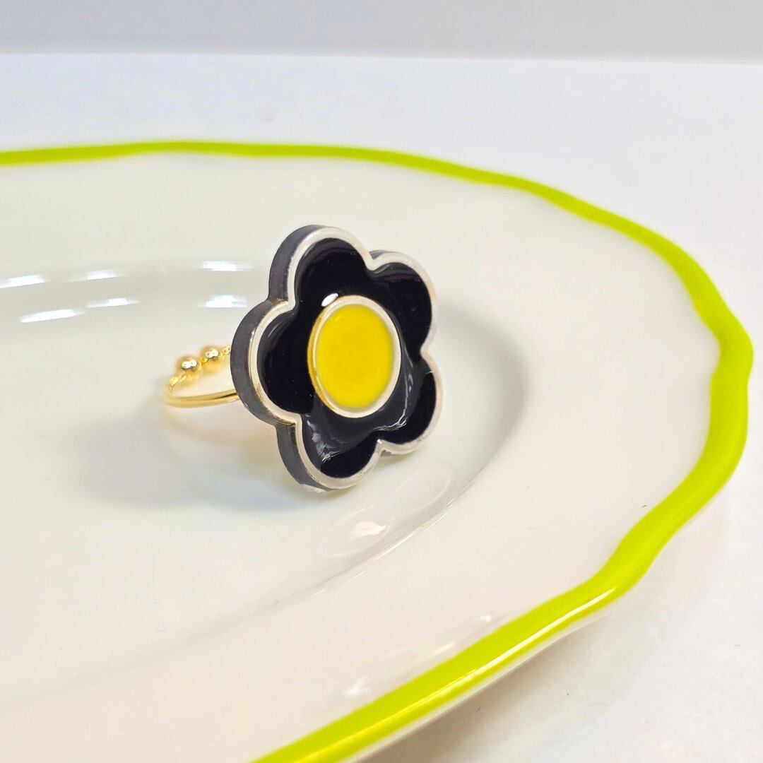 ⟬ お花のレトロポップなリング(イエロー×ブラック) ⟭