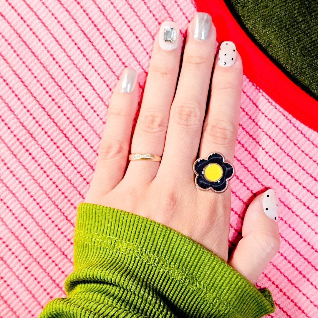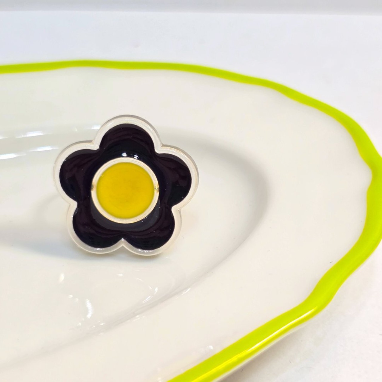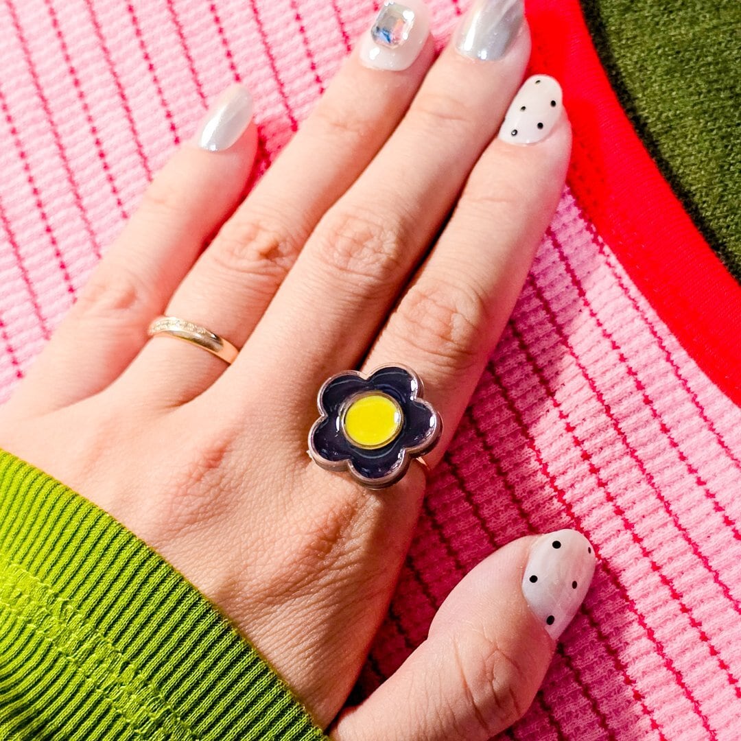 ⟬ お花のレトロポップなリング(イエロー×ブラック) ⟭