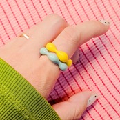 鮮やかな黄色のアクリル素材で作られたリングは、軽やかで着け心地も抜群★